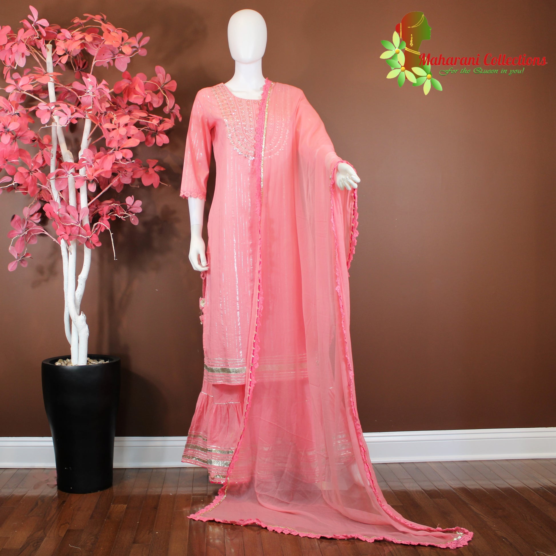 Maharani's Sharara Suit - Peach - Pure Muslin Silk (M/L/XL)