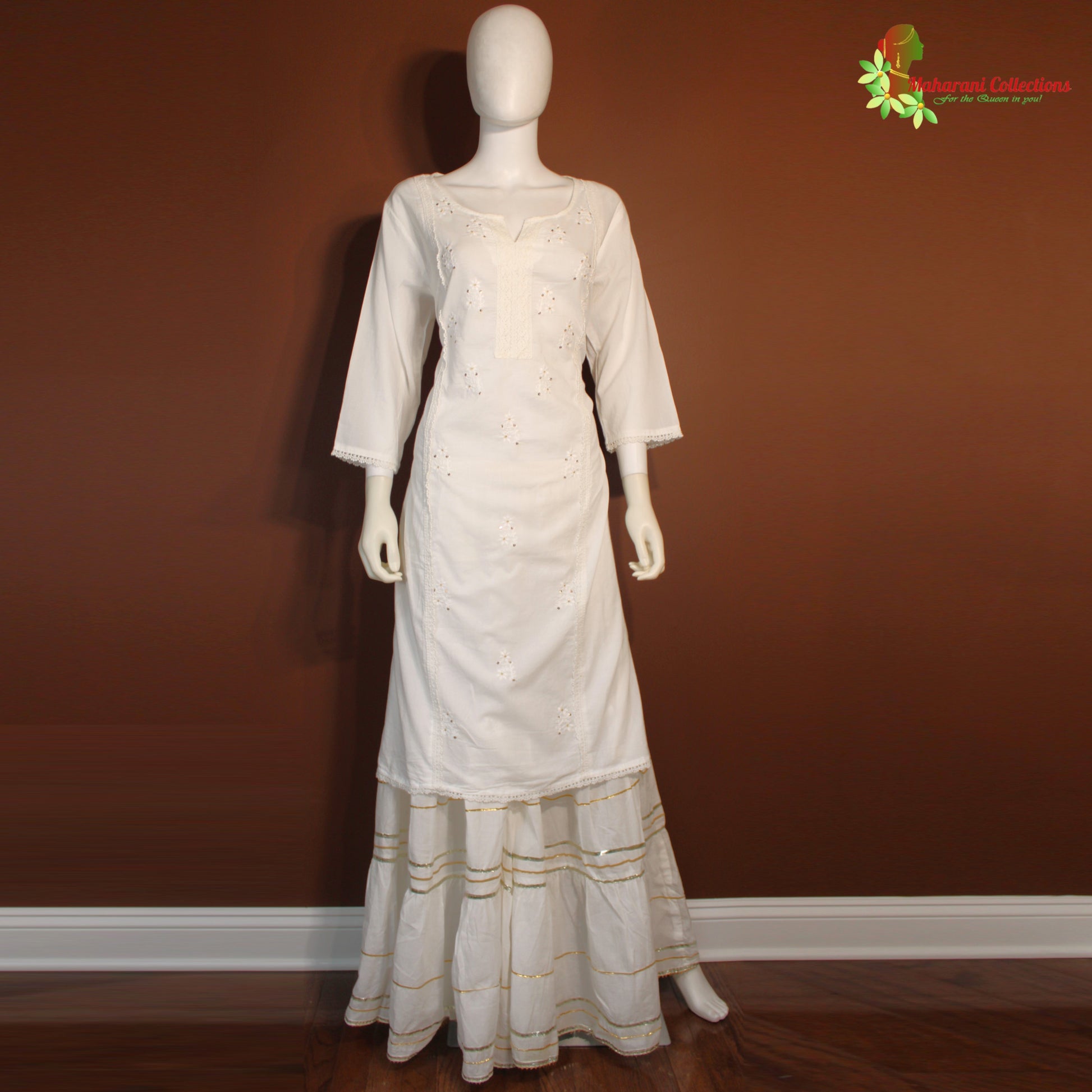 Maharani's Sharara Suit - Soft Cotton - White (XXL)