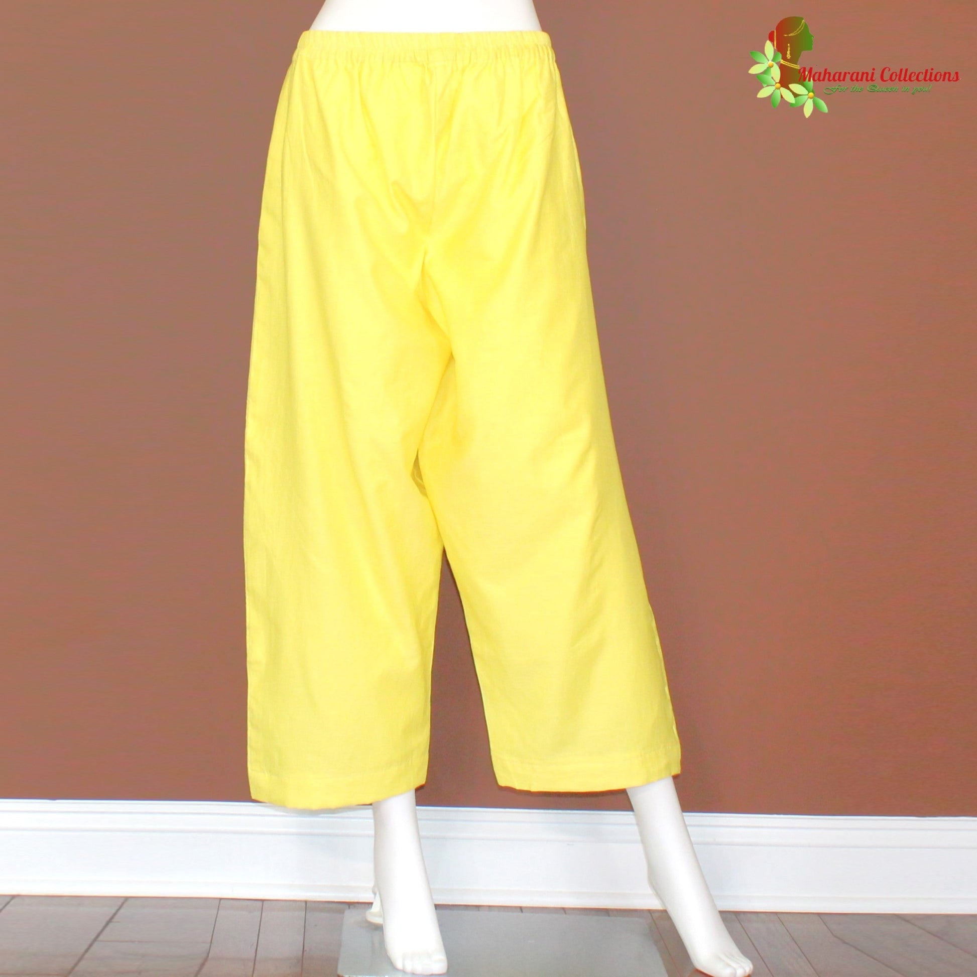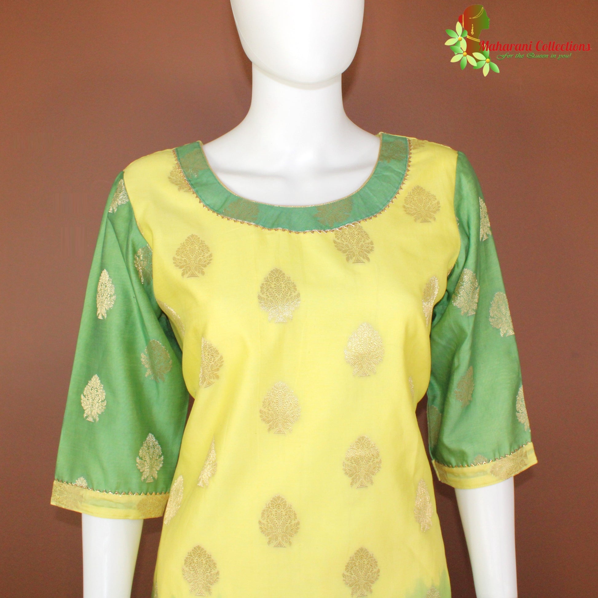 Maharani's Silk Palazzo with golden Zari work, stitched satin lining, matching Silk Palazzo pant and Silk Yellow and Green Dupatta.