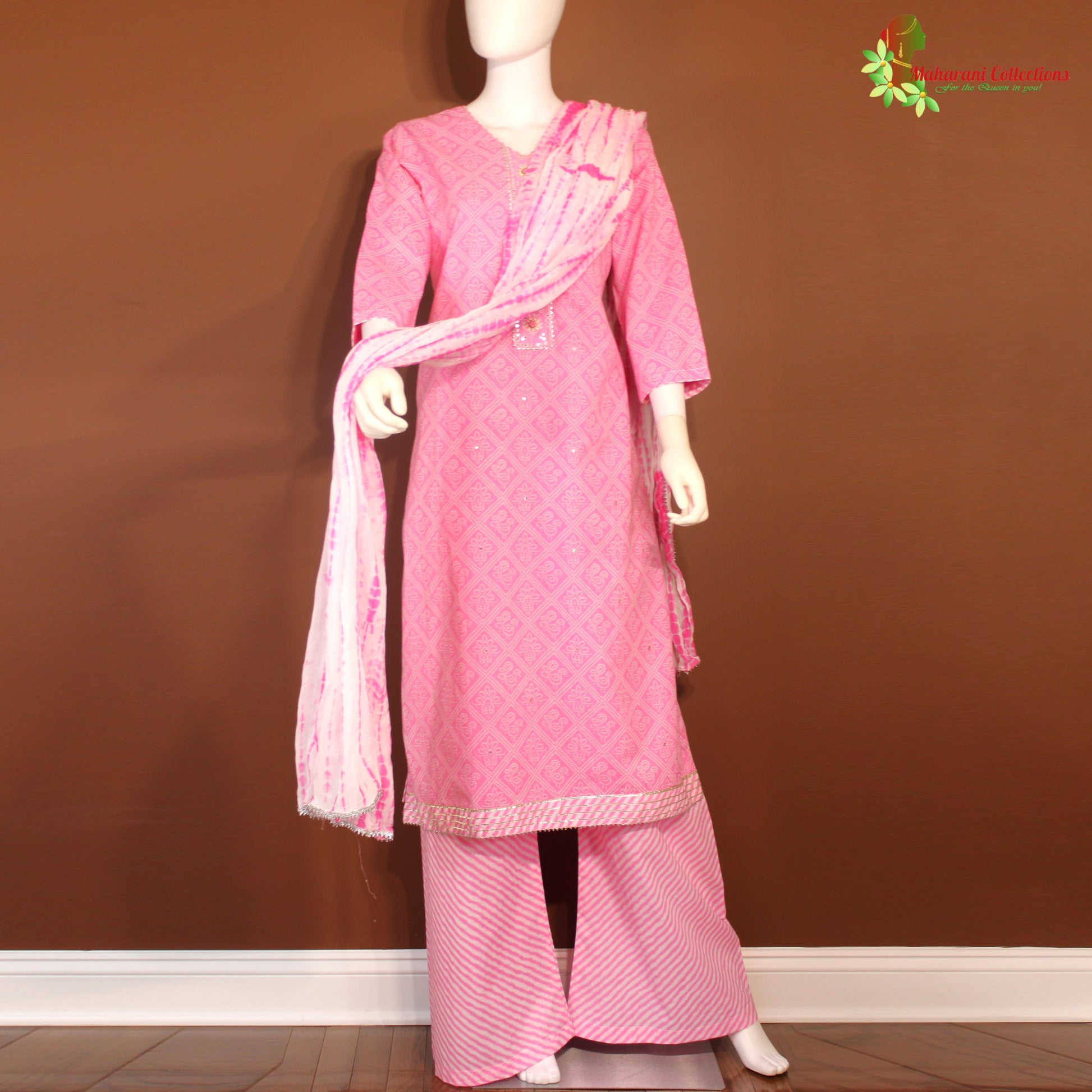 Maharani's Soft Cotton Palazzo Suit Set - Pink (L)