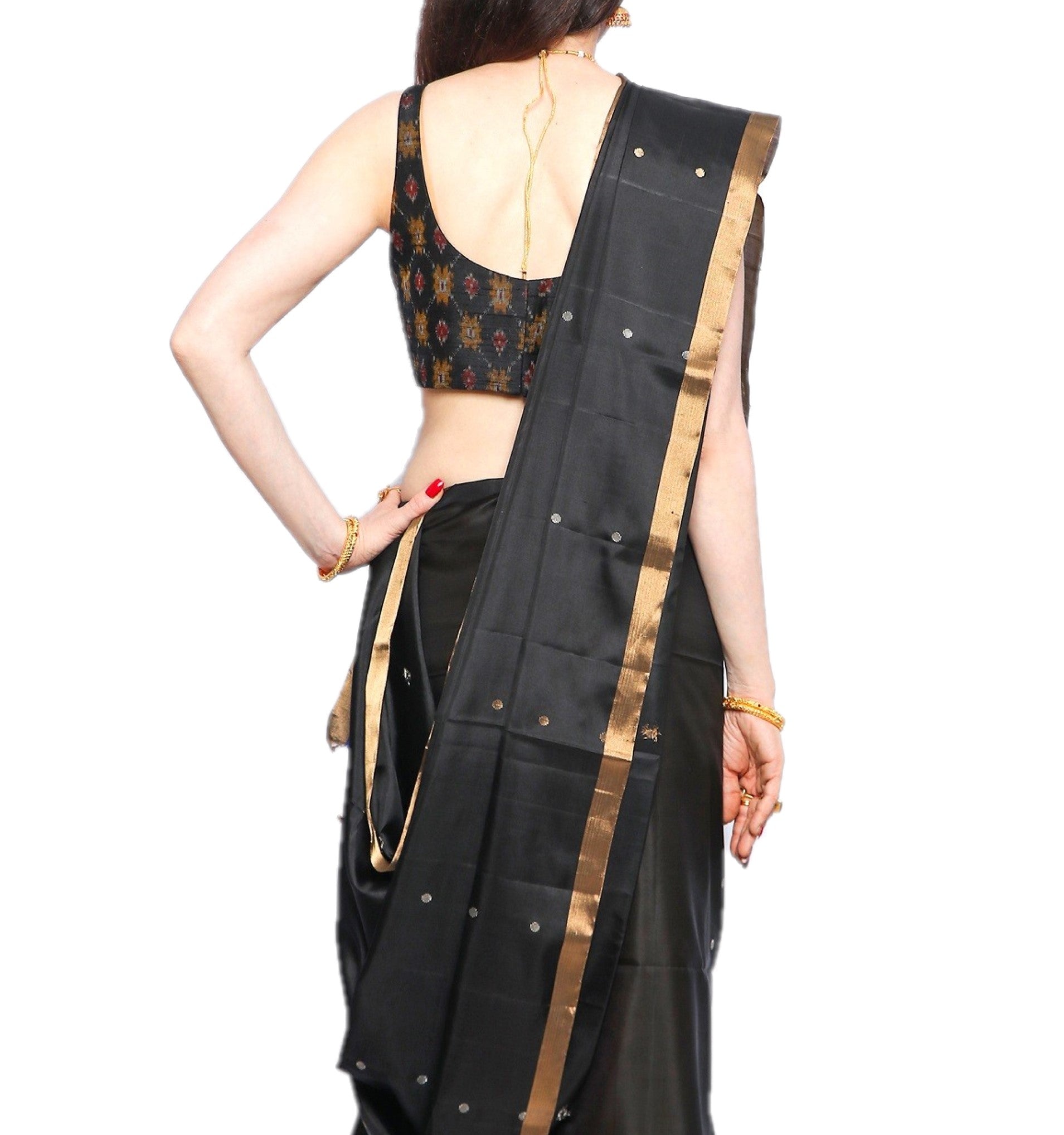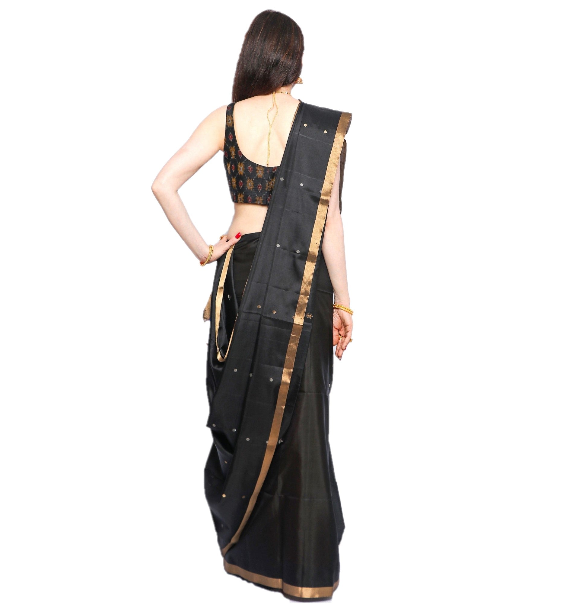 Maharani's Pure Handloom Kanjivaram Silk Saree - Elegant Black with Multicolor Border and Pallu