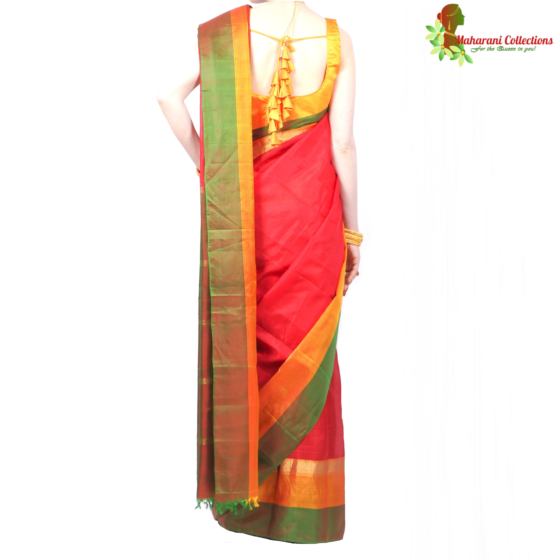 Maharani's Pure Handloom Kanjivaram Silk Saree - Red with Green and Golden Zari Border and Pallu