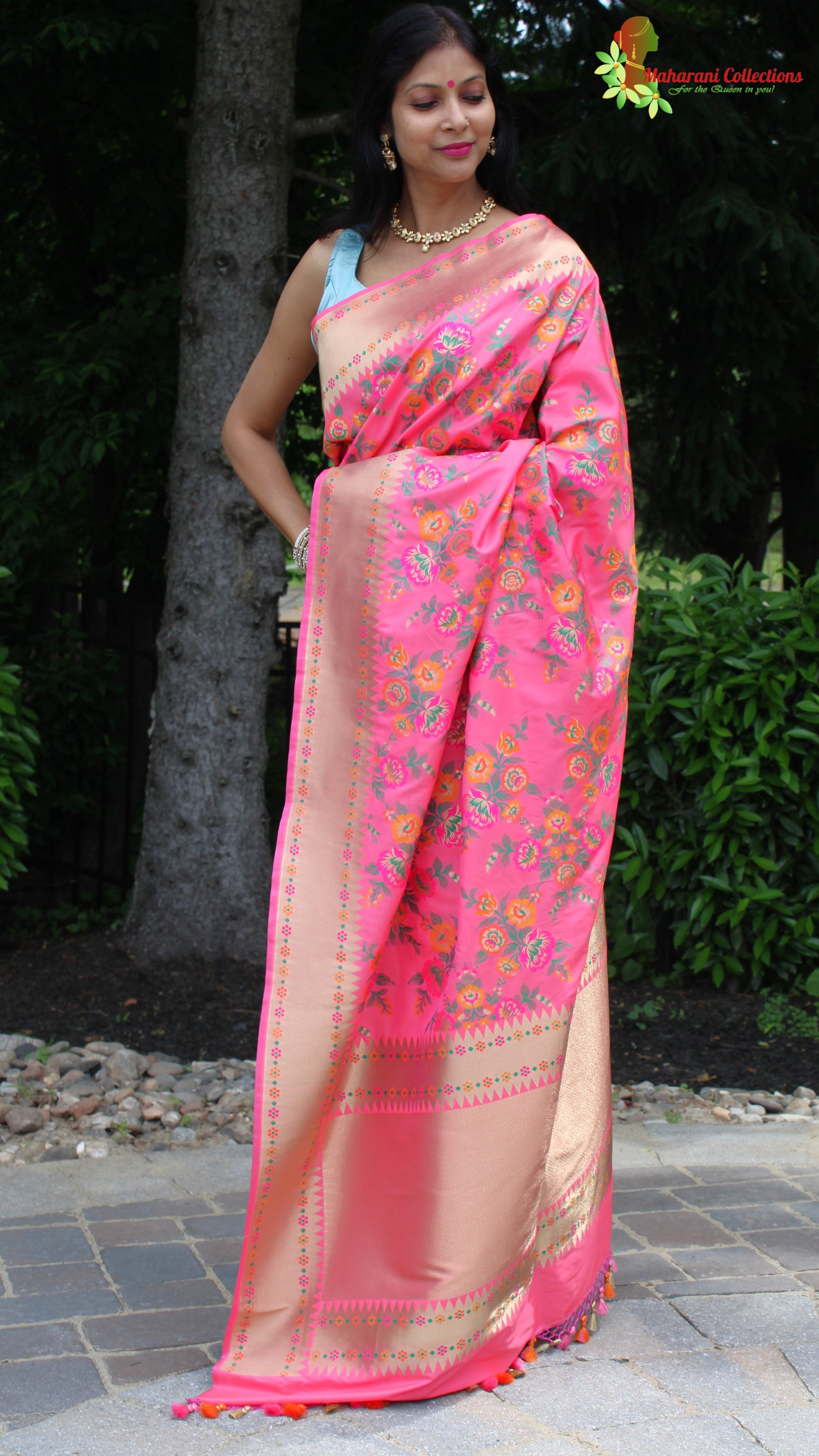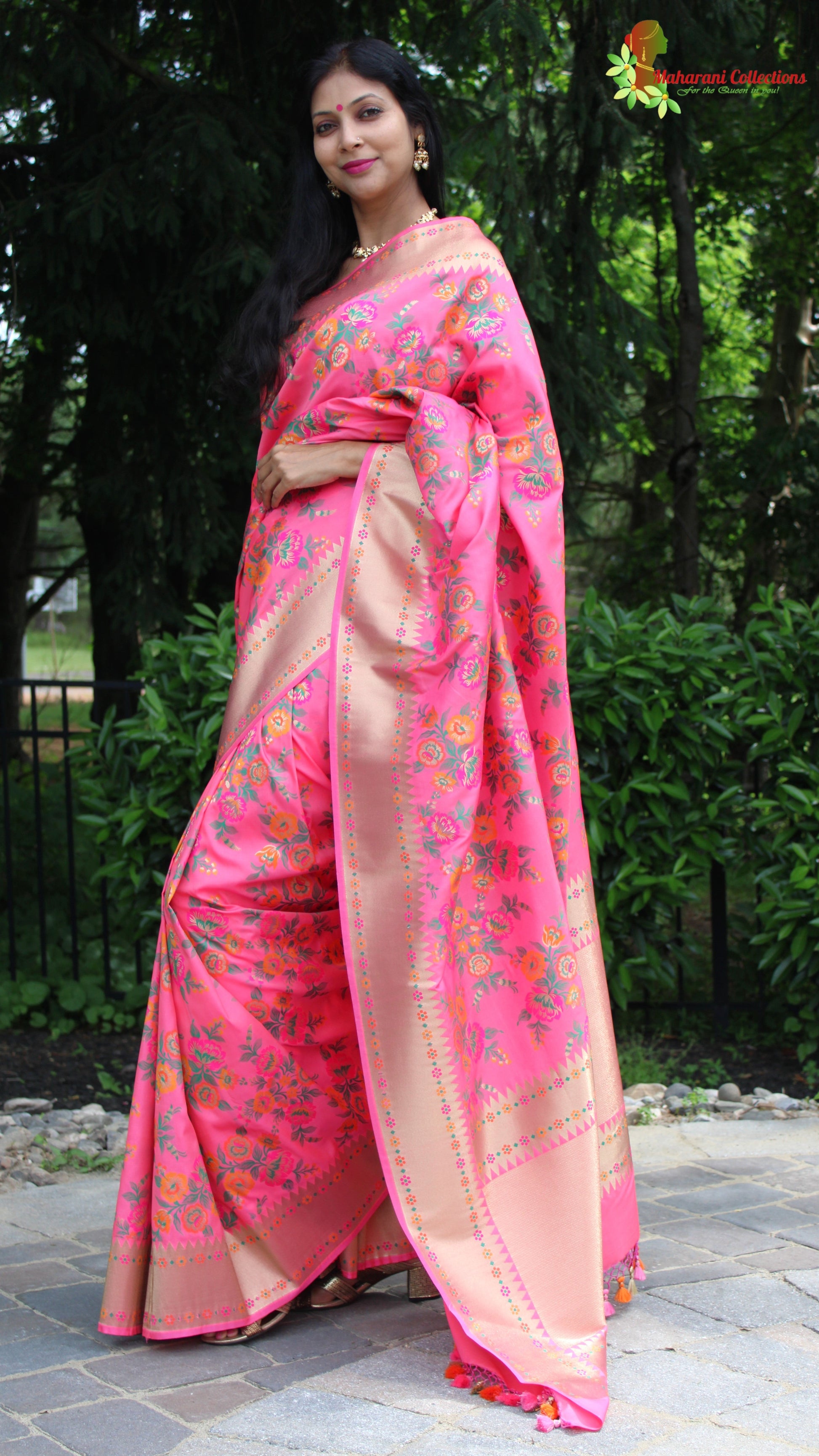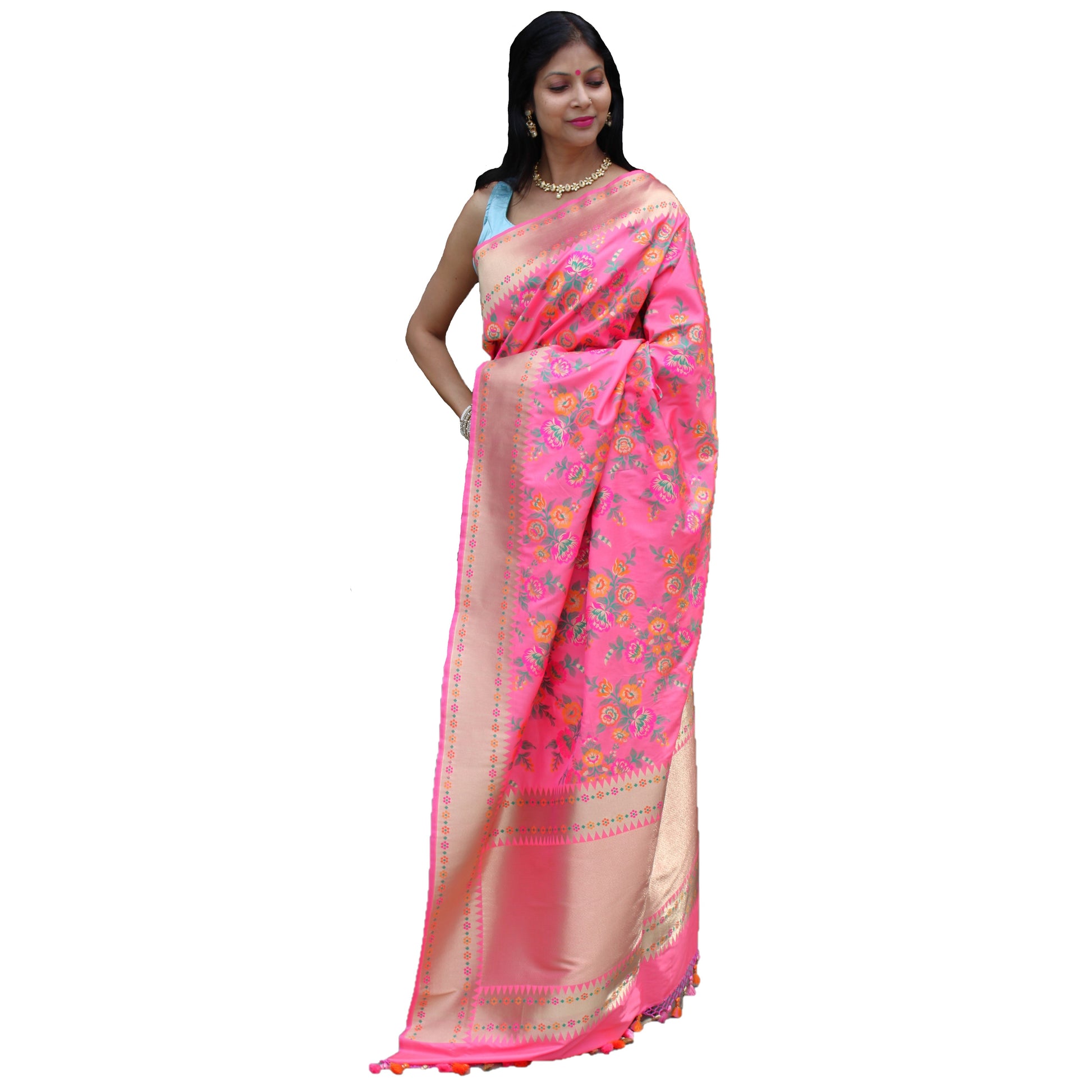 Maharani's Pure Heavy Zari Banarasi Silk Saree - Pink (with Stitched Blouse and Petticoat)