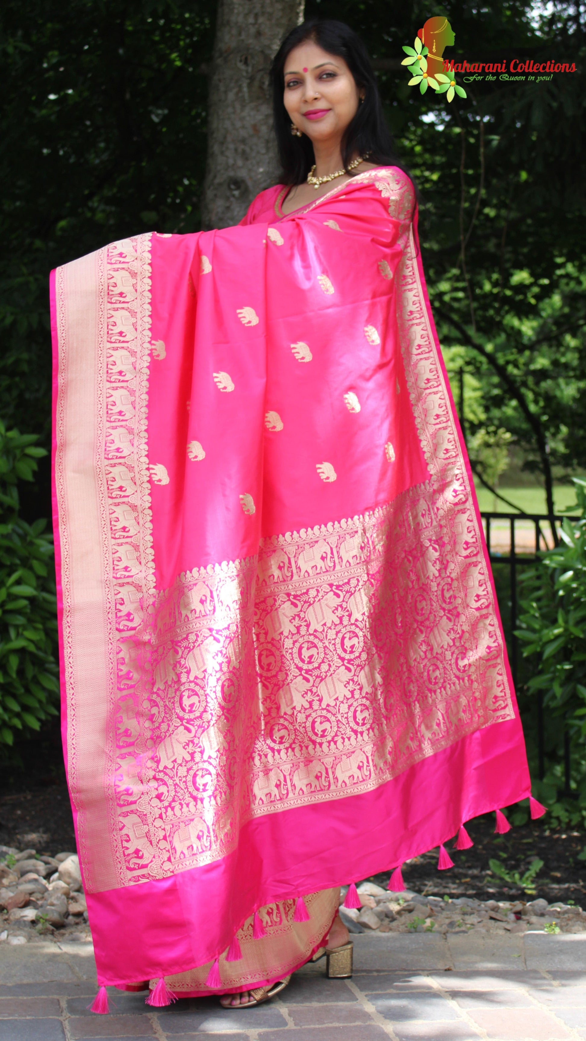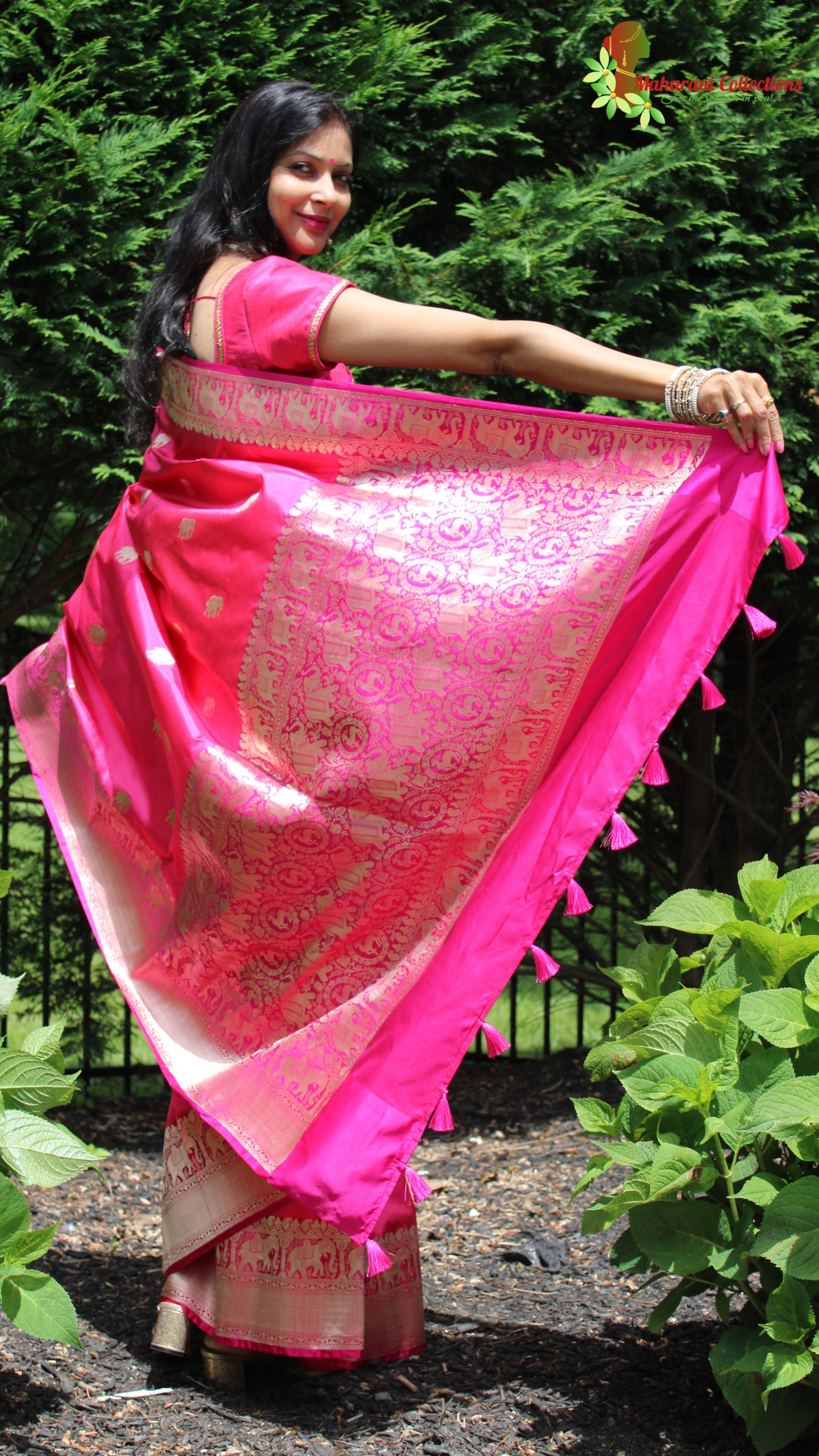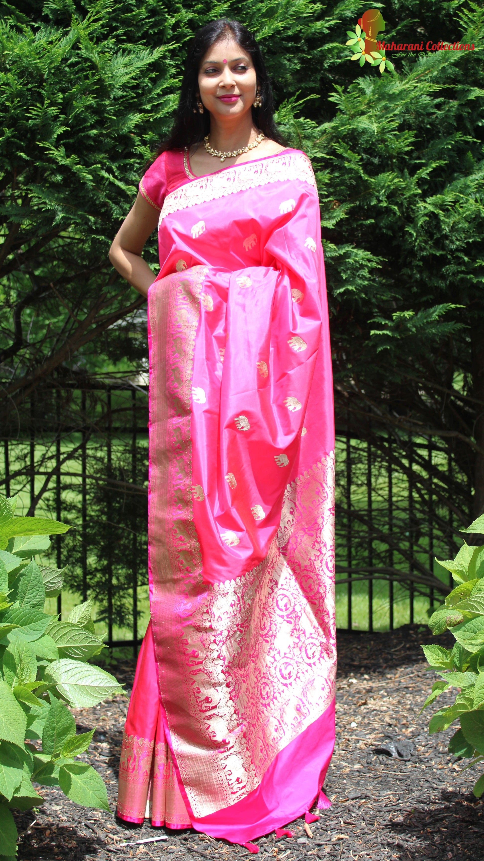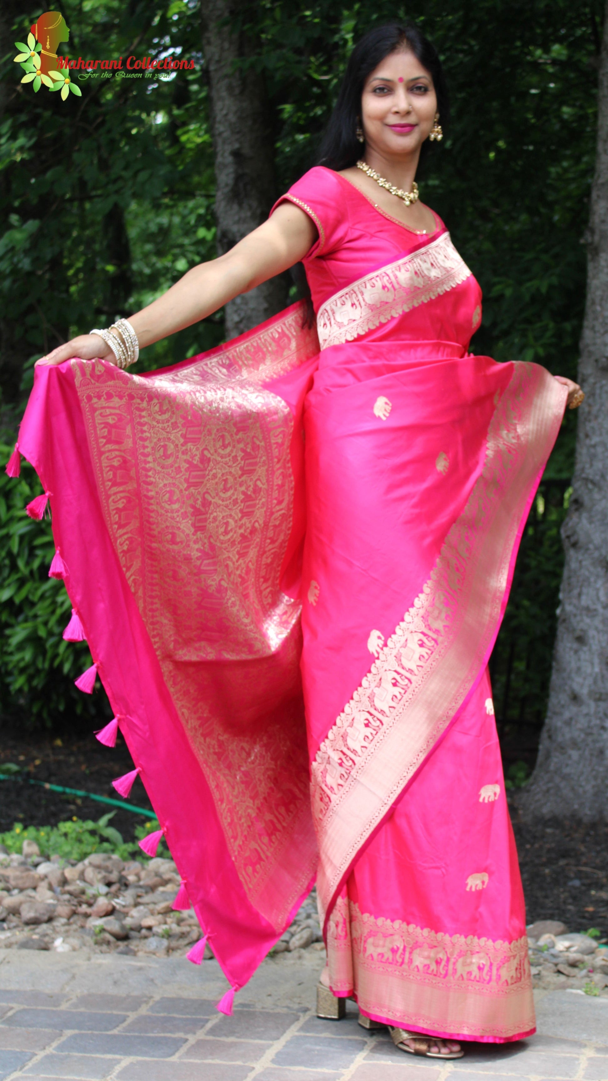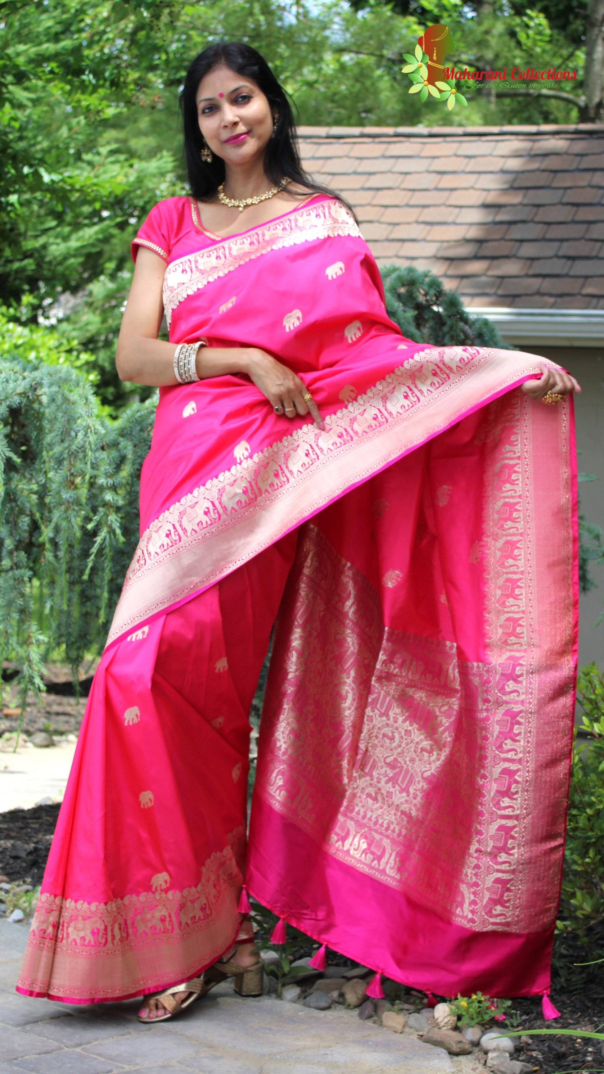 Maharani's Pure Heavy Zari Banarasi Silk Saree - Pink (with Stitched Blouse and Petticoat)