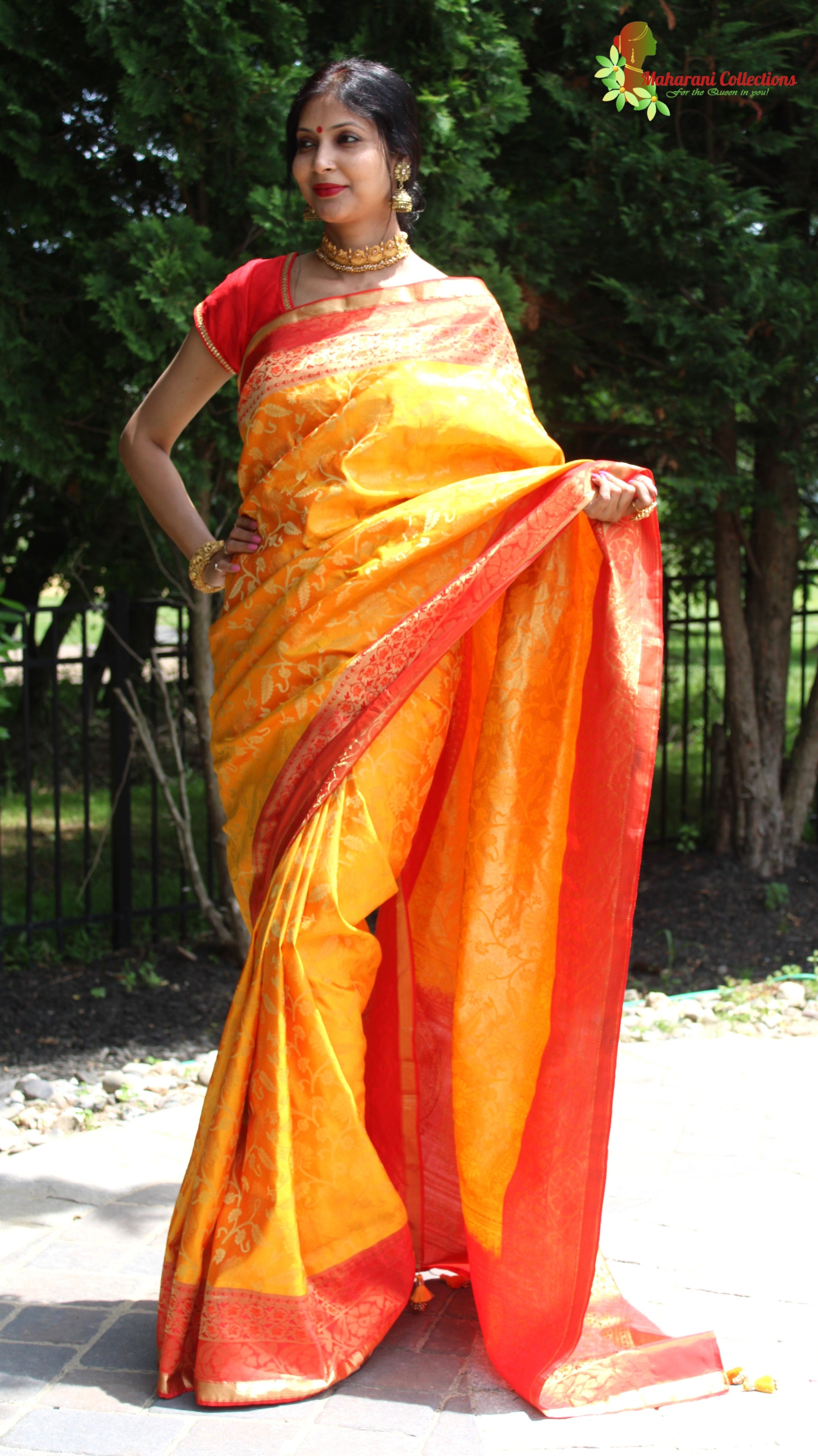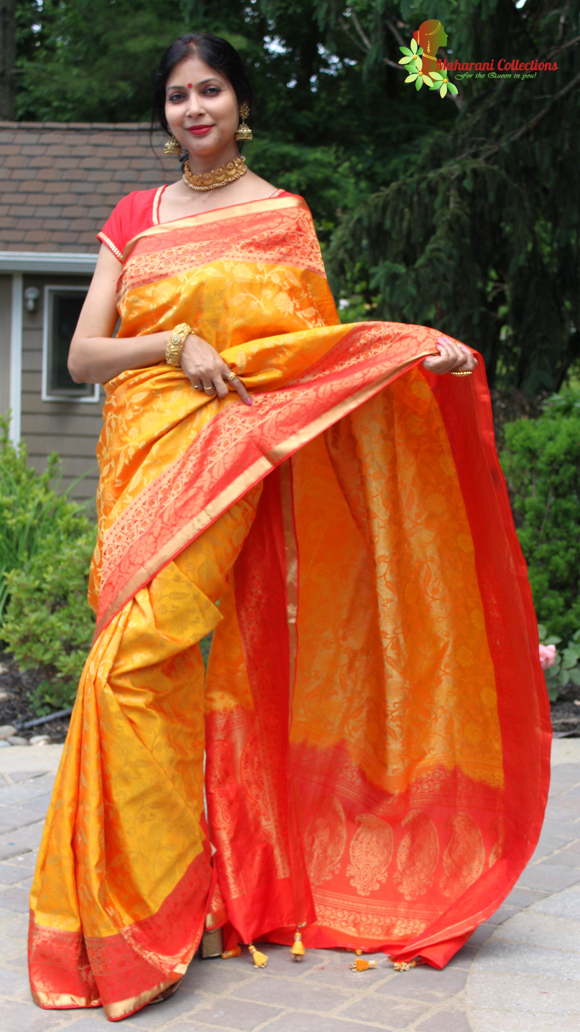 Maharani's Pure Heavy Zari Banarasi Silk Saree - Yellow (with Stitched Blouse and Petticoat)