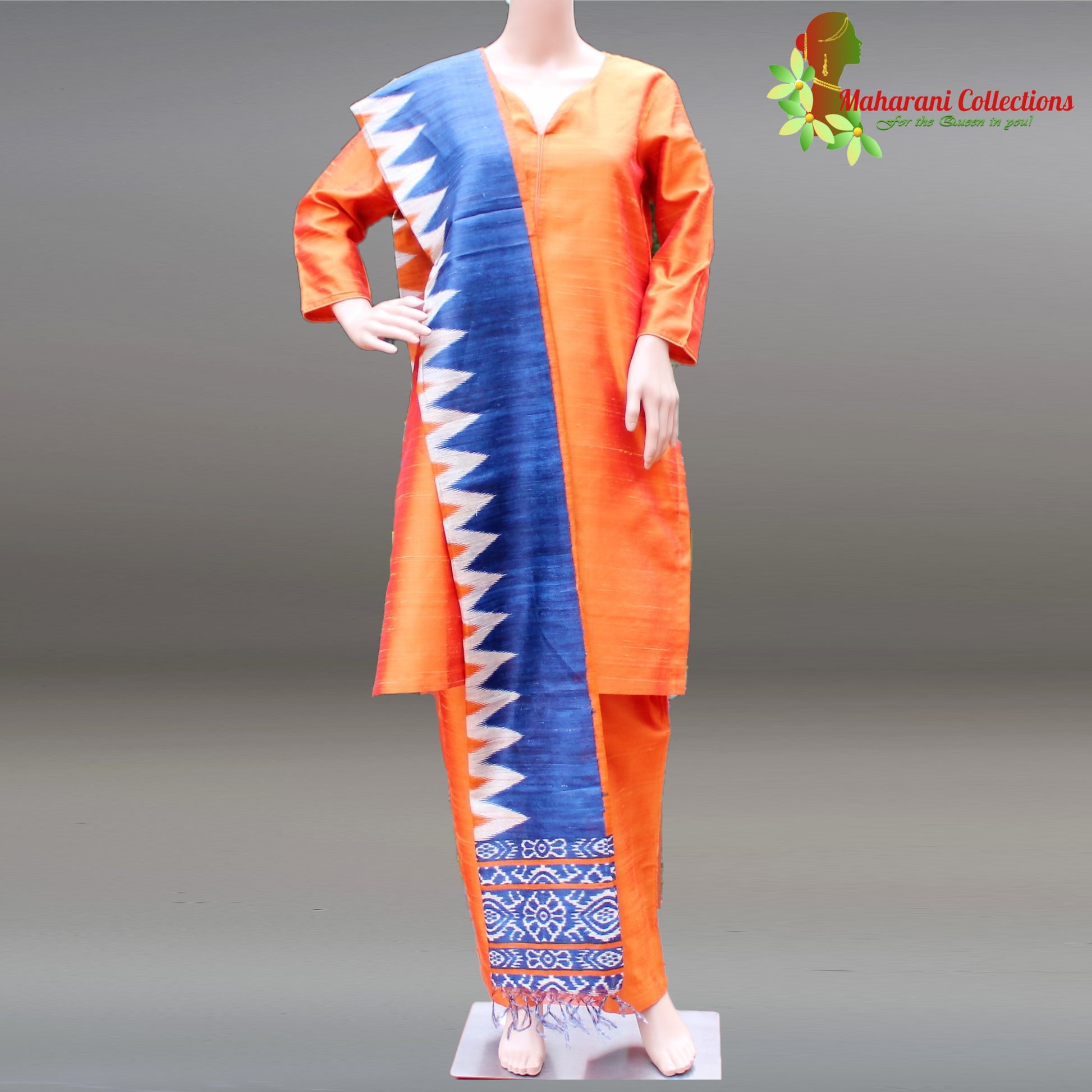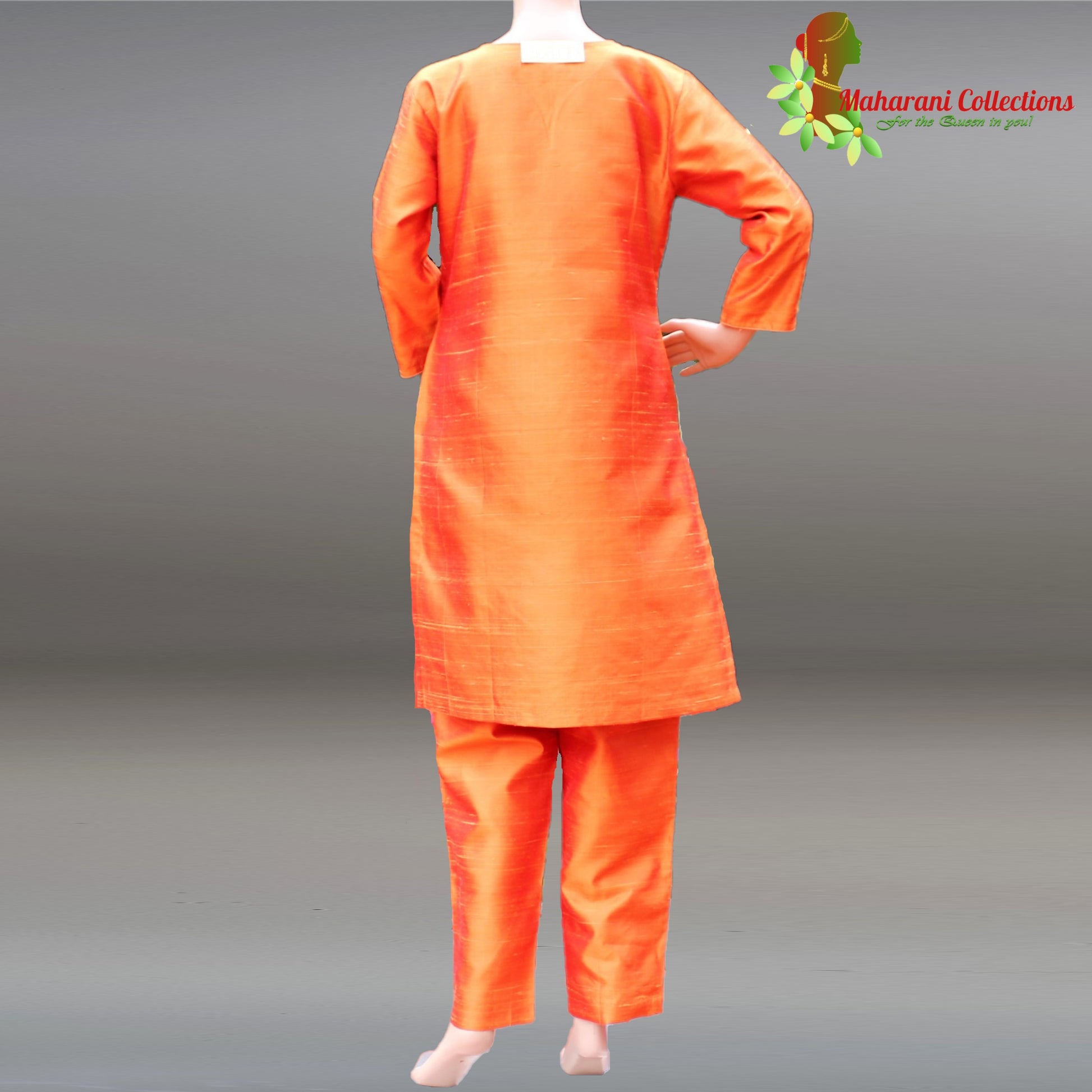 Maharani's Finest Silk Pant Suit - Pure Bhagalpur Tussar Silk - Orange (M)