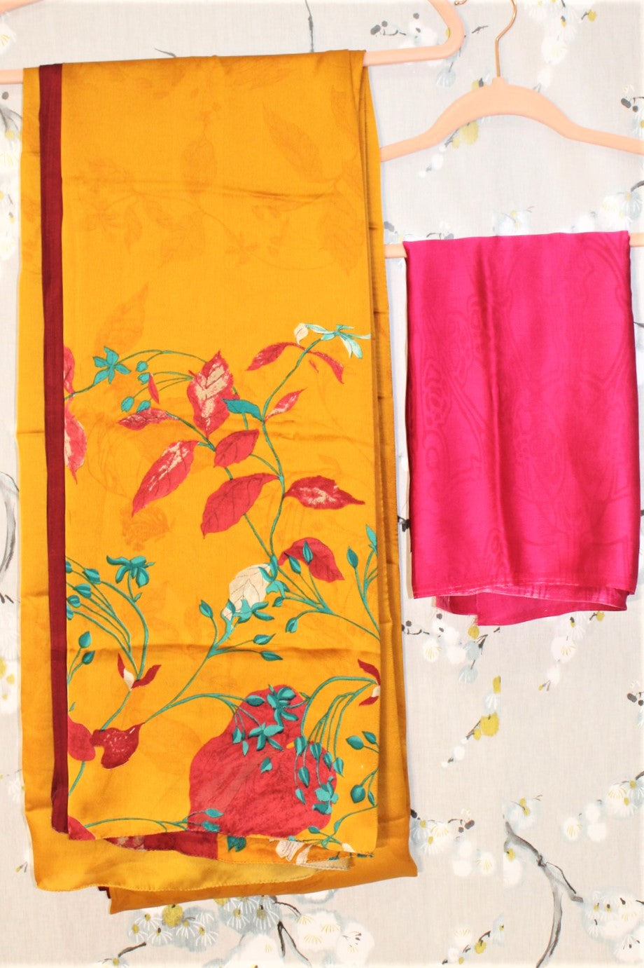 Light and elegant Satin Silk Saree with matching unstitched blouse.