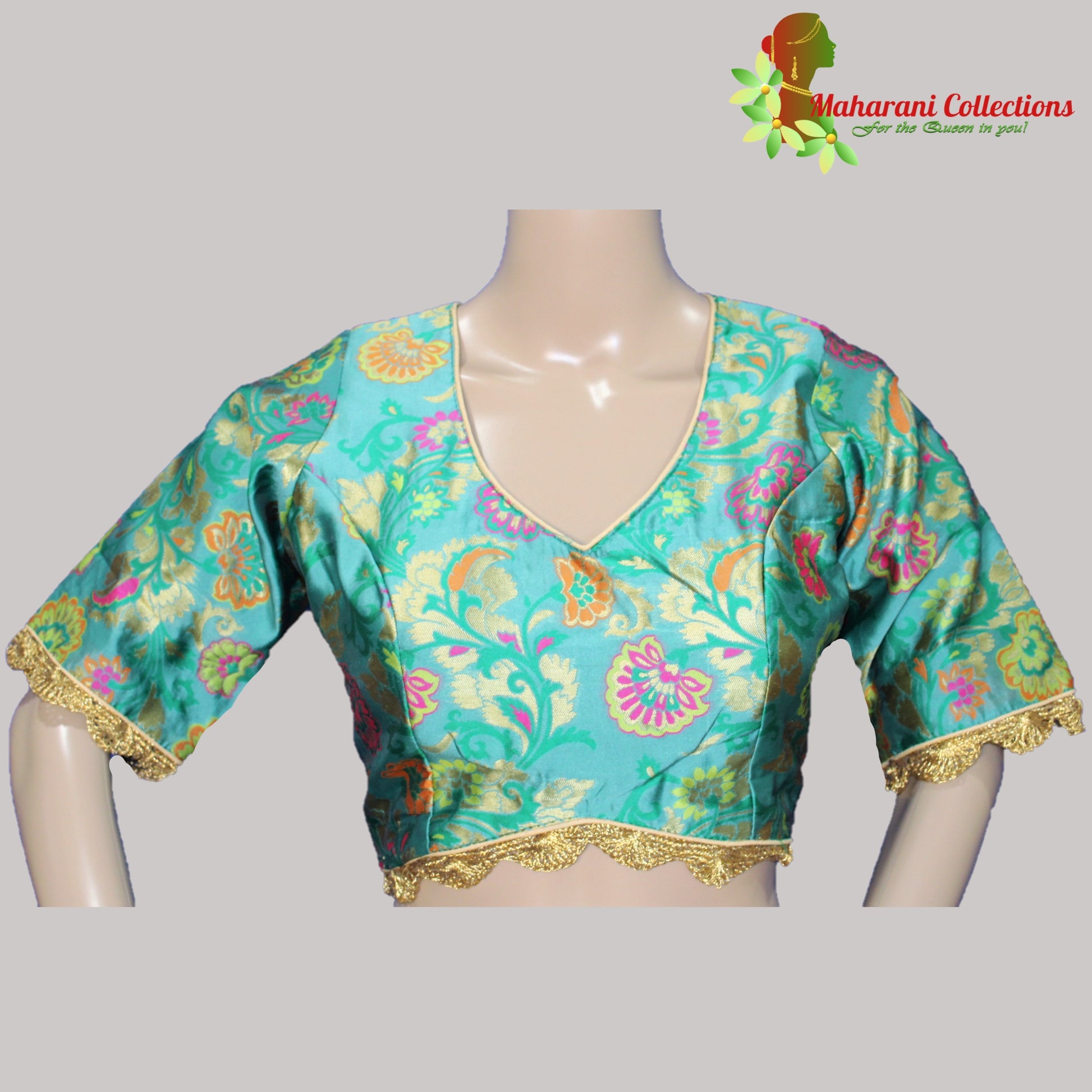 Maharani's Banarasi Silk Brocade Blouse - Sea Green