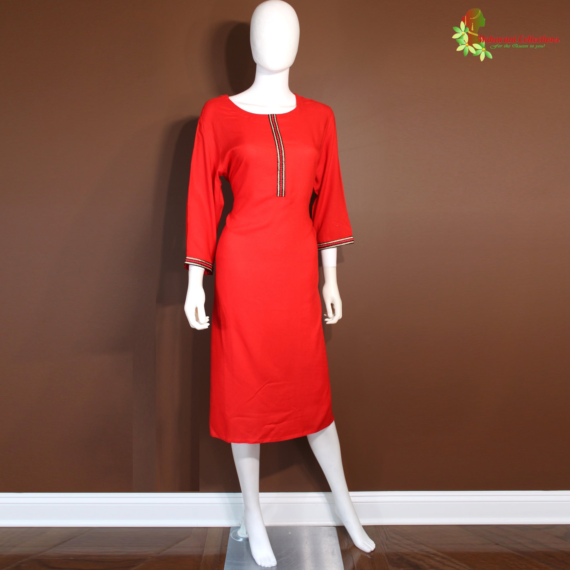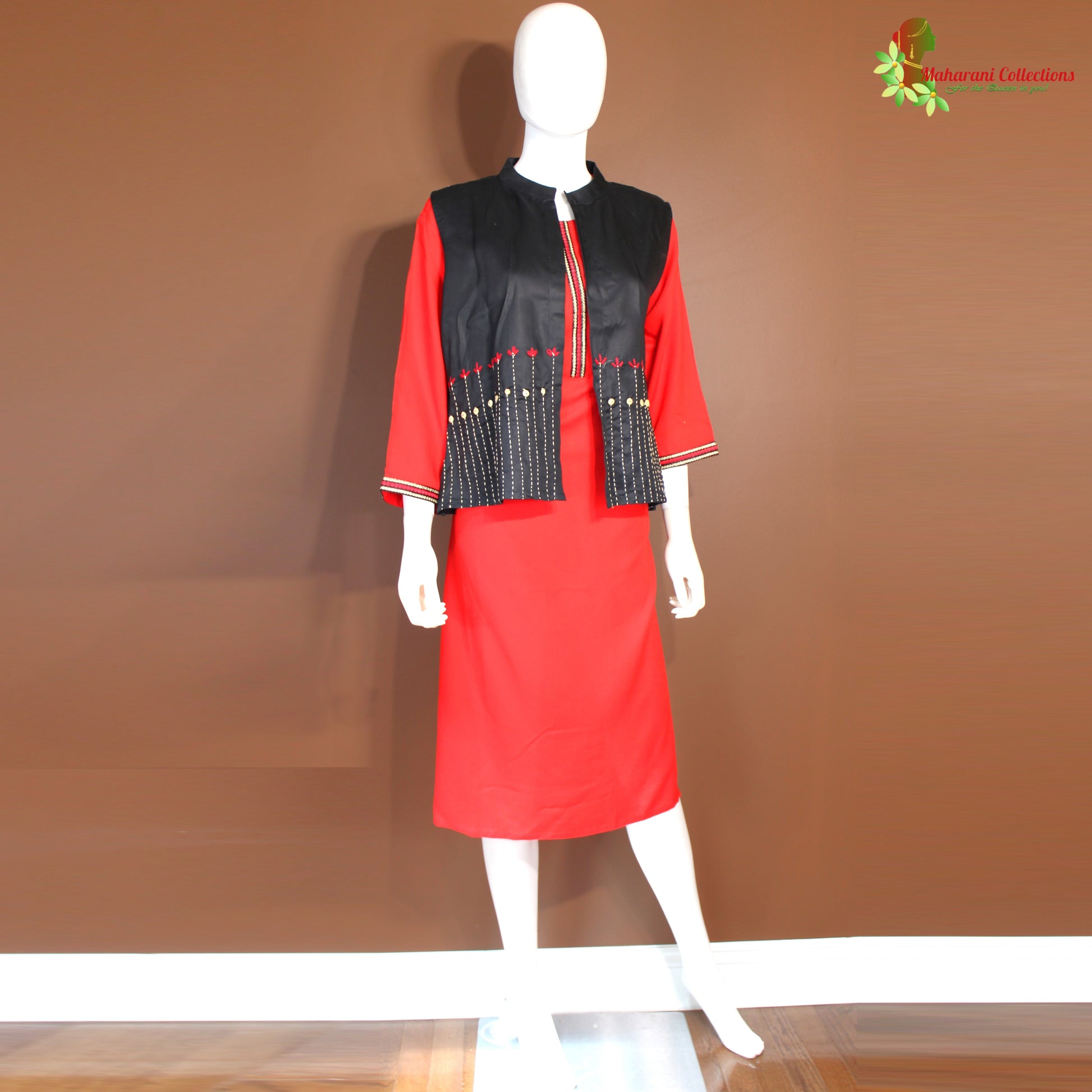 Maharani's Soft Cotton Kurta Top with Jacket - Red (XL)