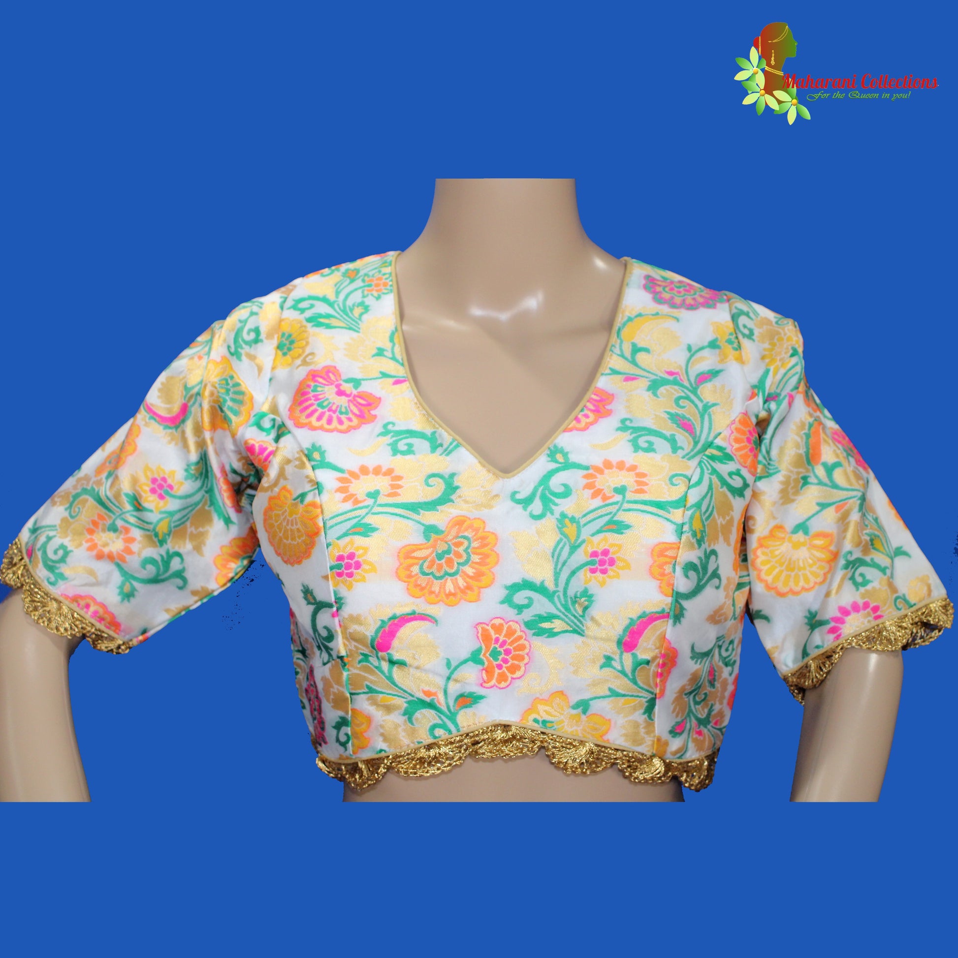 Ready-to-wear elegant designer blouse, match with your choice of Saree from Maharani's large Sarees collection!