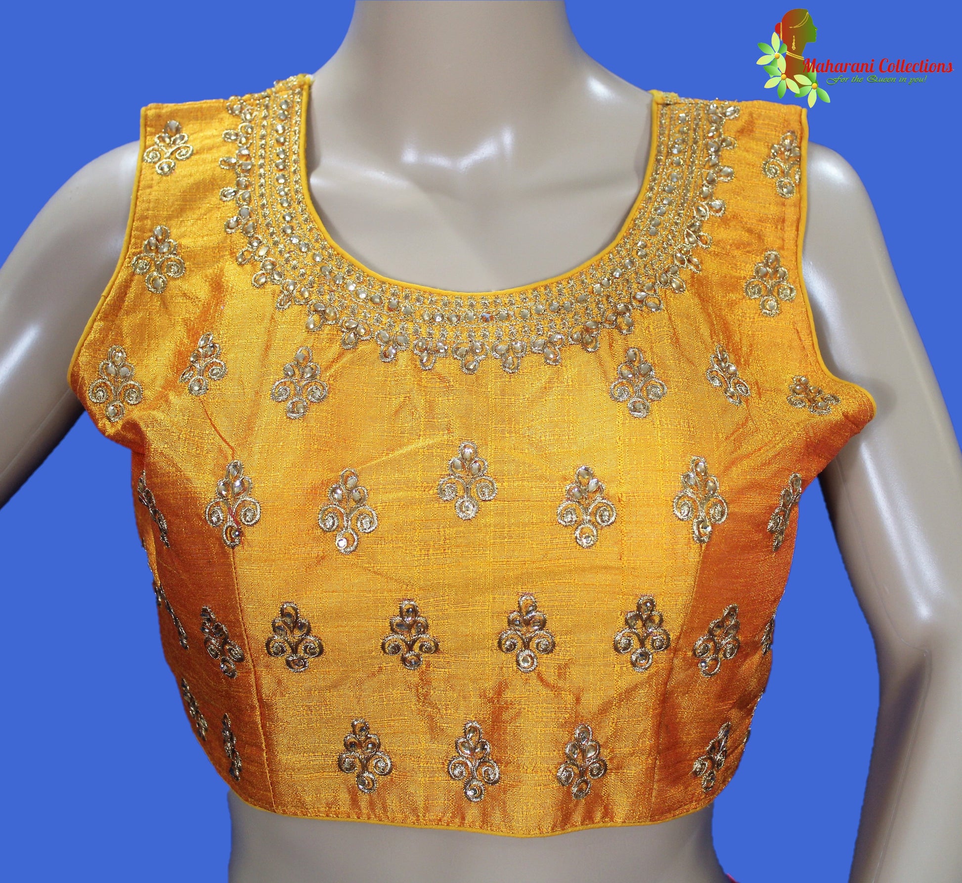 Ready-to-wear elegant designer blouse, match with your choice of Saree from Maharani's large Sarees collection!