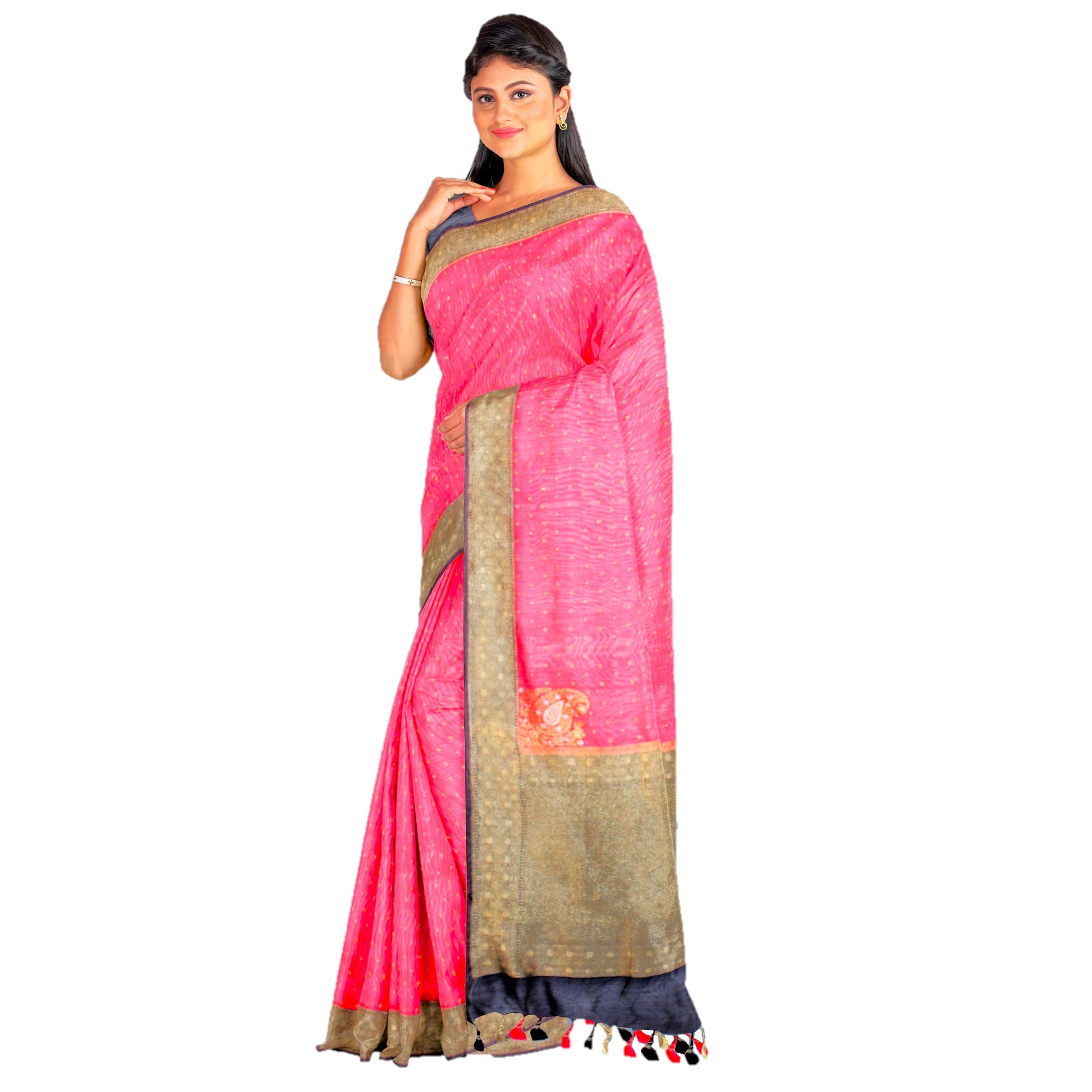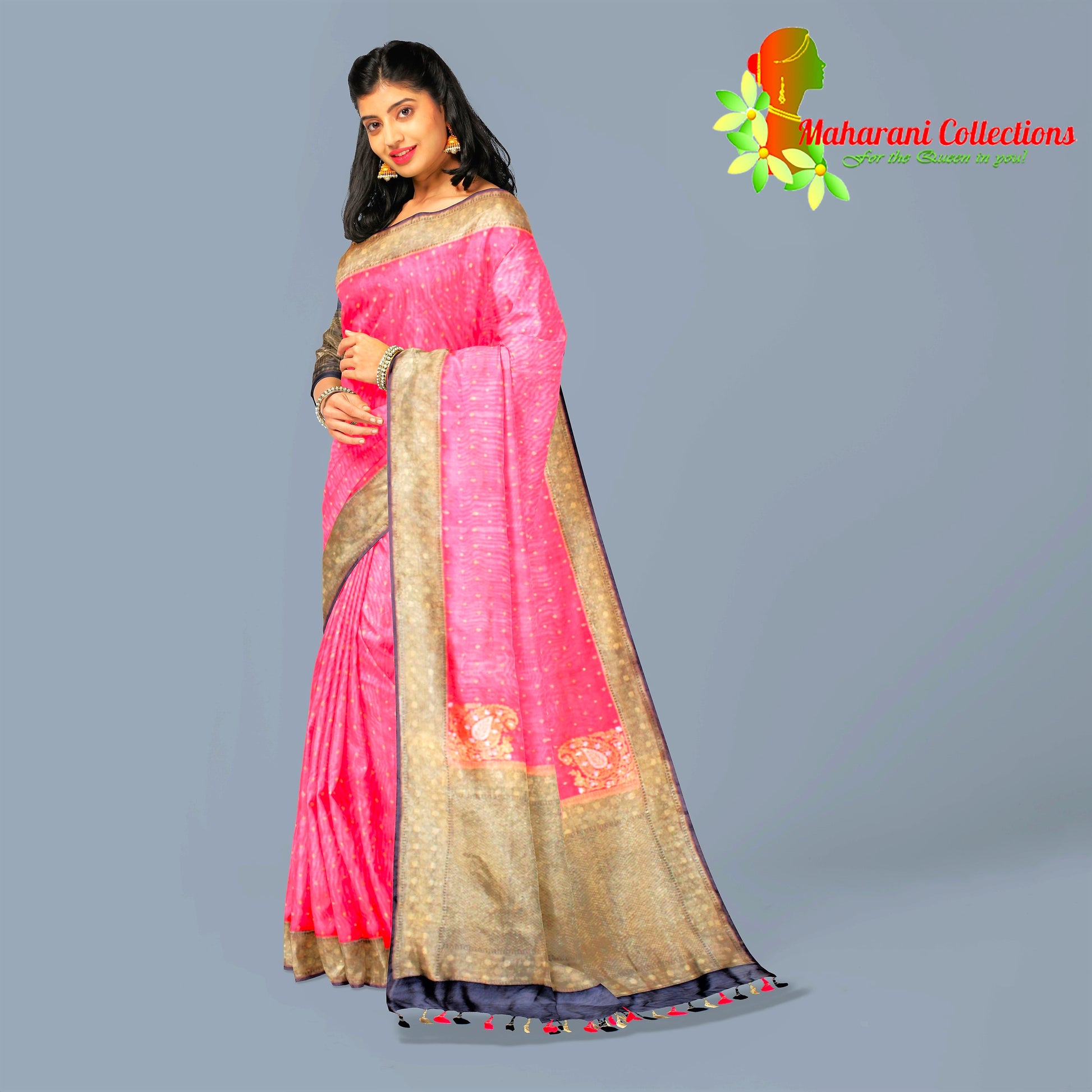 Maharani's Pure machine weaved lightweight Banarasi Silk Saree with matching free ready-to-wear blouse and an unstitched blouse piece. Lightweight and with beautiful shining elegance!