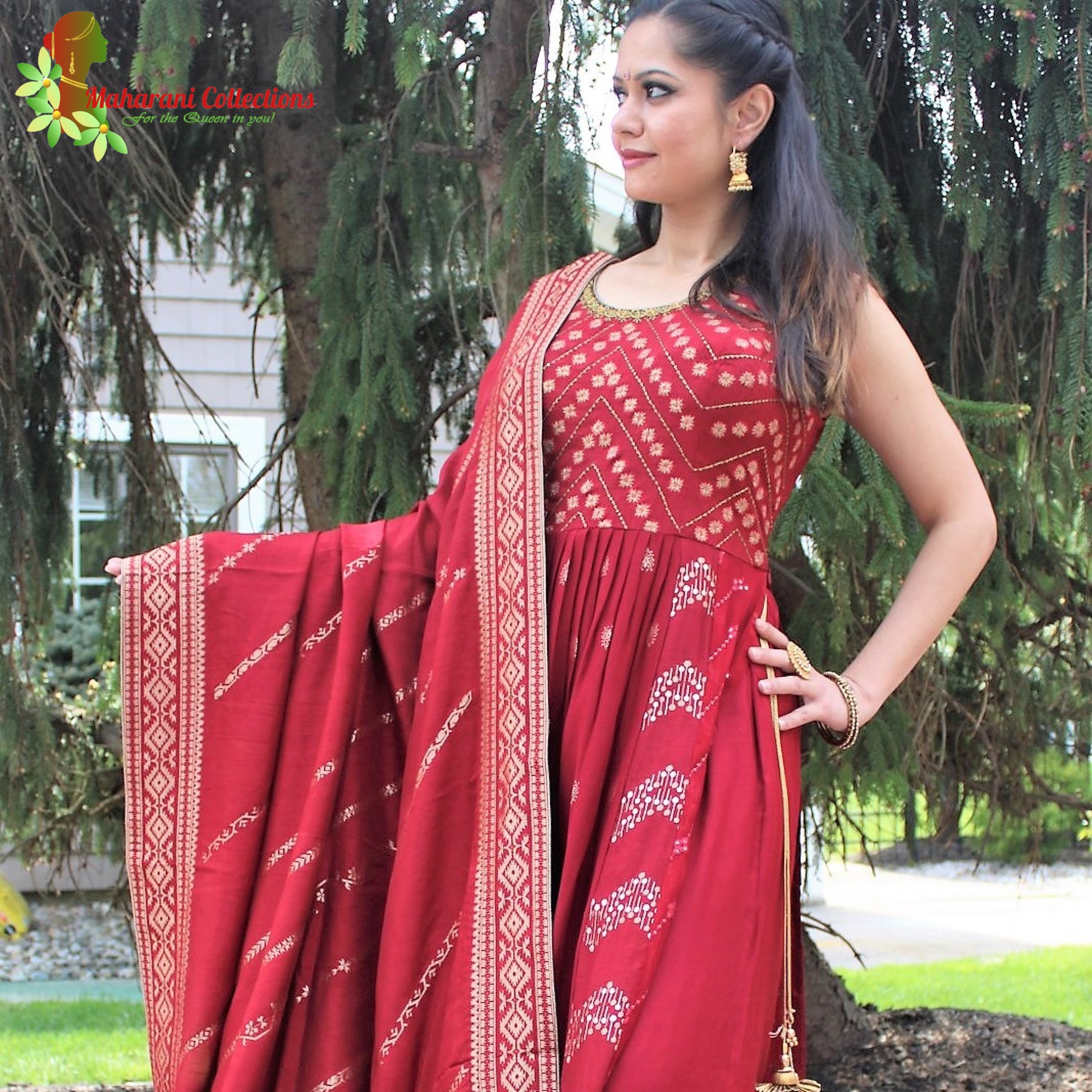 Maharani's Anarkali Suit - Maroon (L) Silk Gala Gown