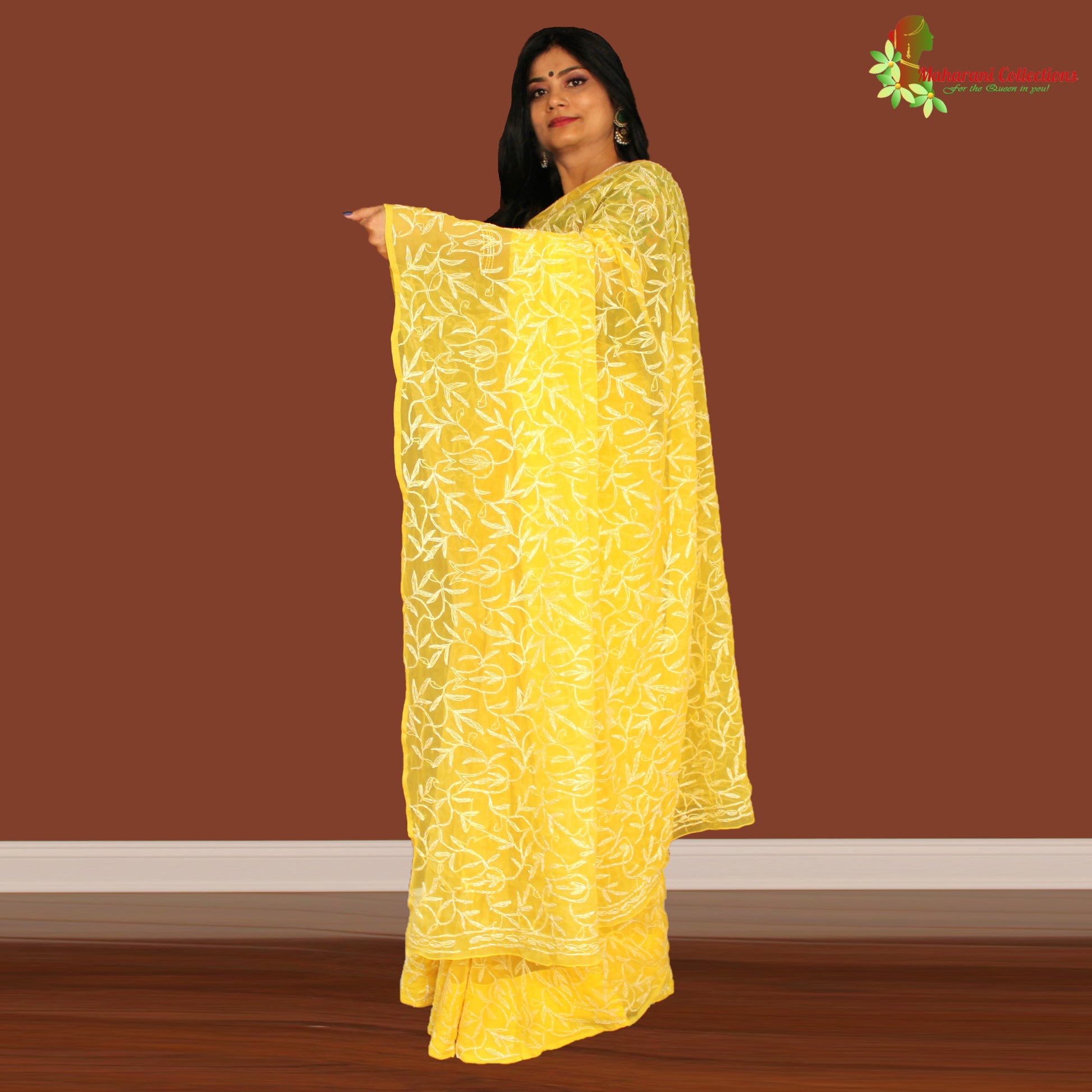 Maharani's Party Wear Lucknowi Chikankari Saree - Yellow - Pure Georgette