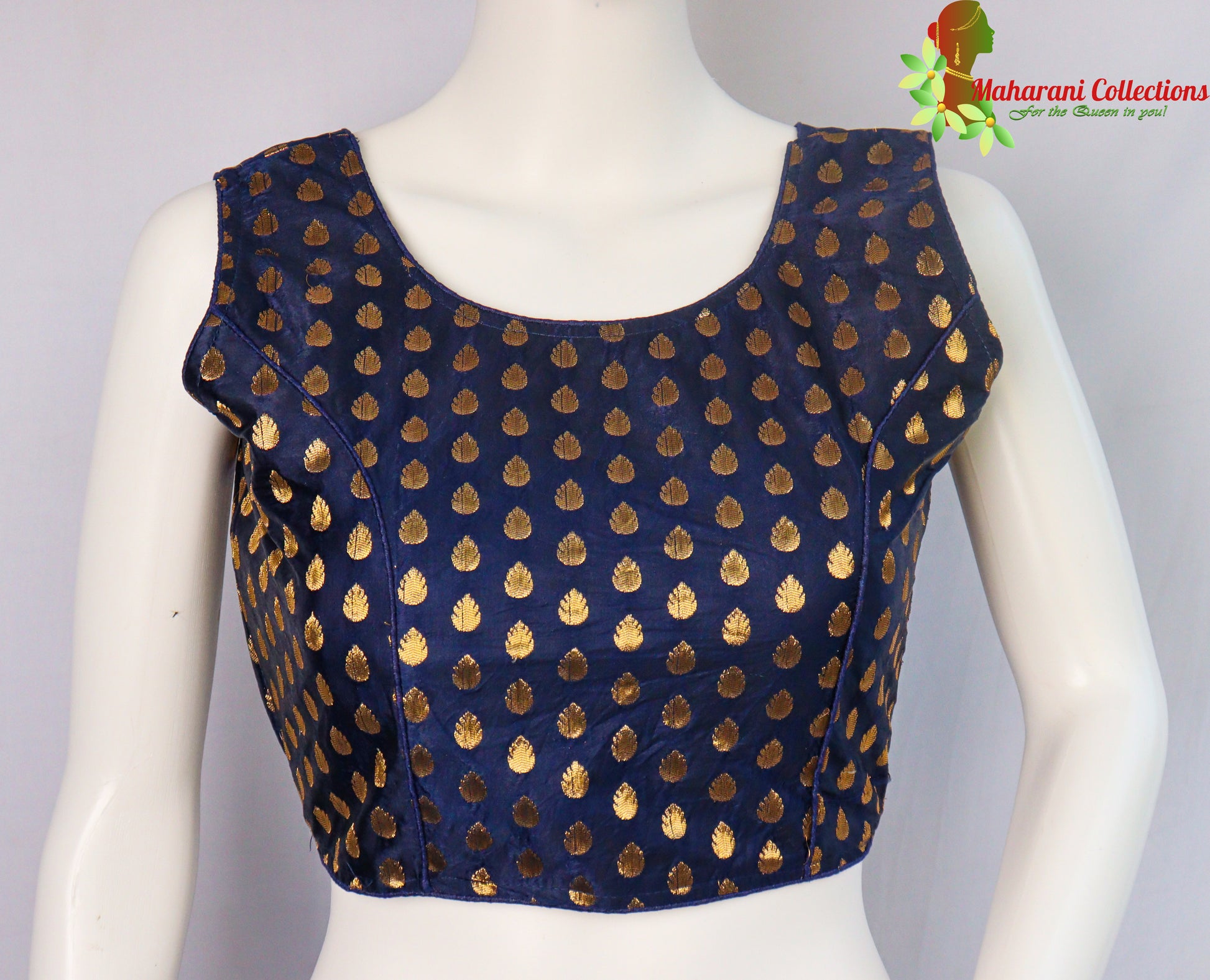Maharani's Banarasi Silk Blouse with Golden Boota - Navy Blue