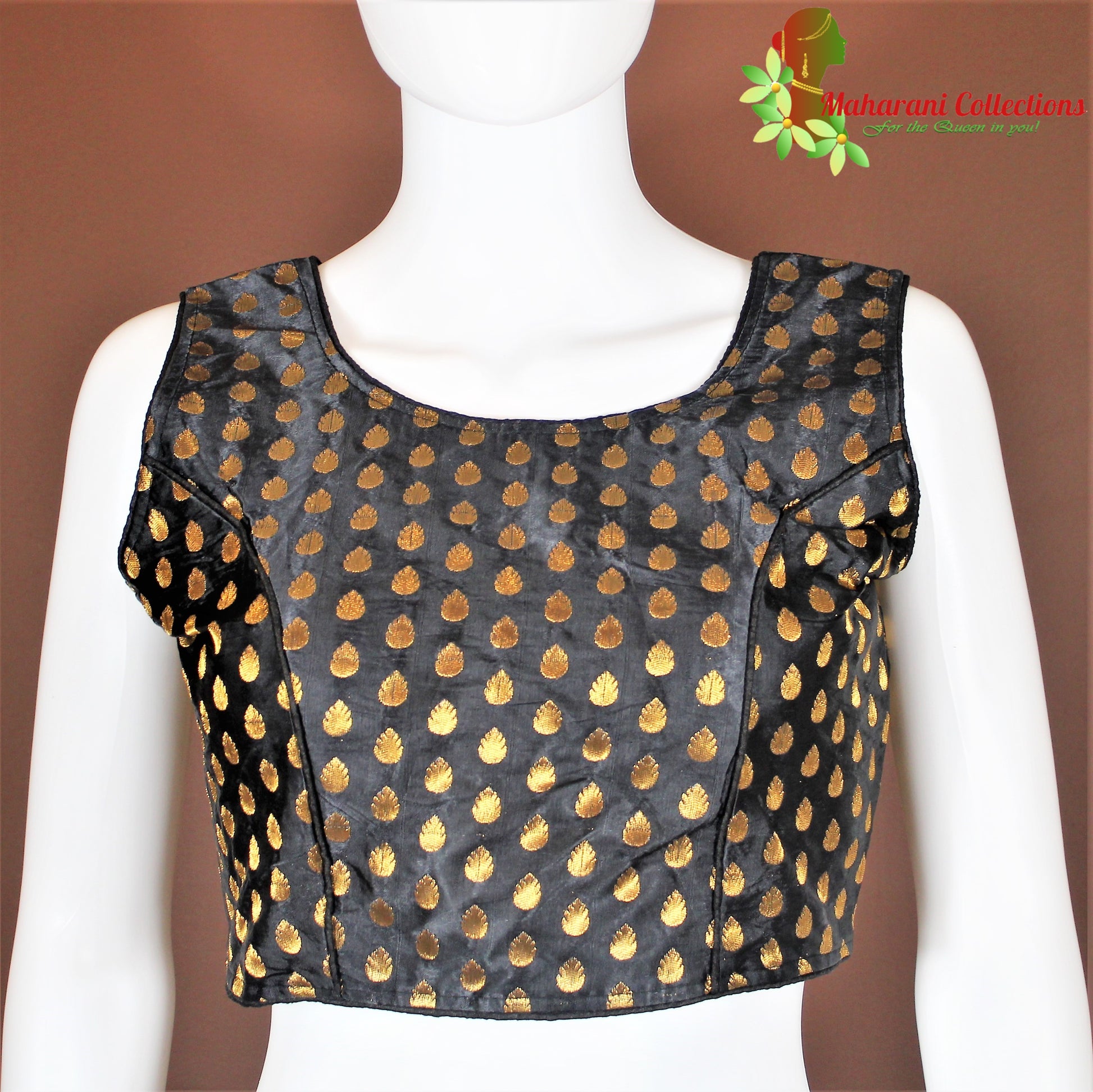 Maharani's Banarasi Silk Blouse with Golden Boota - Black