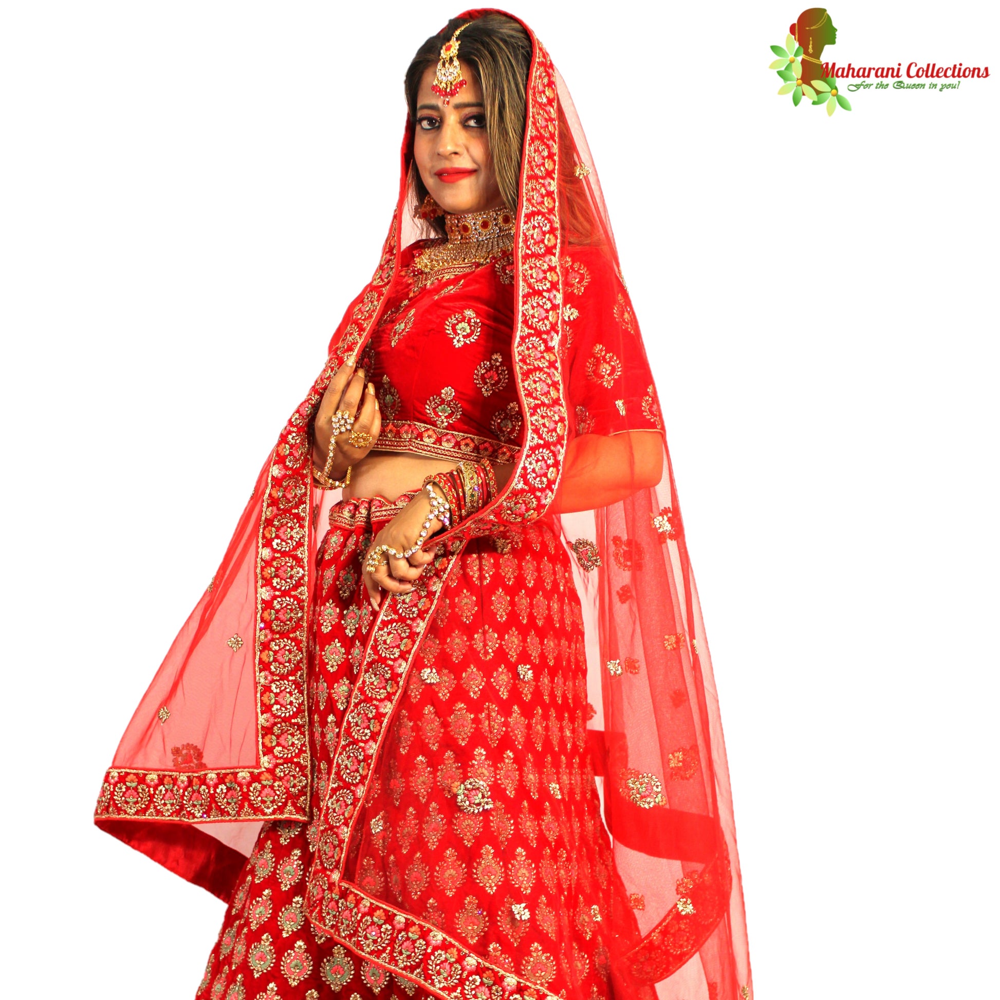 Maharani's Designer Bridal Lehenga - Stunning Red in Velvet (L)