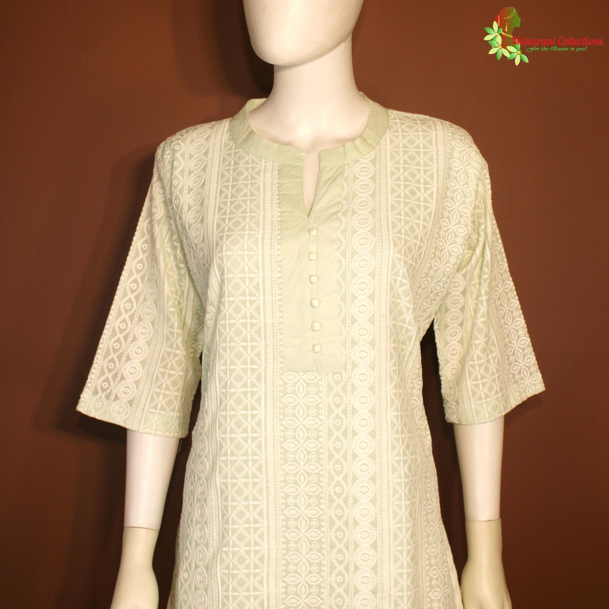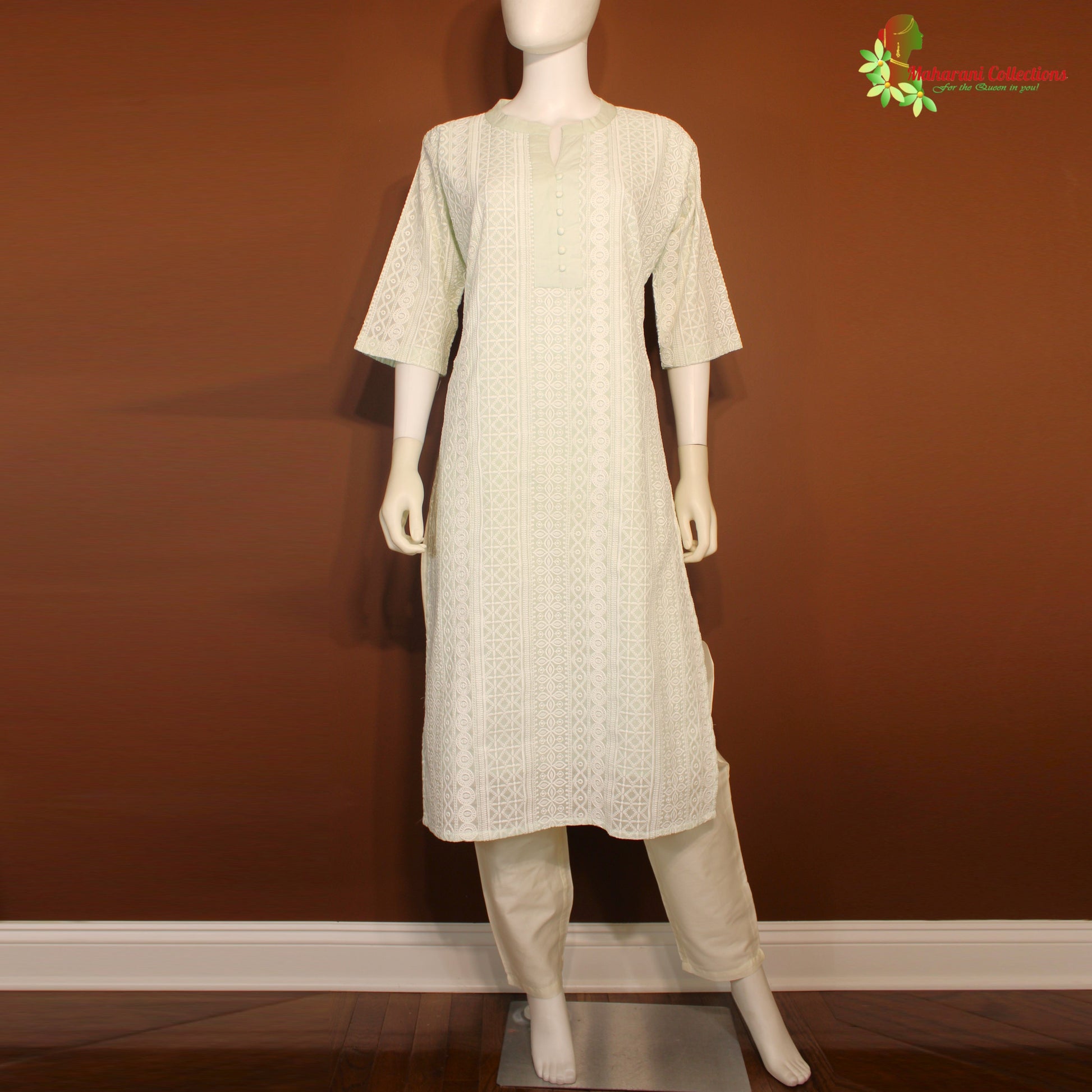 Maharani's finest soft cotton Palazzo Suit with extensive Chikankari threadwork, stitched cotton lining, cotton silk pant and Lucknowi Chikankari dupatta.