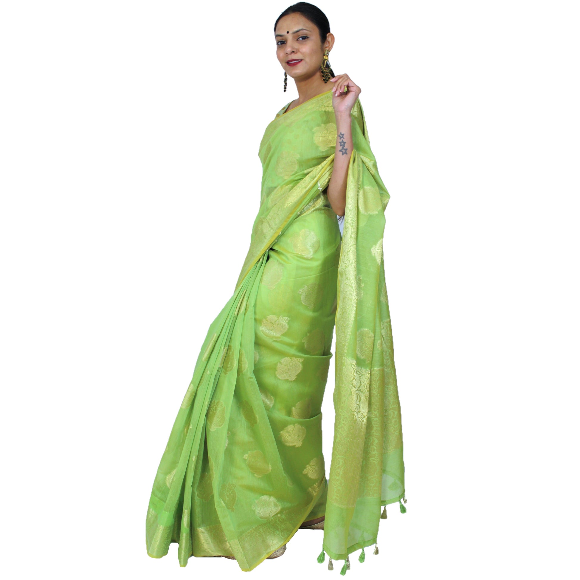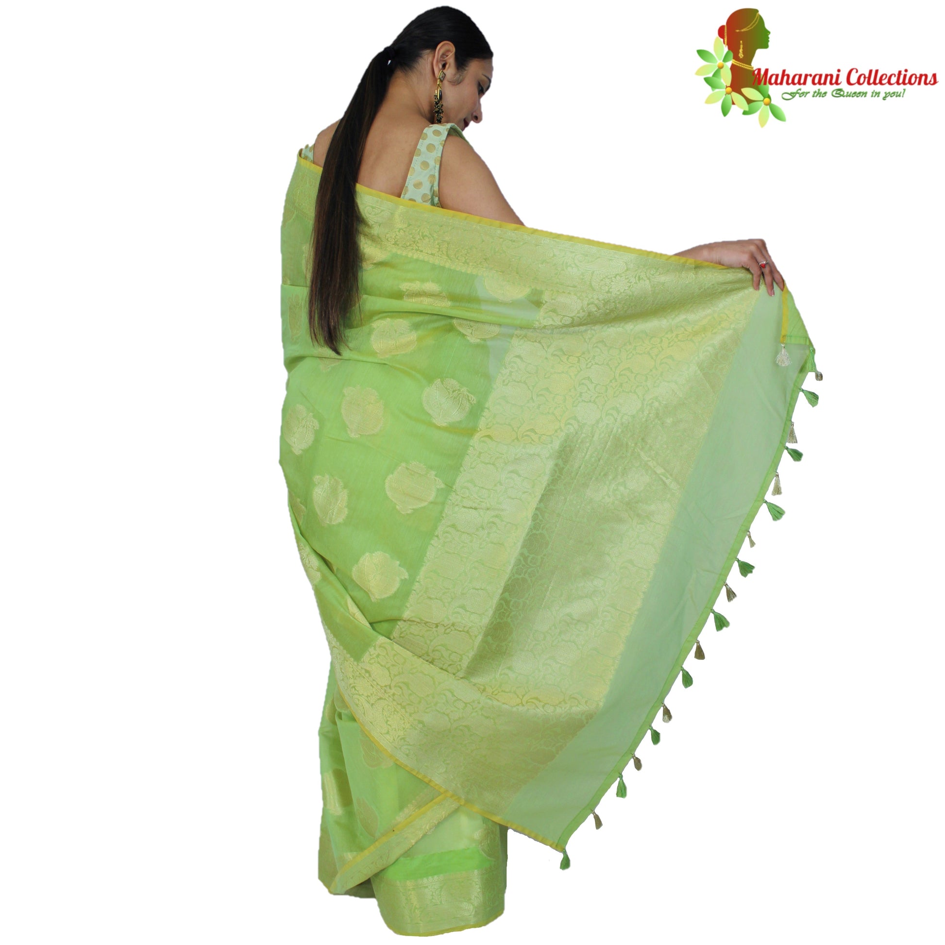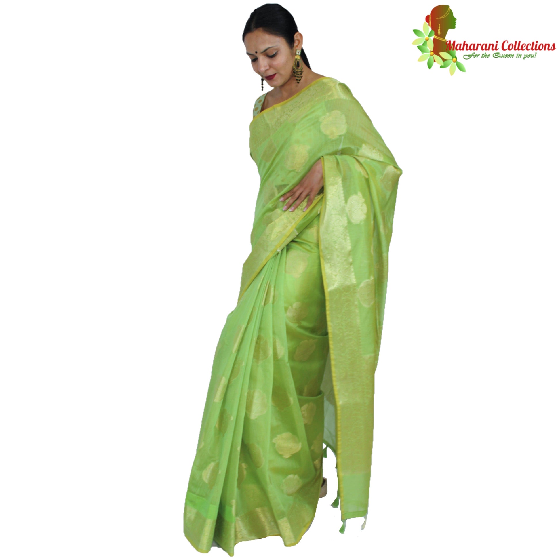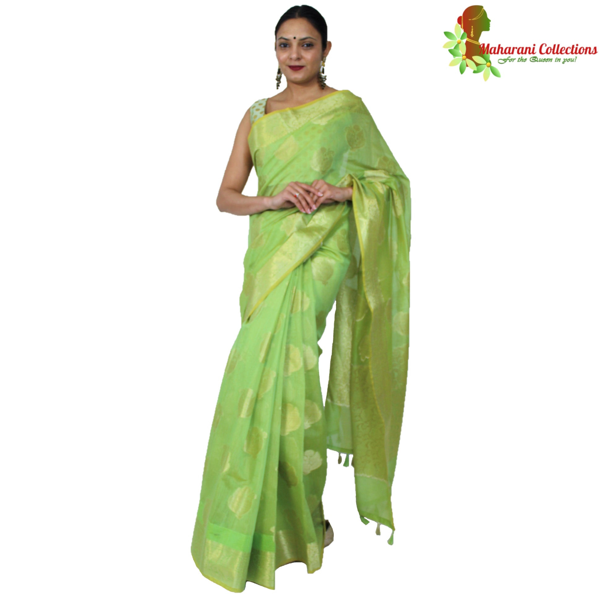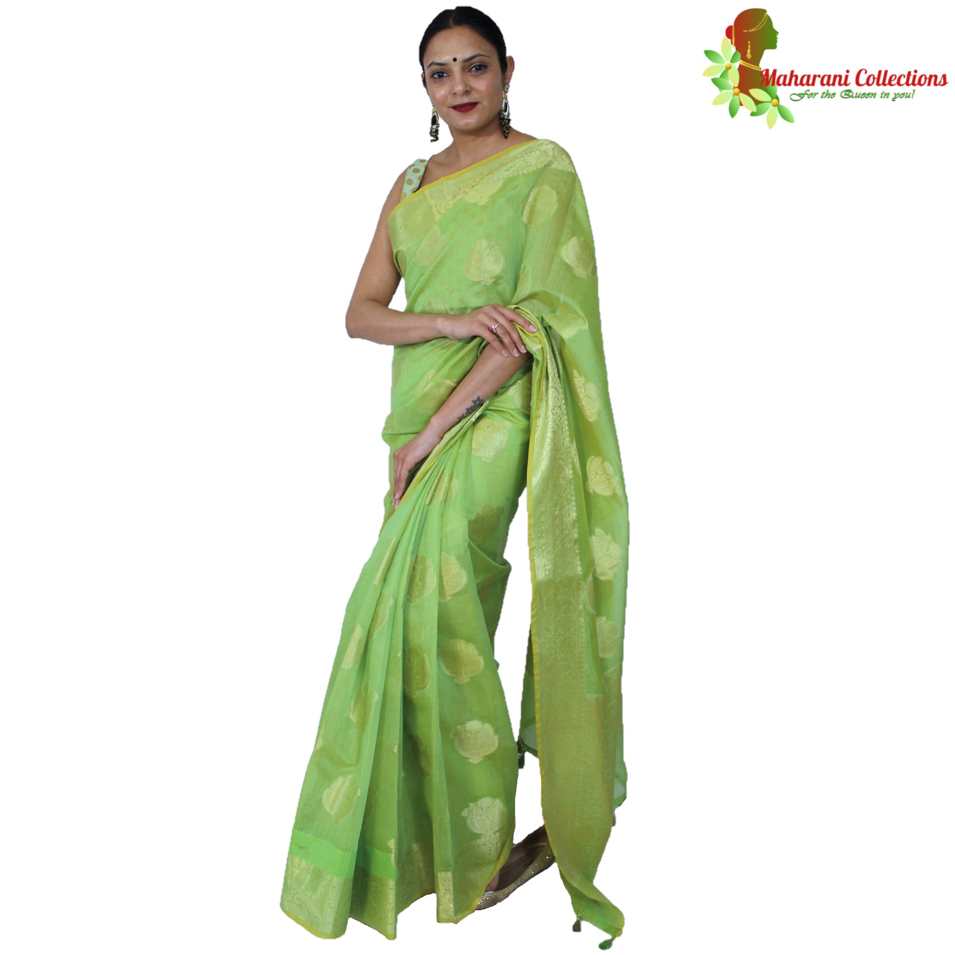 Maharani's Pure Banarasi Silk Saree - Asparagus Green (with Stitched Blouse and Petticoat)