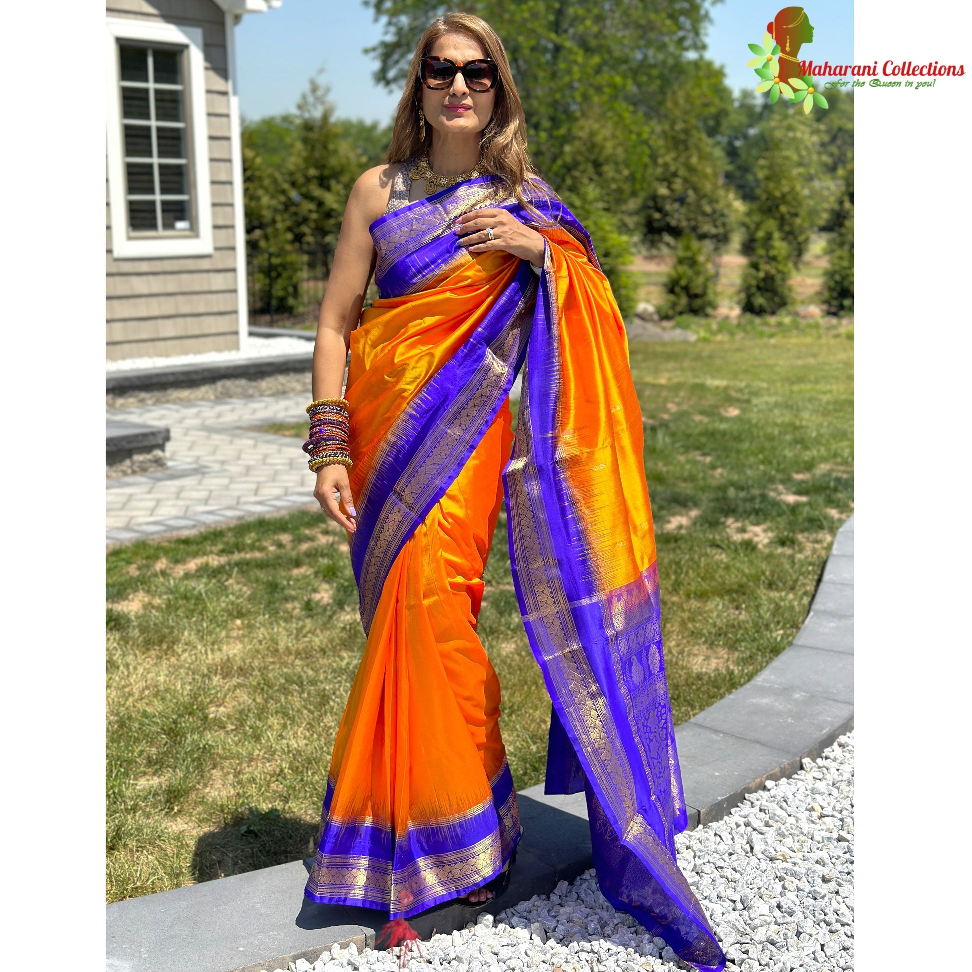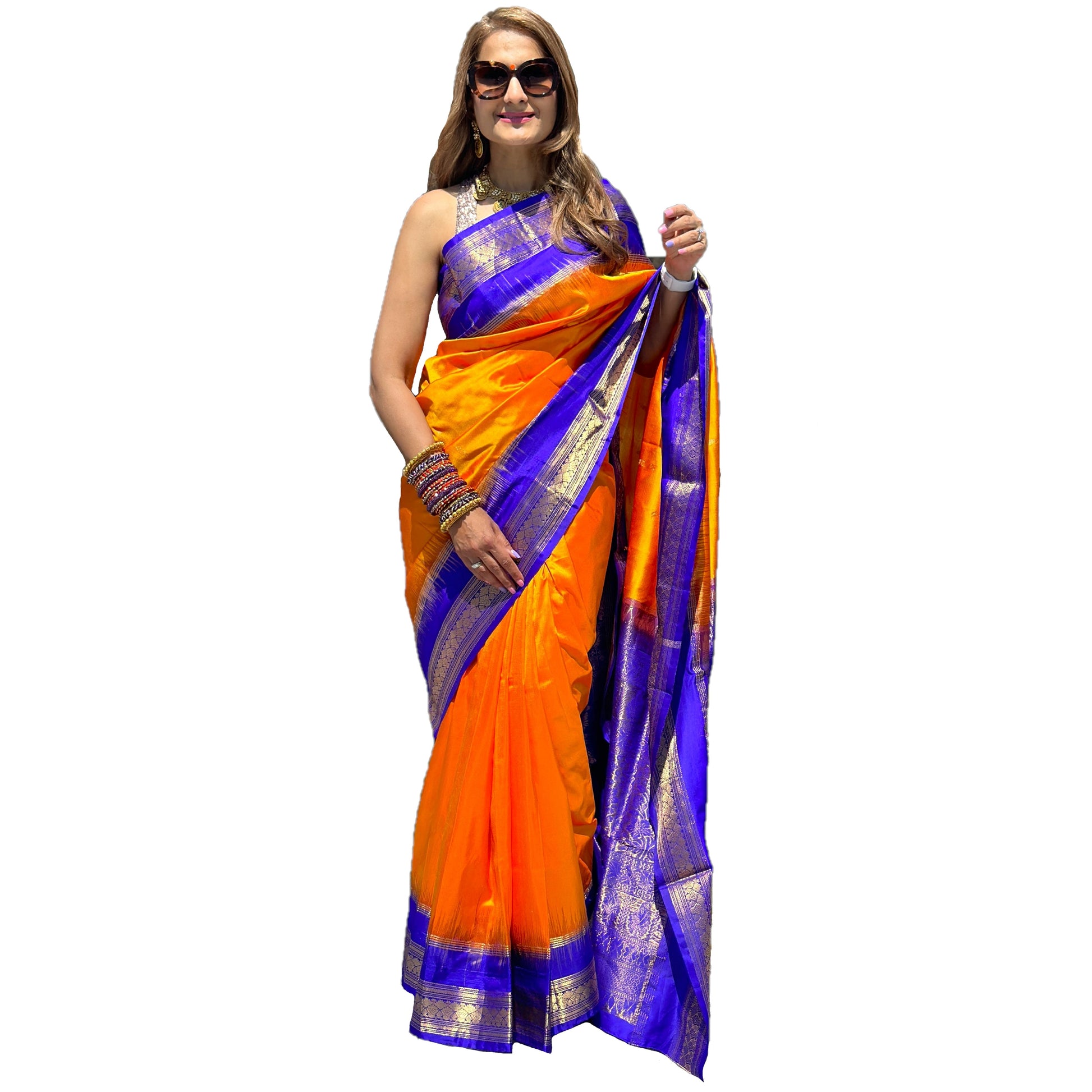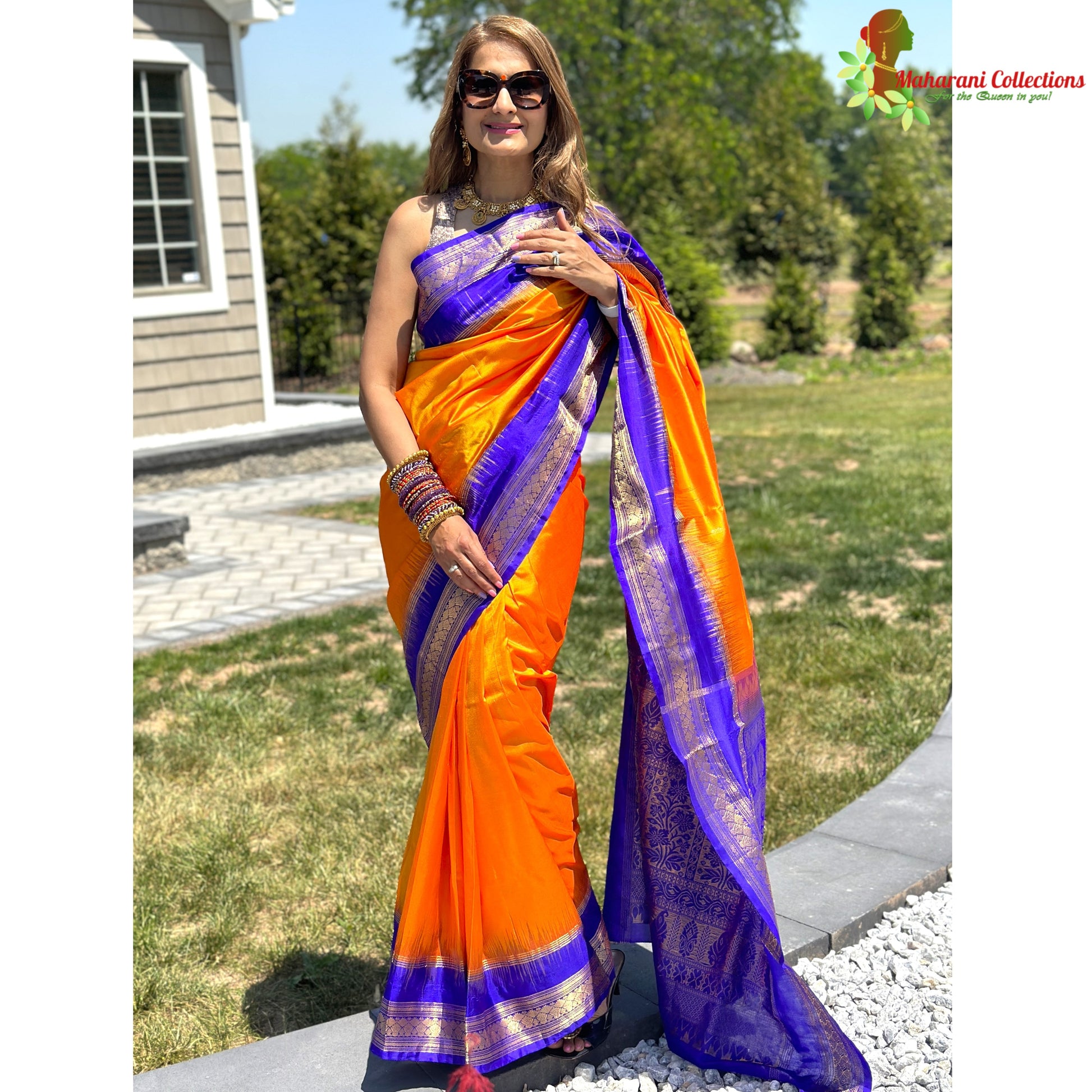 The luxurious look of Maharani's Pure Banarasi Silk Saree in vibrant orange will make you feel like royalty. Choose from the ready-to-wear petticoat and original unstitched blouse piece for an effortlessly regal look. Heavy golden zari and Boota work give it a stunning shine and beautiful texture - you'll be ready to wear it as soon as you receive it!