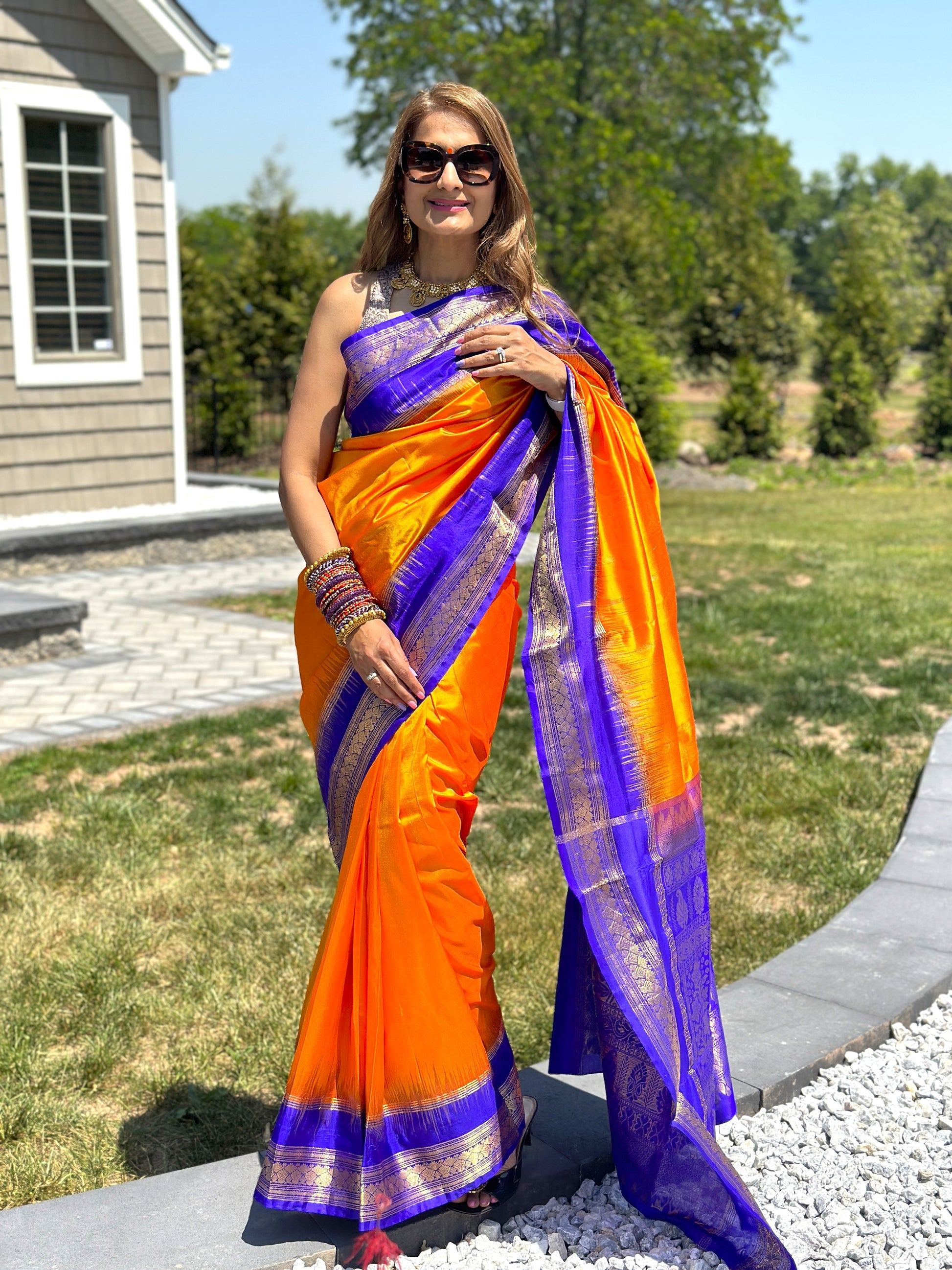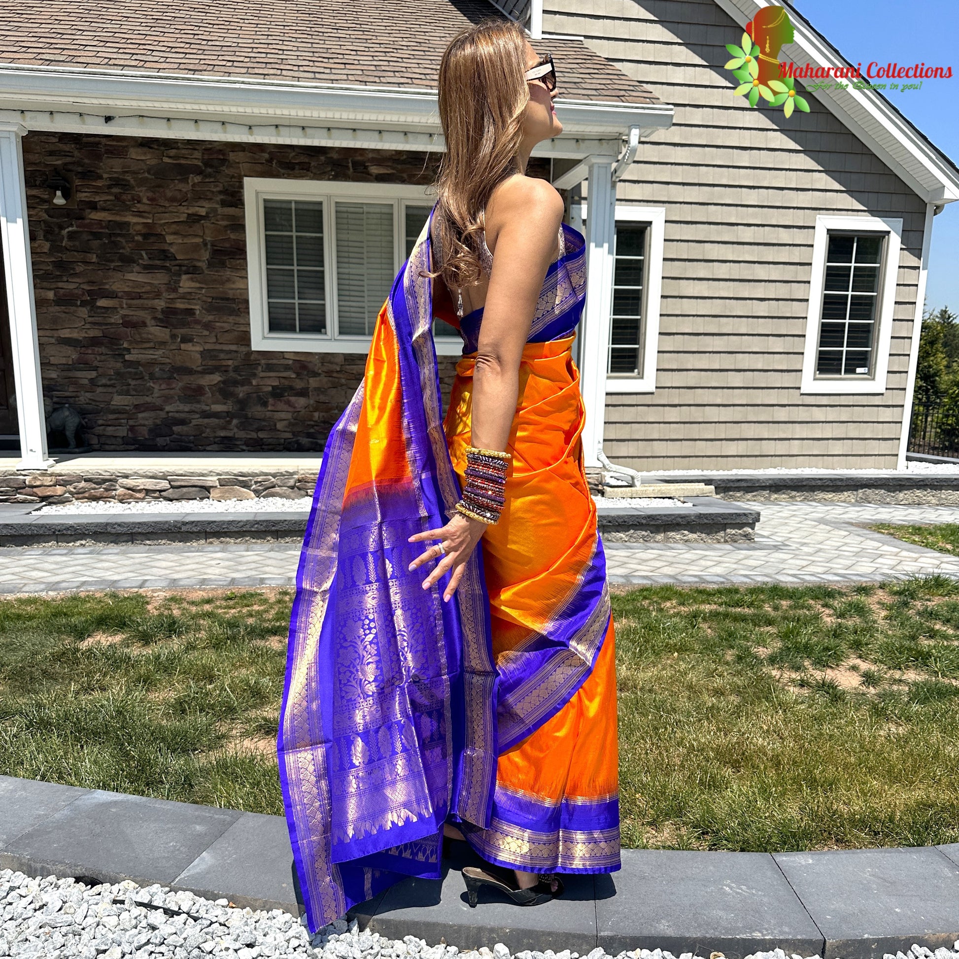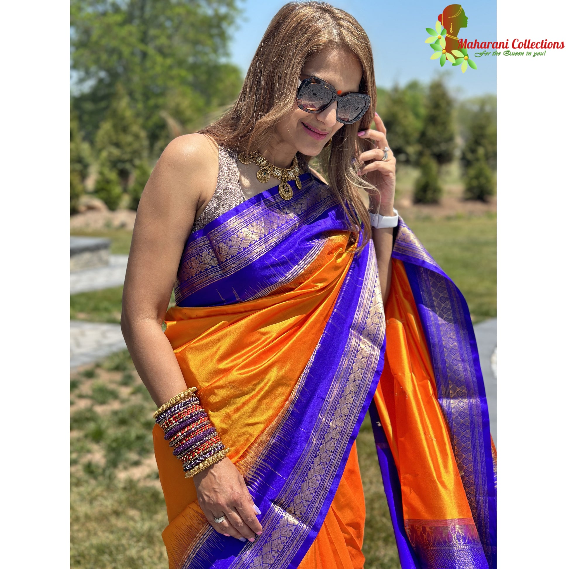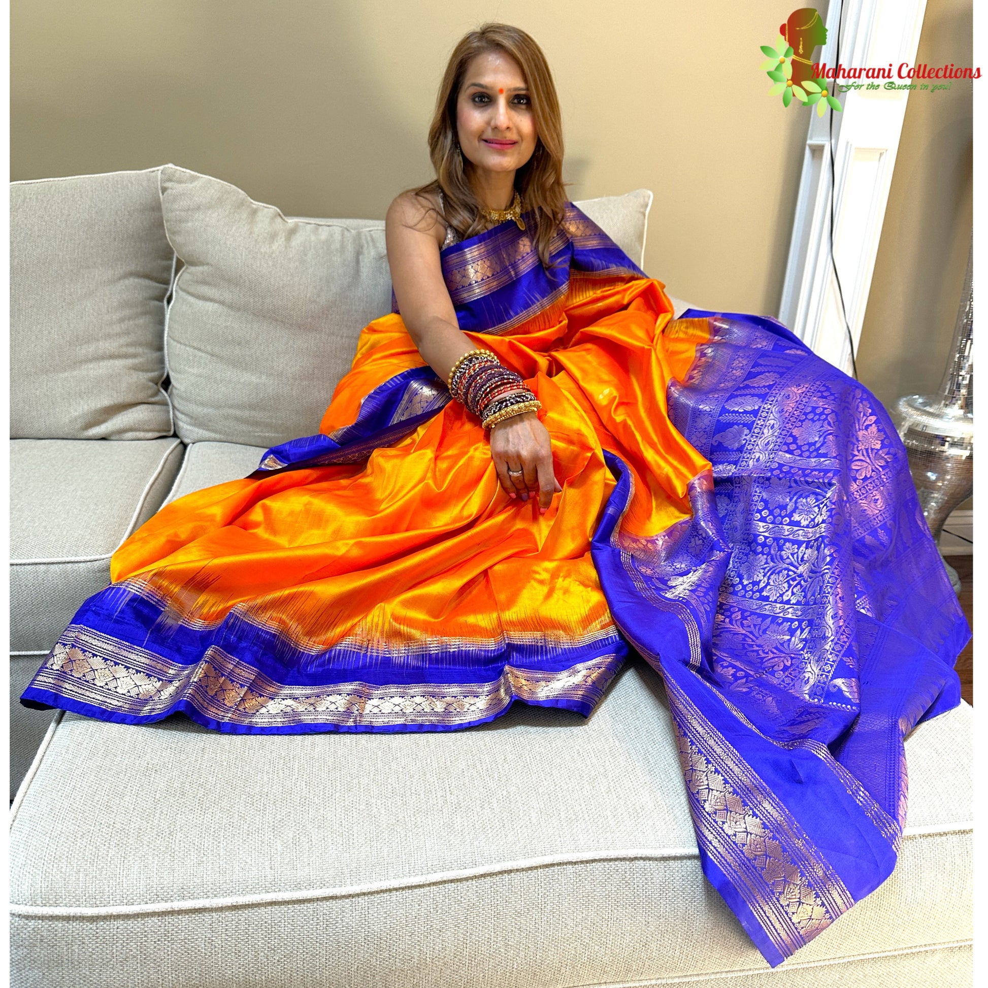 The luxurious look of Maharani's Pure Banarasi Silk Saree in vibrant orange will make you feel like royalty. Choose from the ready-to-wear petticoat and original unstitched blouse piece for an effortlessly regal look. Heavy golden zari and Boota work give it a stunning shine and beautiful texture - you'll be ready to wear it as soon as you receive it!