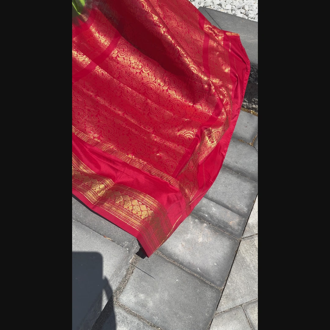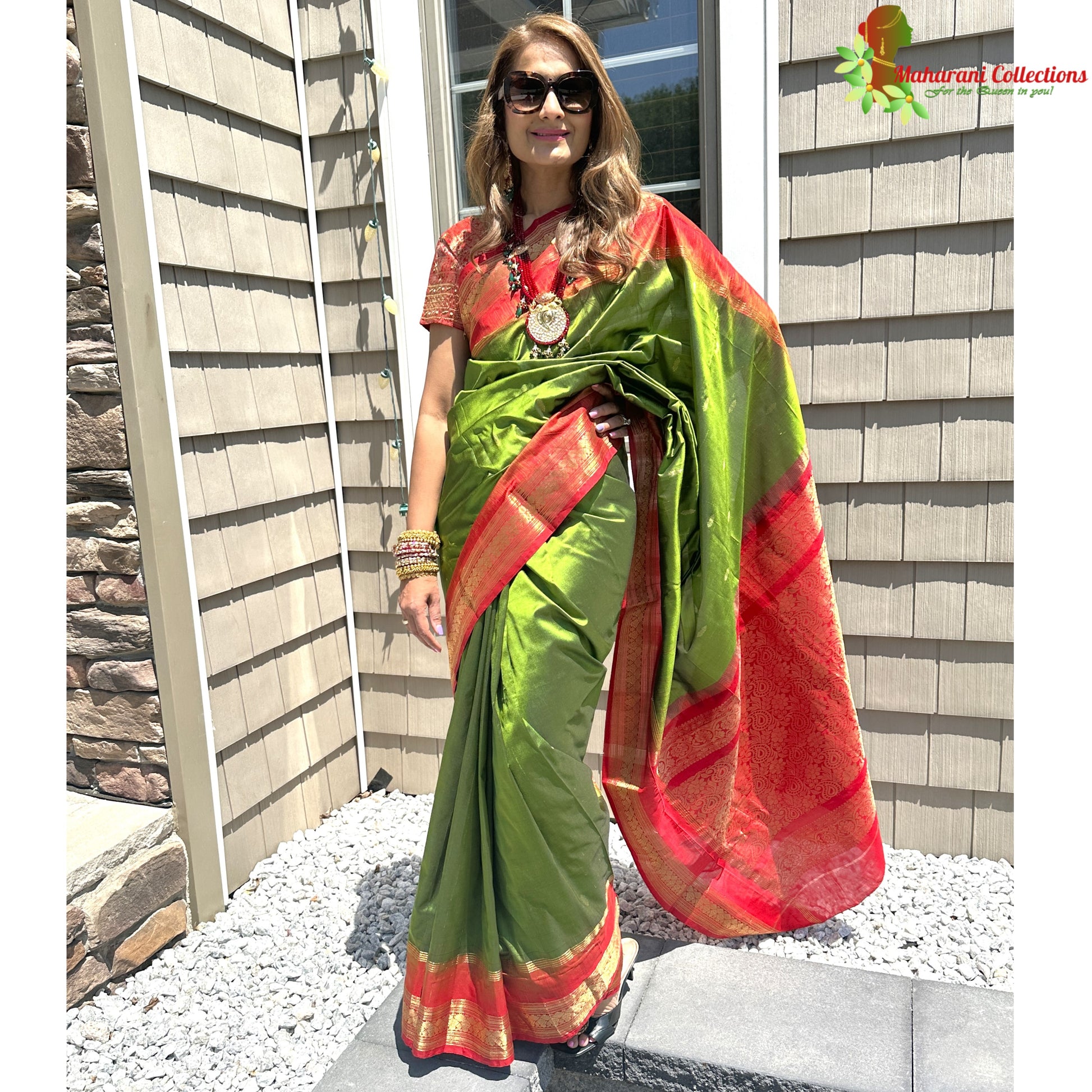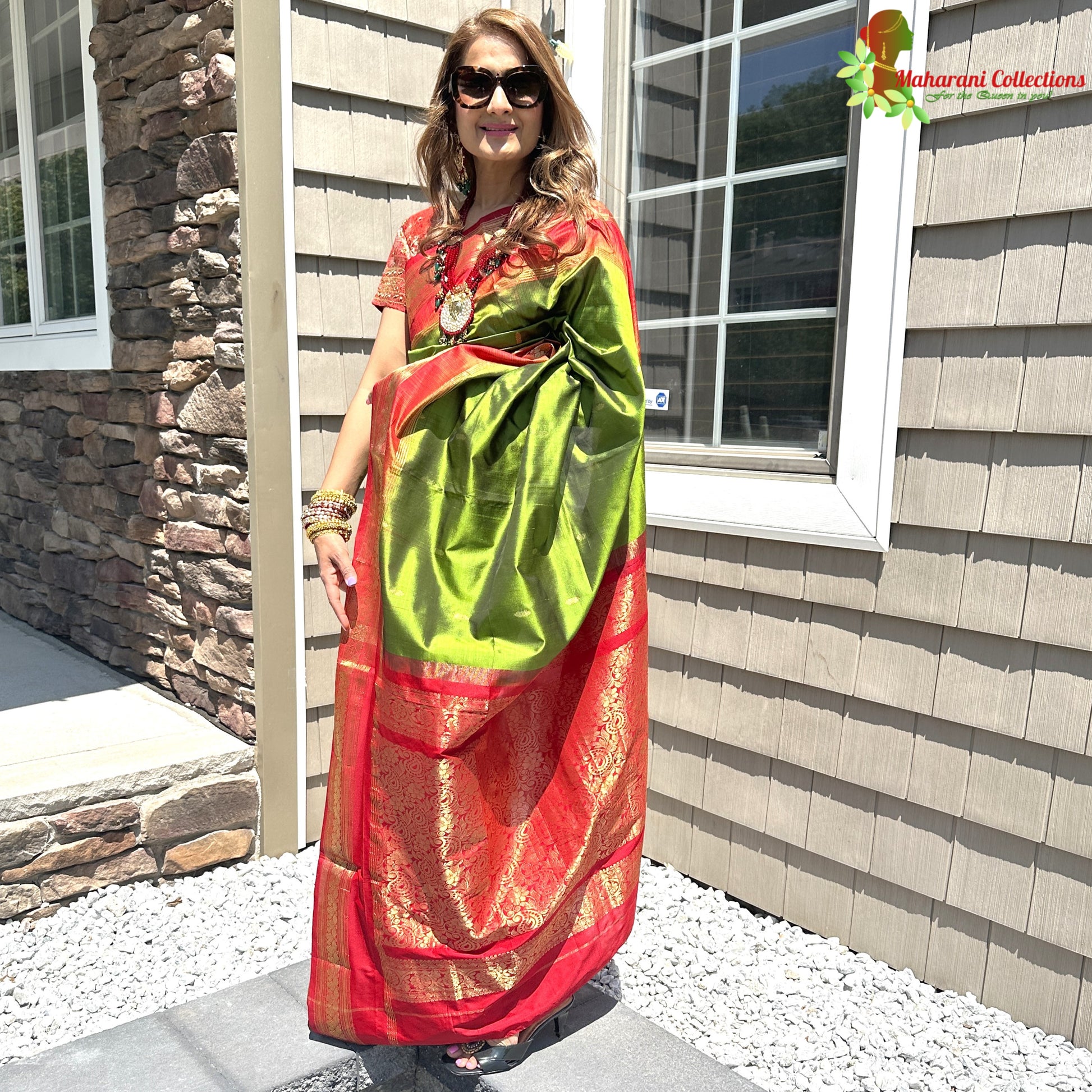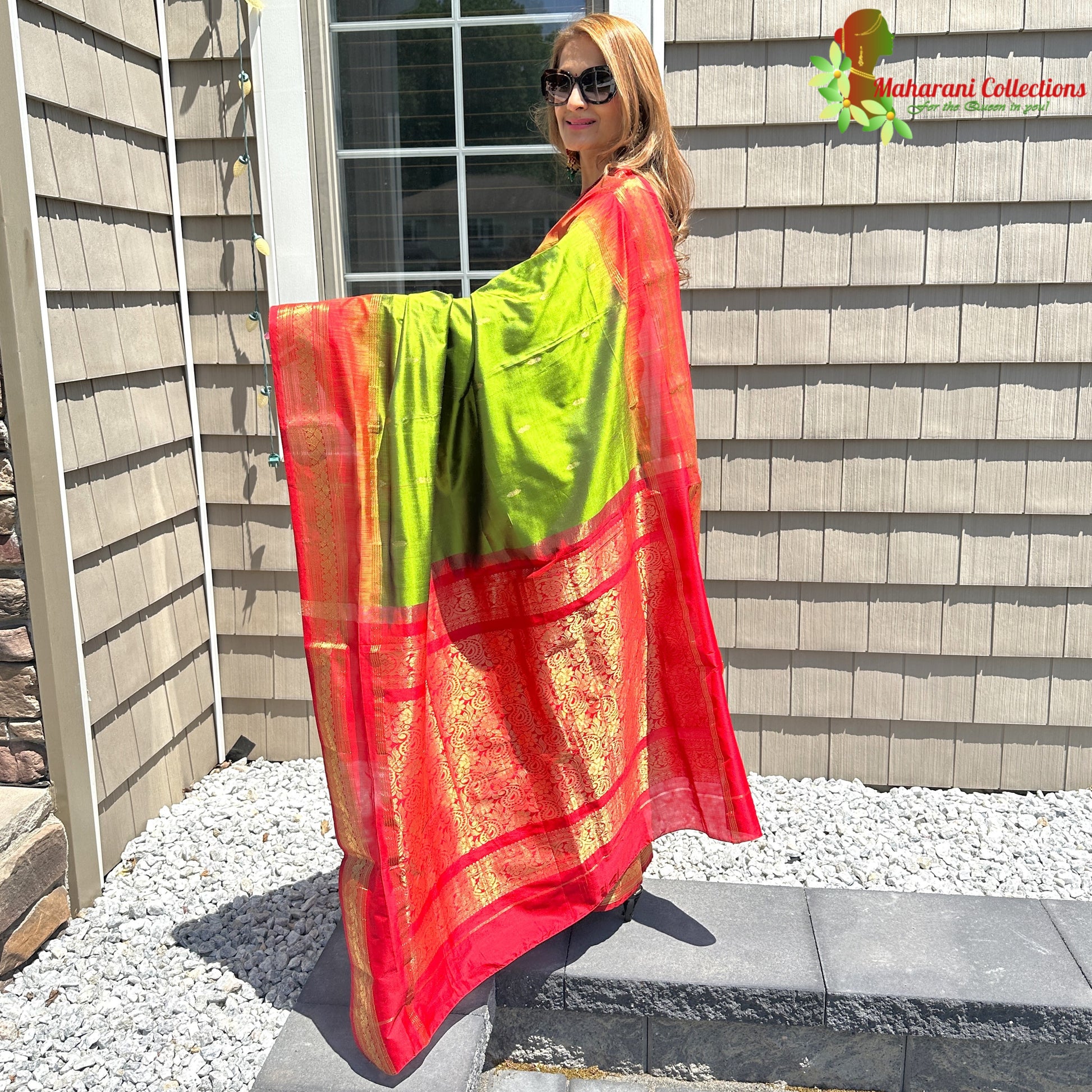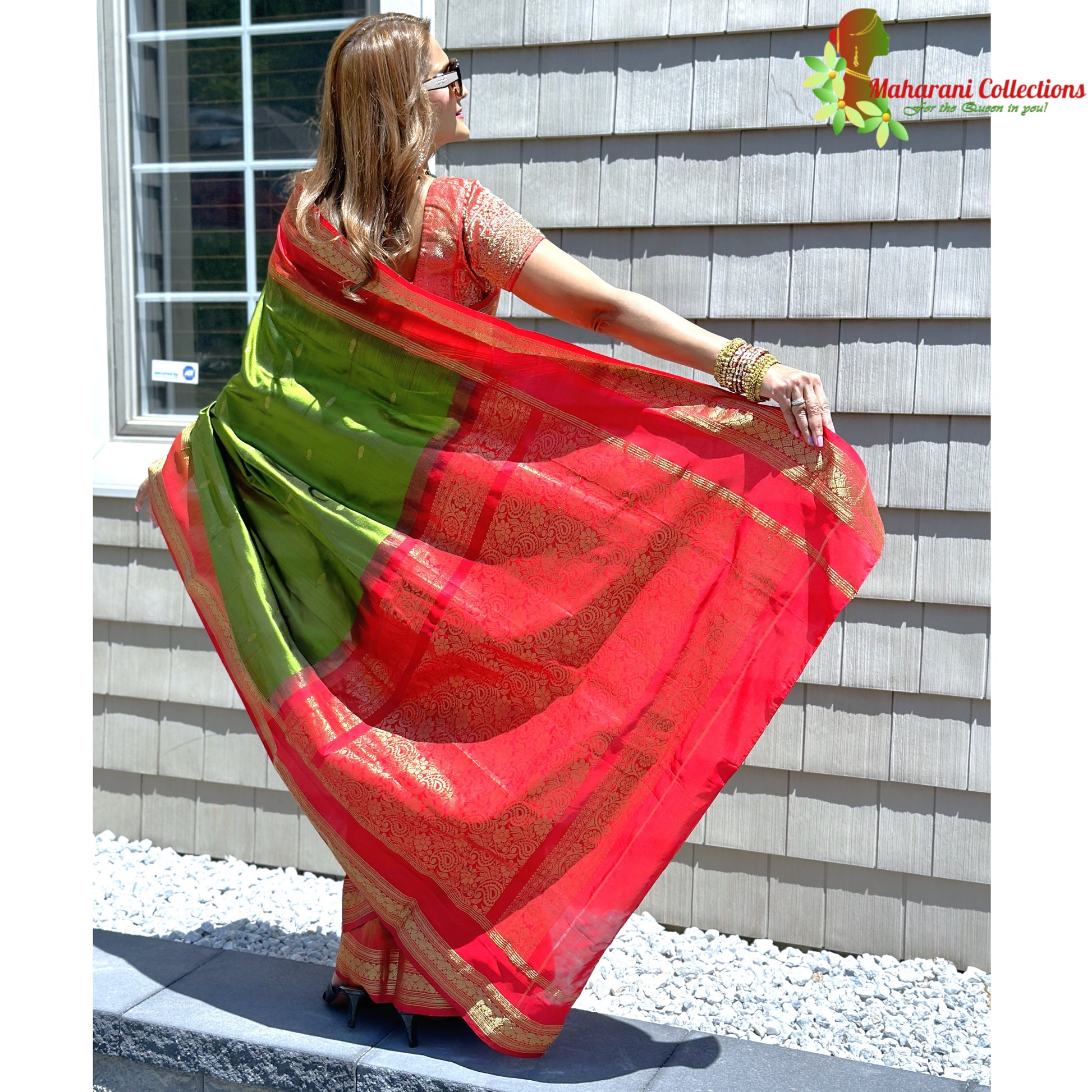 Maharani's Pure Banarasi Silk Saree - Parrot Green (with stitched Petticoat)