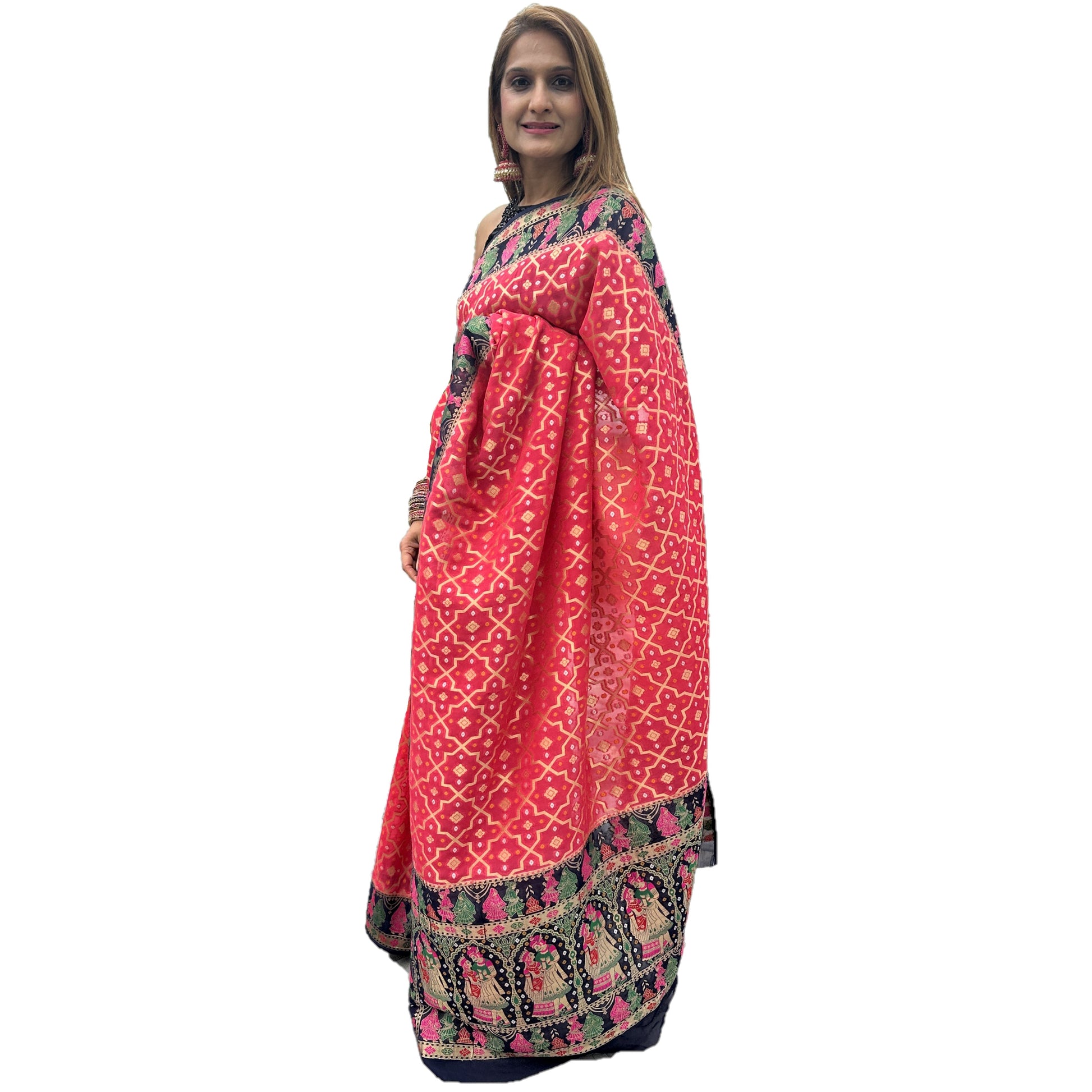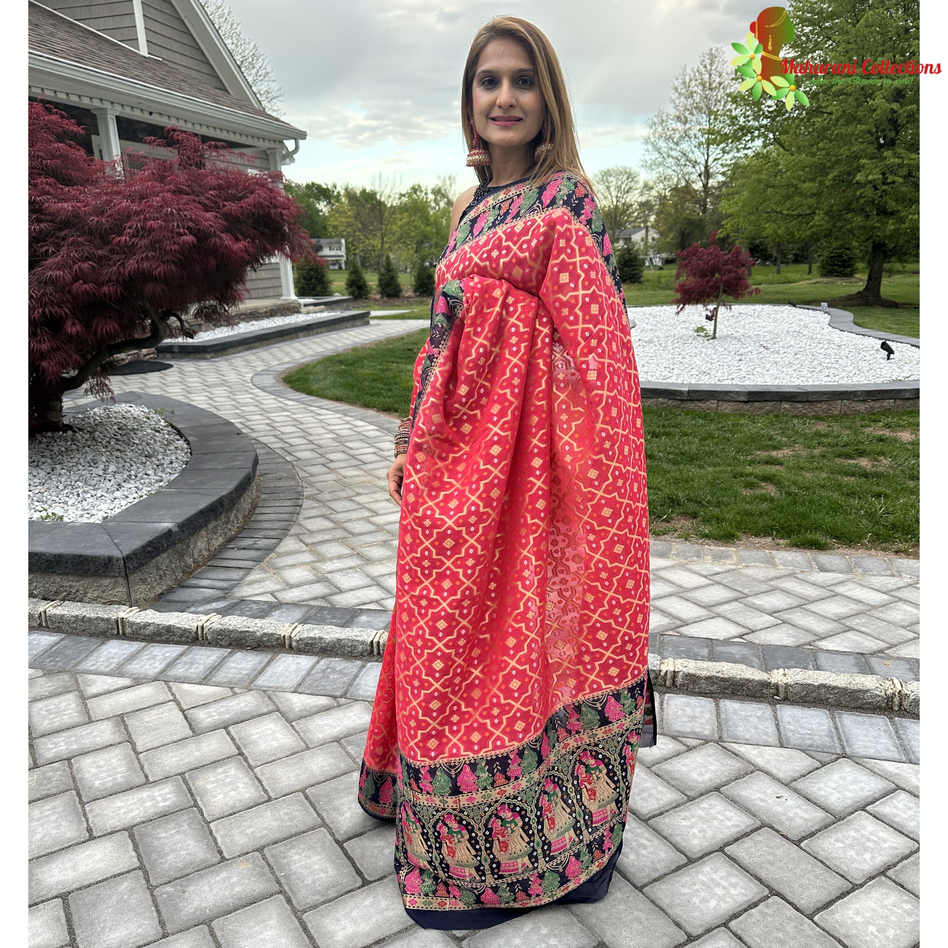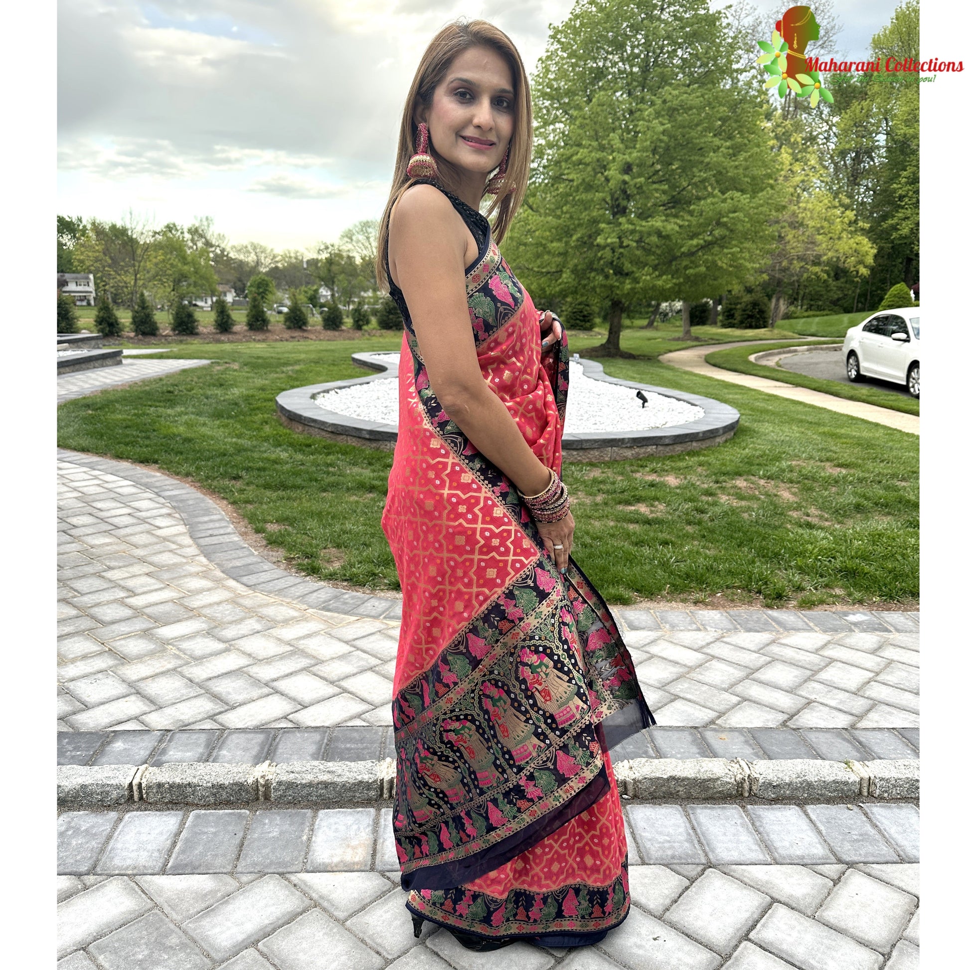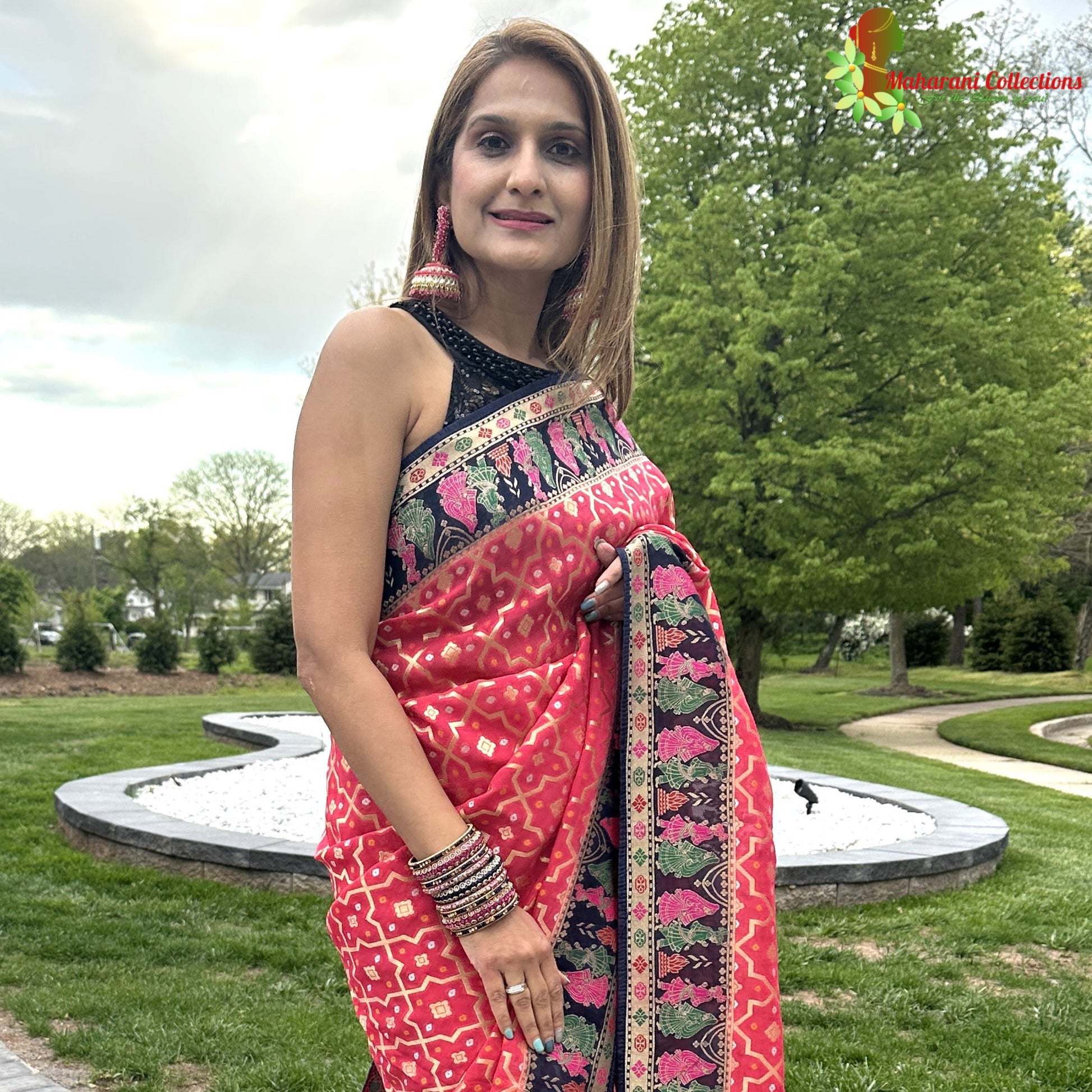 Maharani's Pure Banarasi Silk Saree - Raspberry Red and Blue