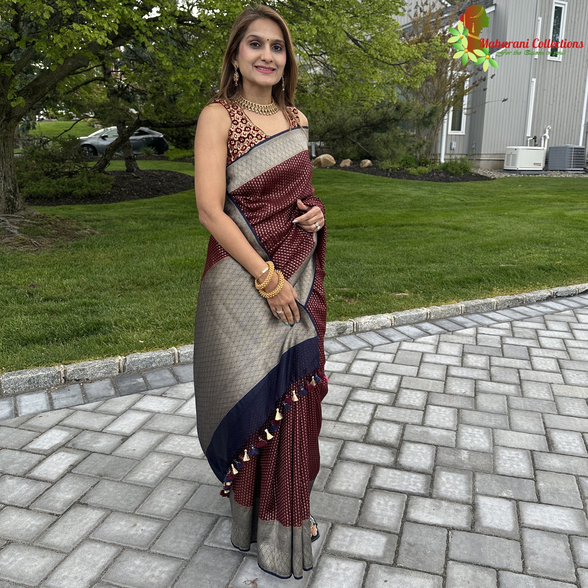 Maharani's Pure Handloom Tussar Silk Saree - Maroon