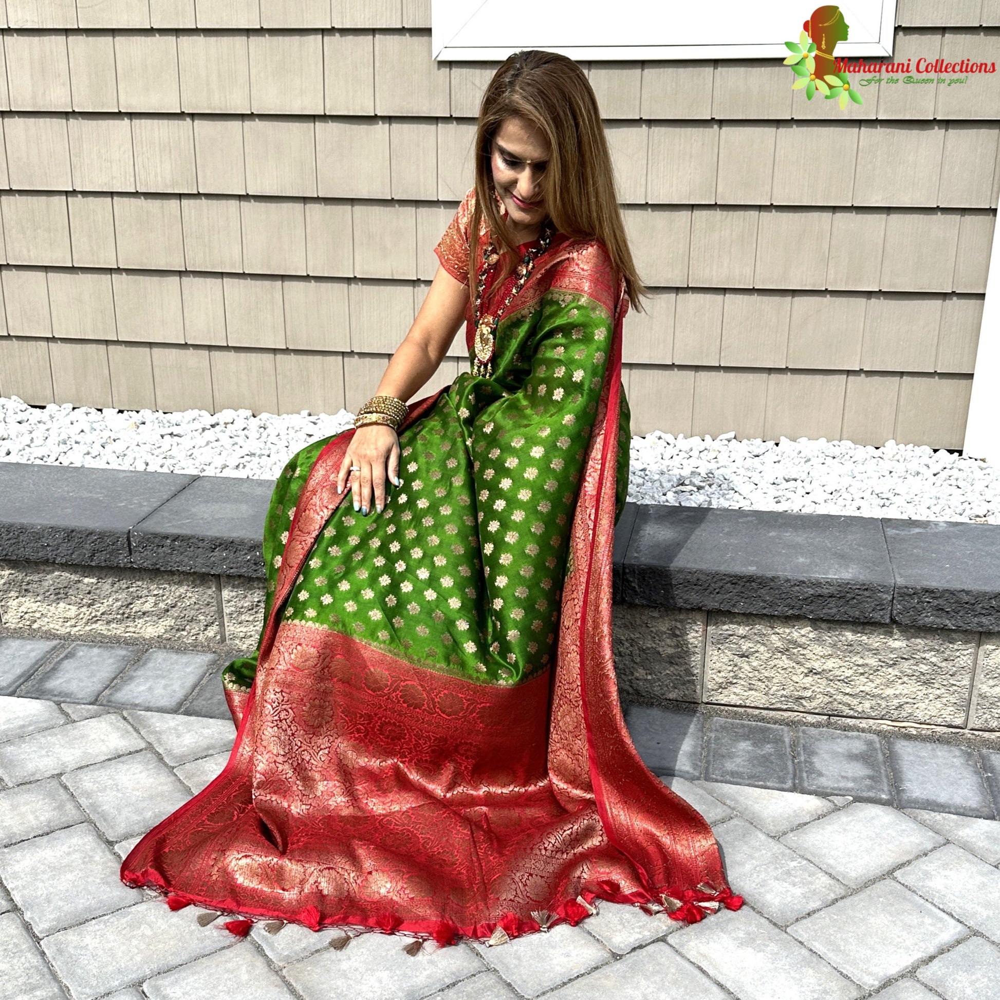 Maharani's Pure Tussar Silk Saree (Silk Mark) - Green (with Stitched Blouse & Petticoat)