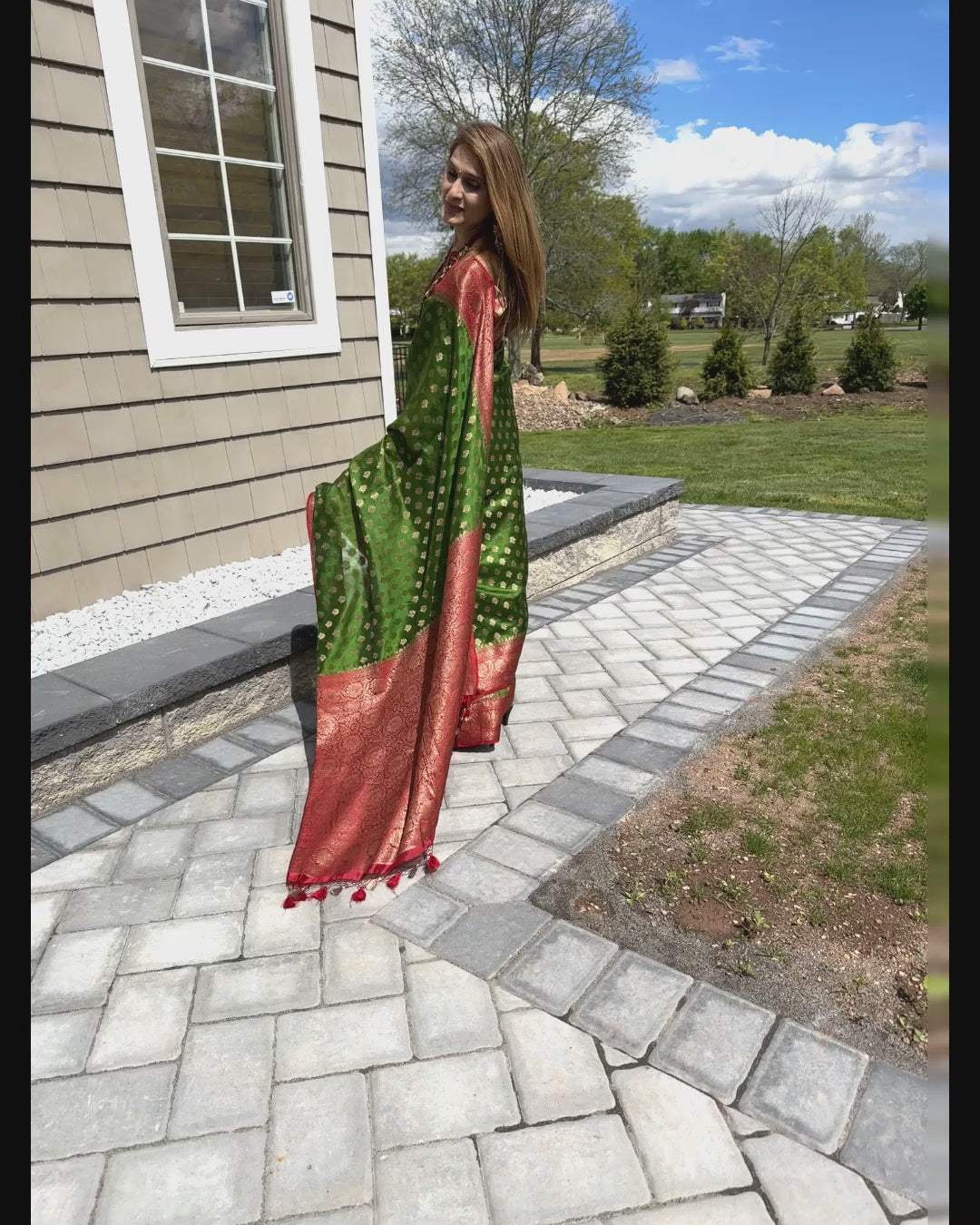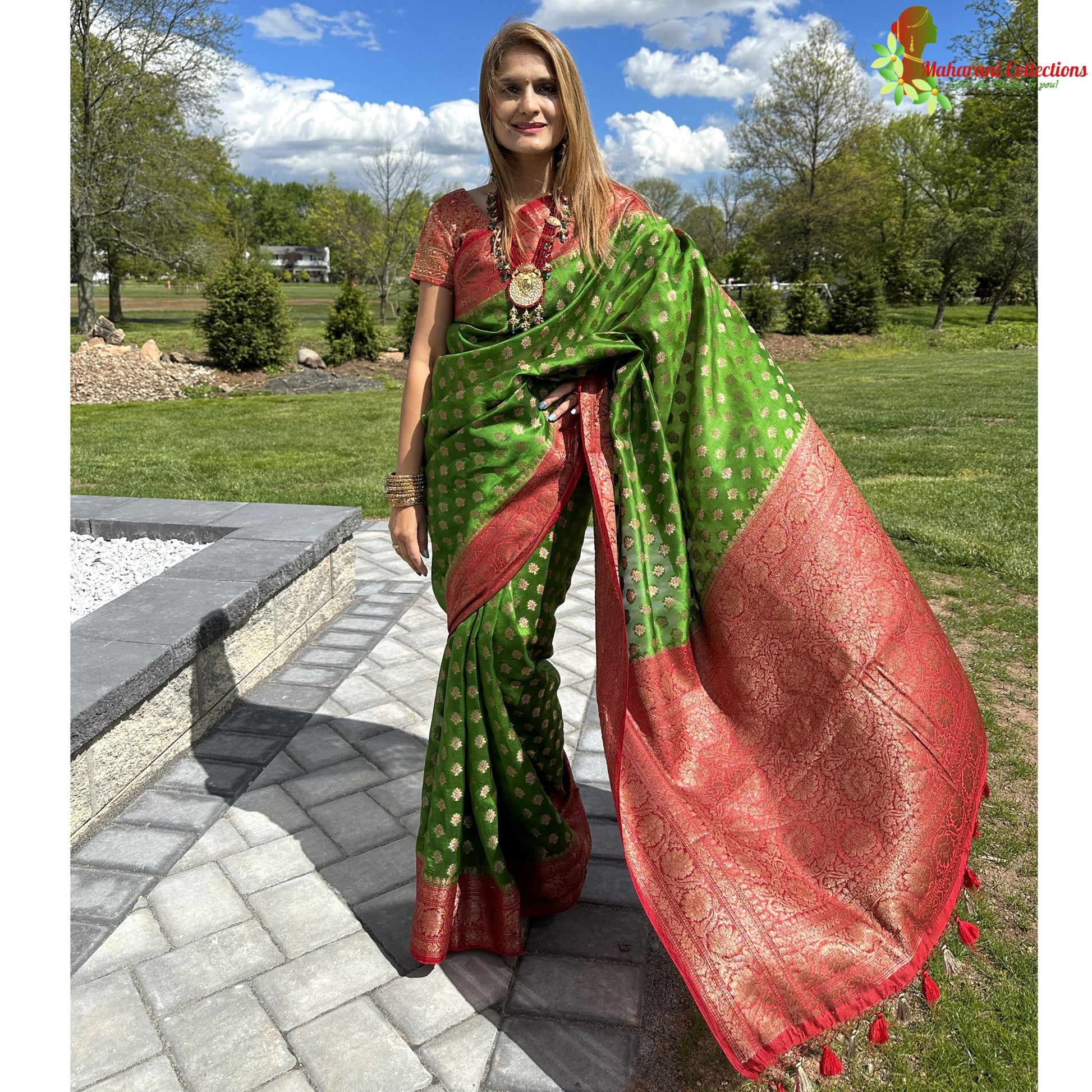 Experience the timeless beauty of India's traditional Bhagalpuri Tussar Silk, handwoven to create this lush Maharani Silk Saree. Certified with the Silk Mark, this stunning Saree includes a stitched blouse and petticoat; be ready to conquer any occasion in moments. Unleash your inner royalty and challenge yourself to be the boldest version of your best self!