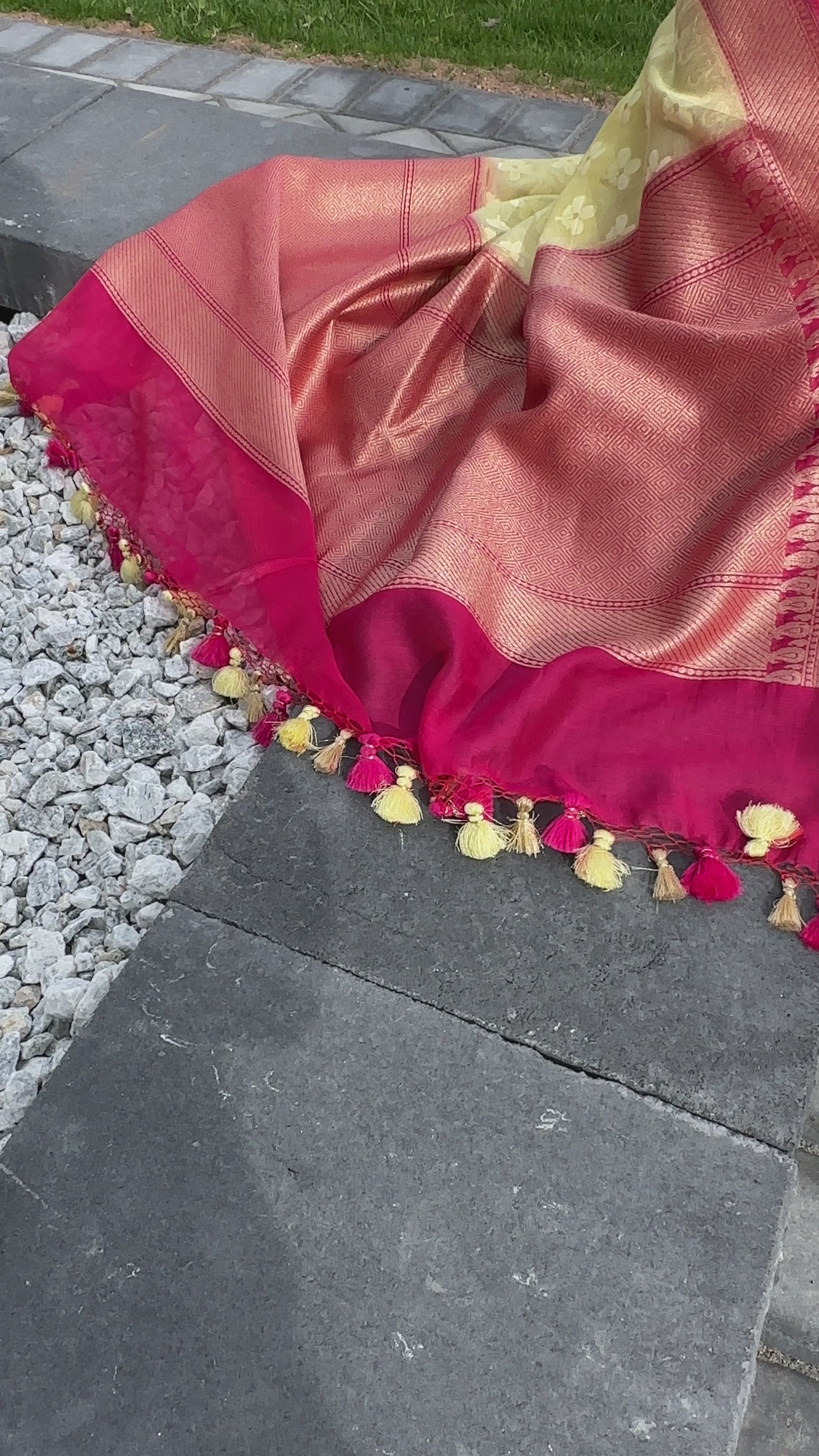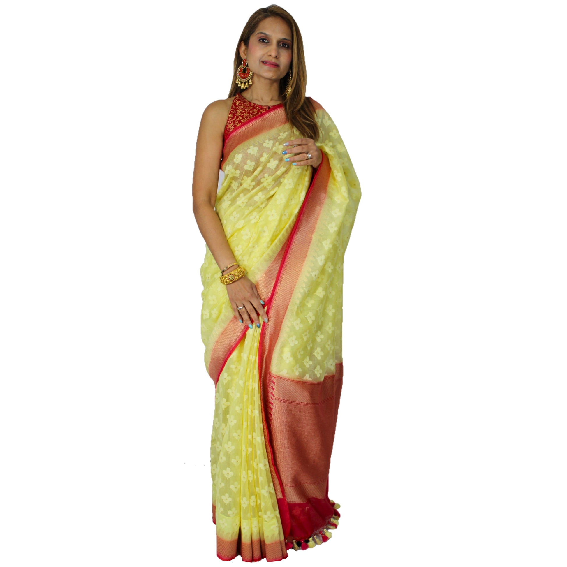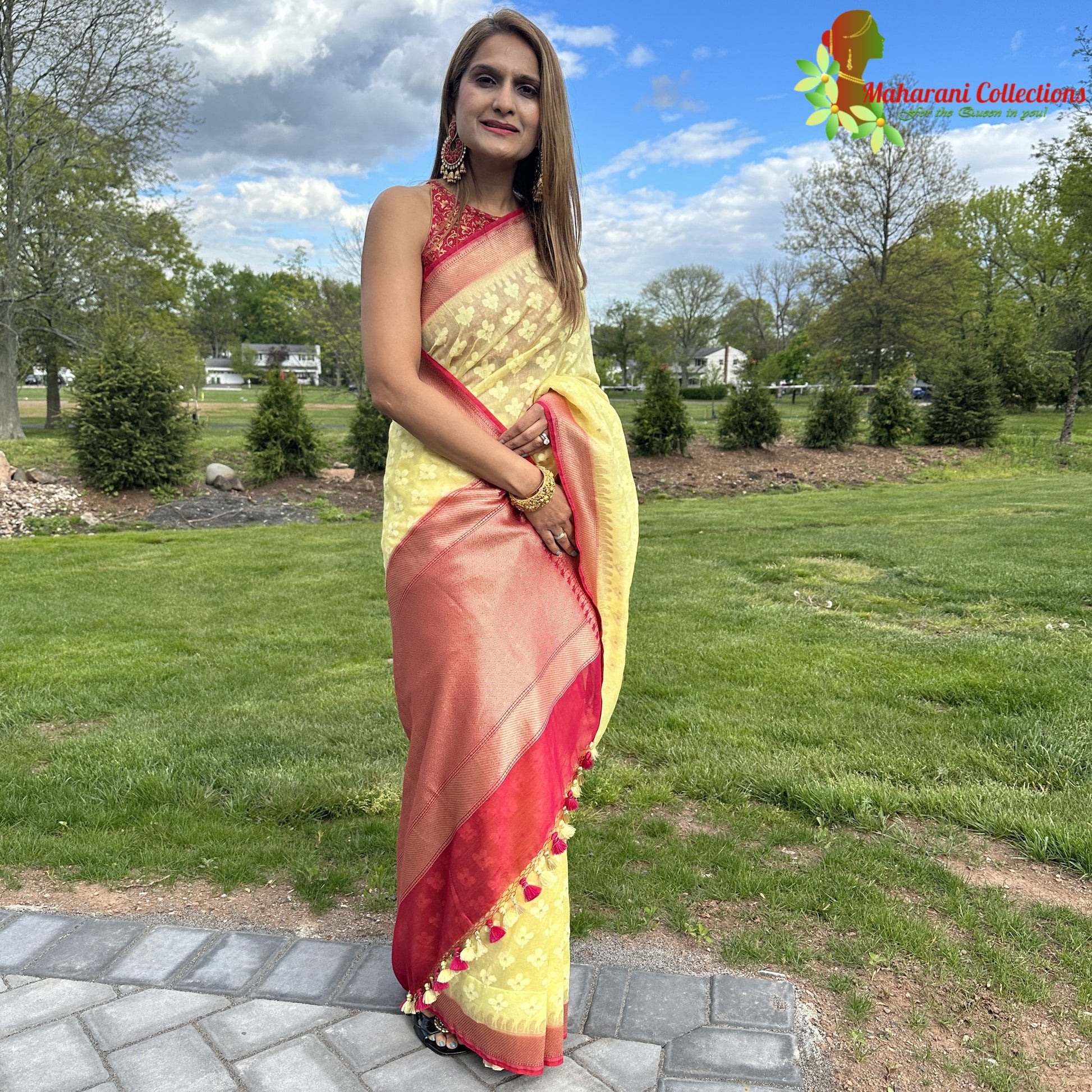 Maharani's Pure Tussar Silk Saree - Lemon Yellow with Golden Zari and Boota Work