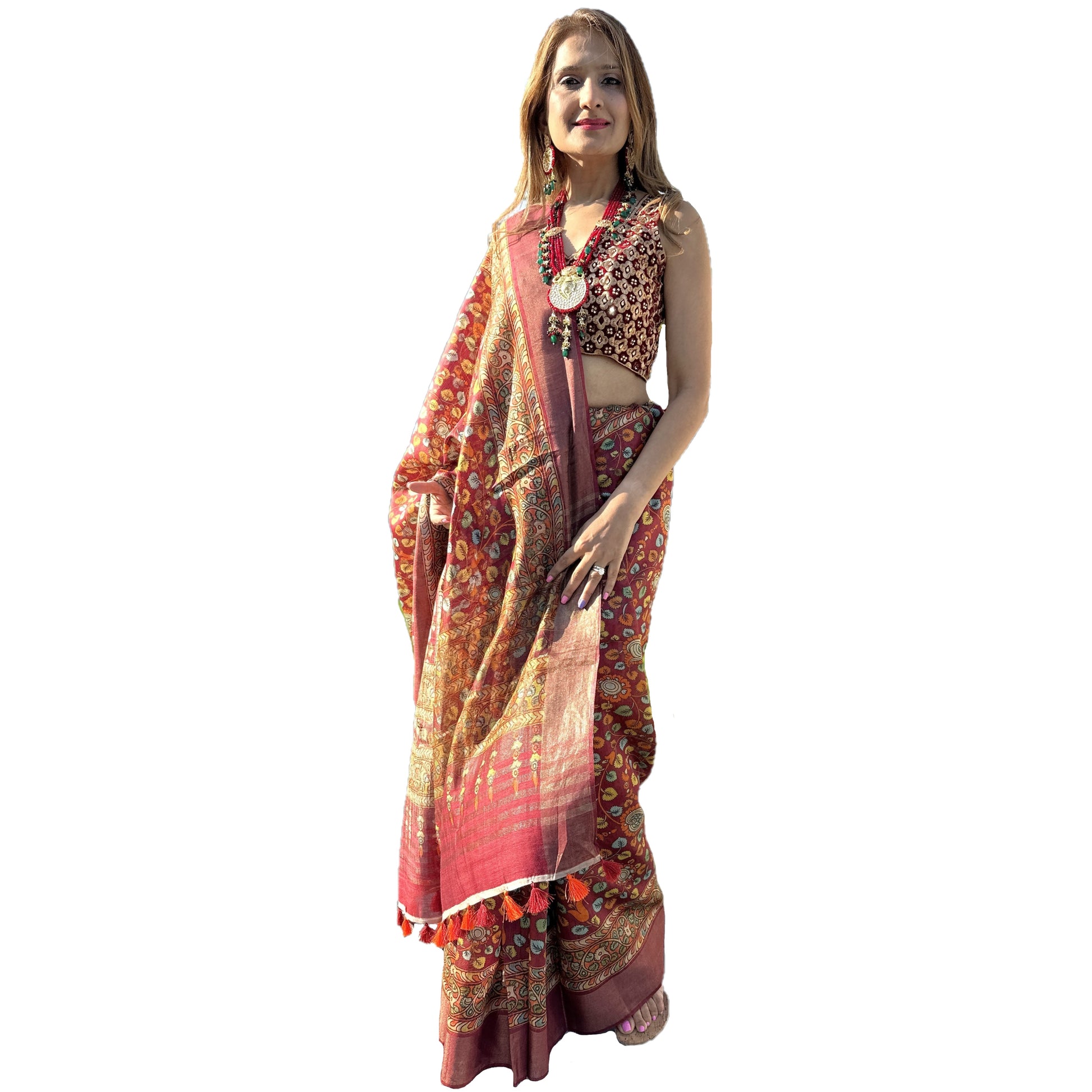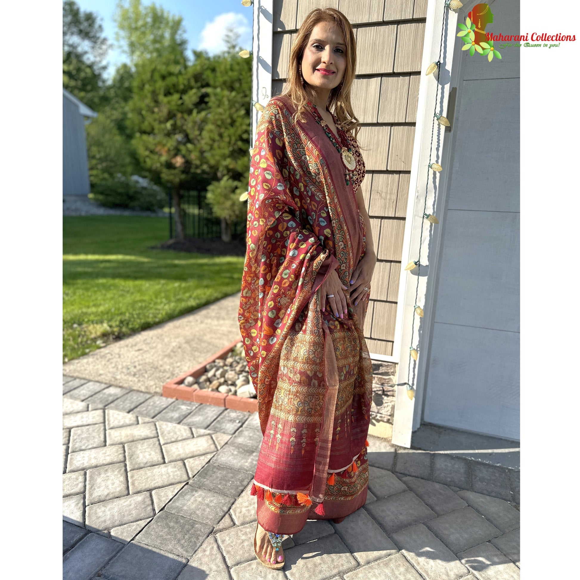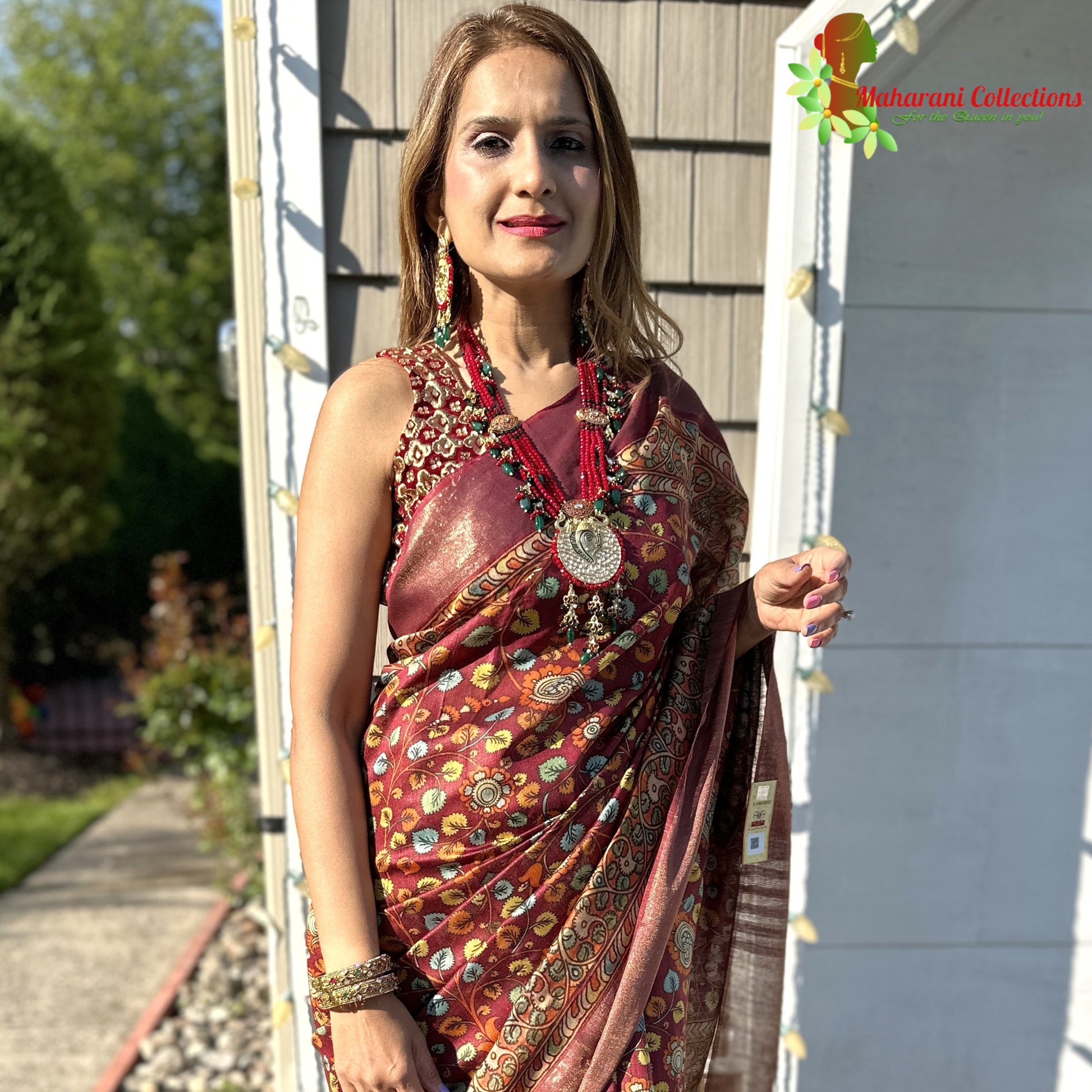 Maharani's Simple Elegance Matka Silk Saree - Maroon Floral (with stitched blouse and petticoat)