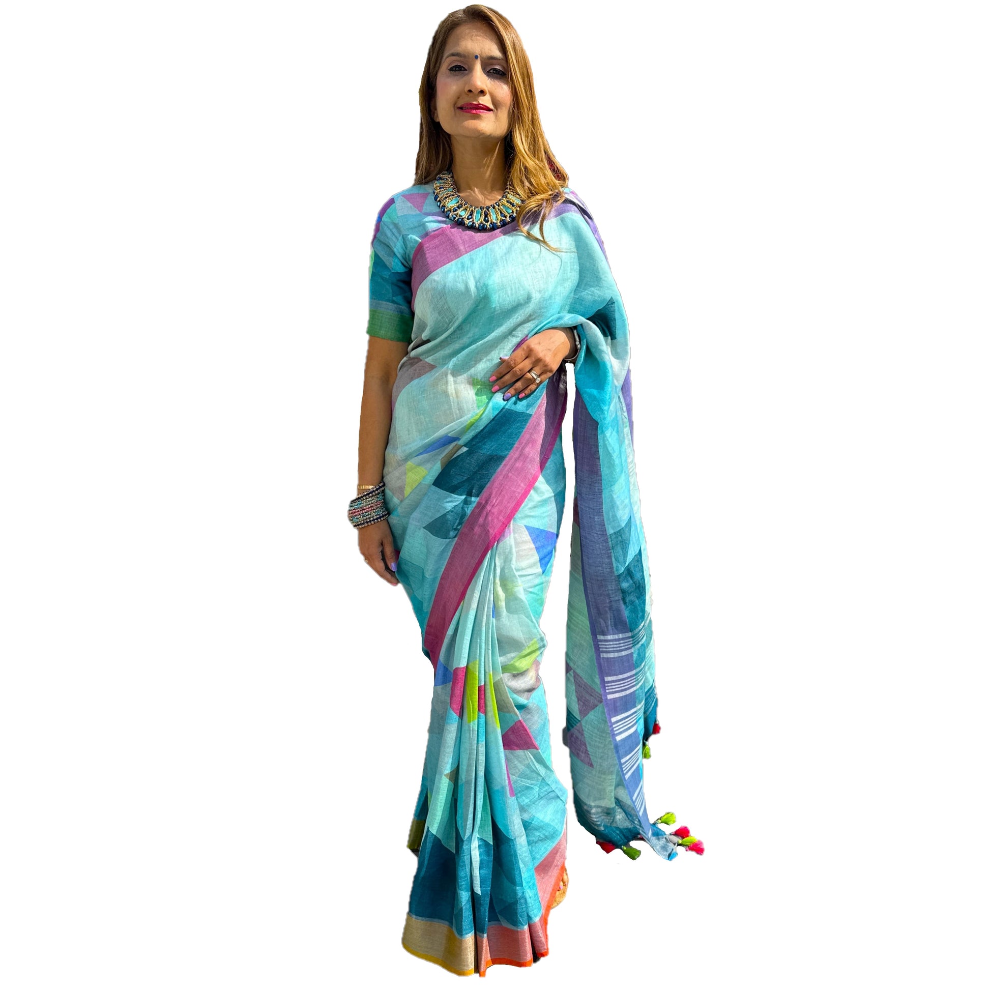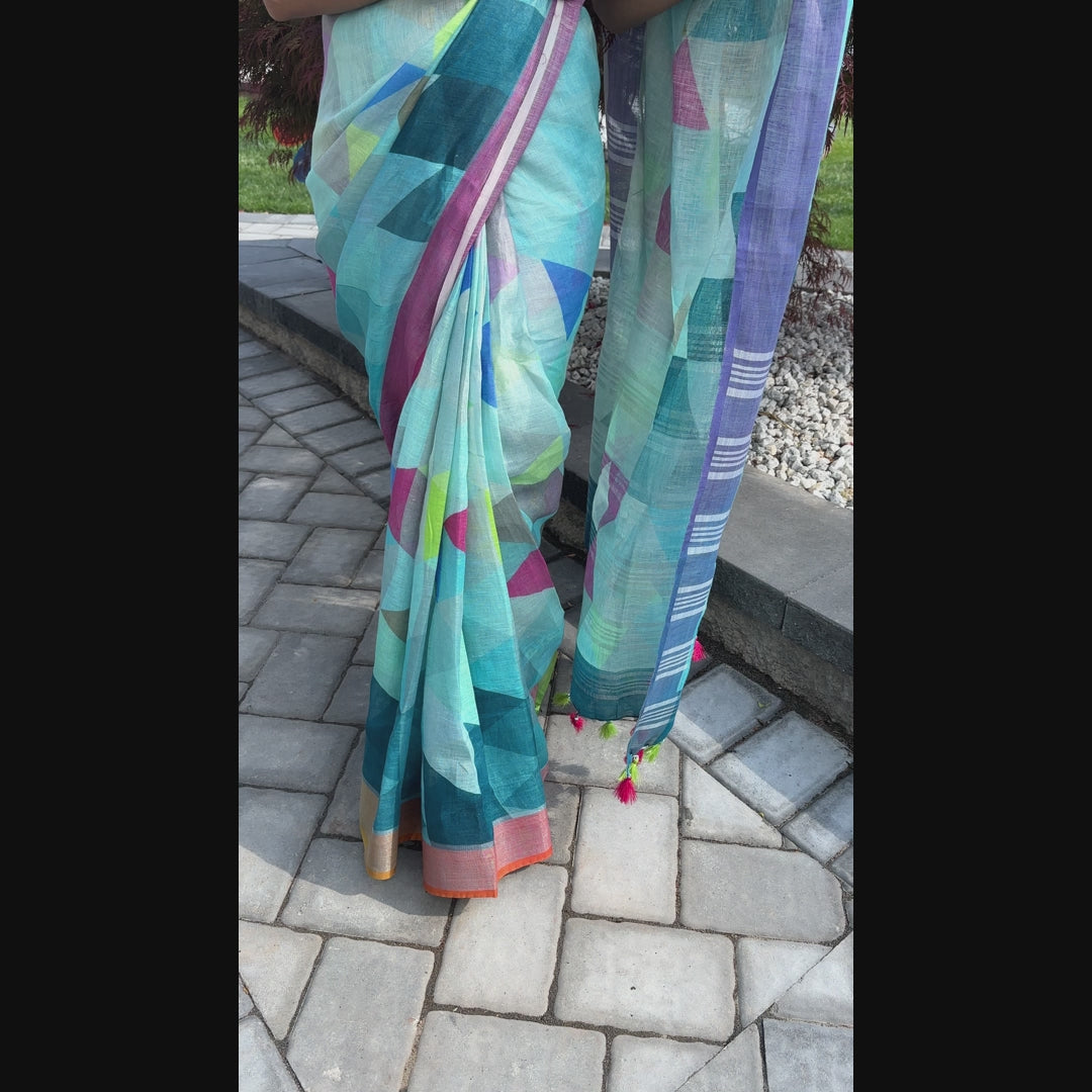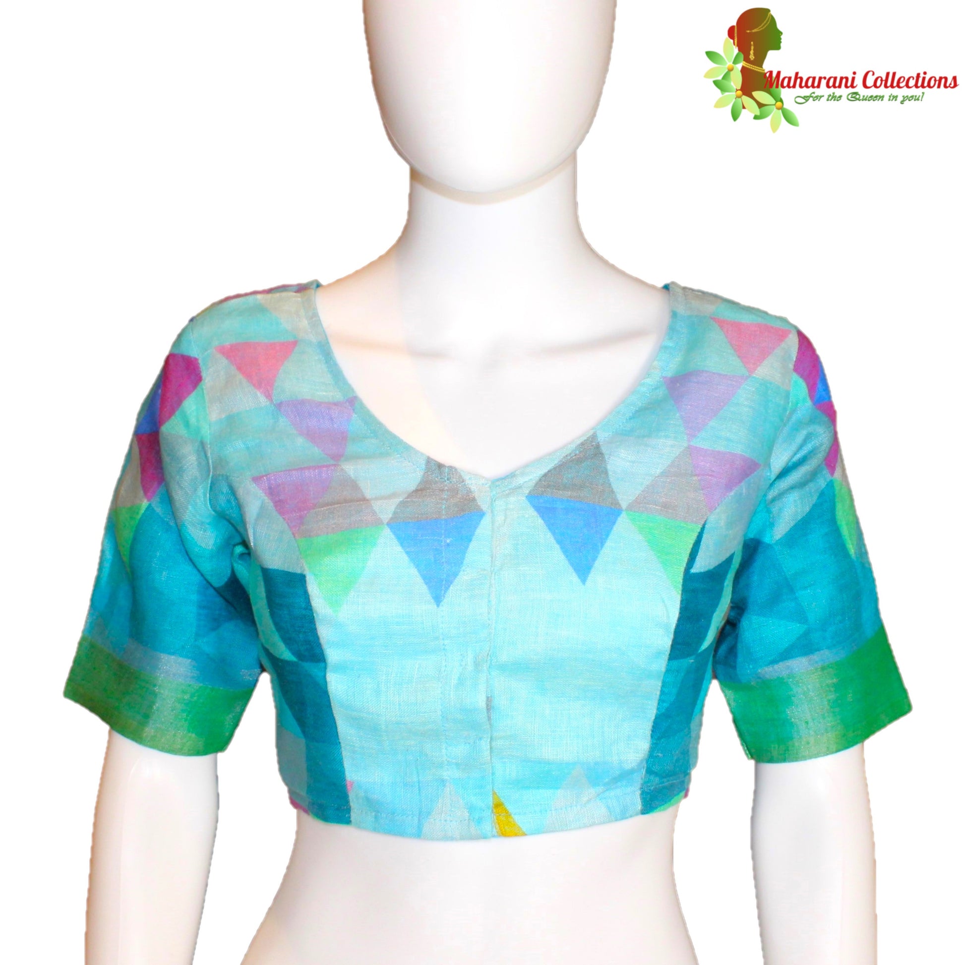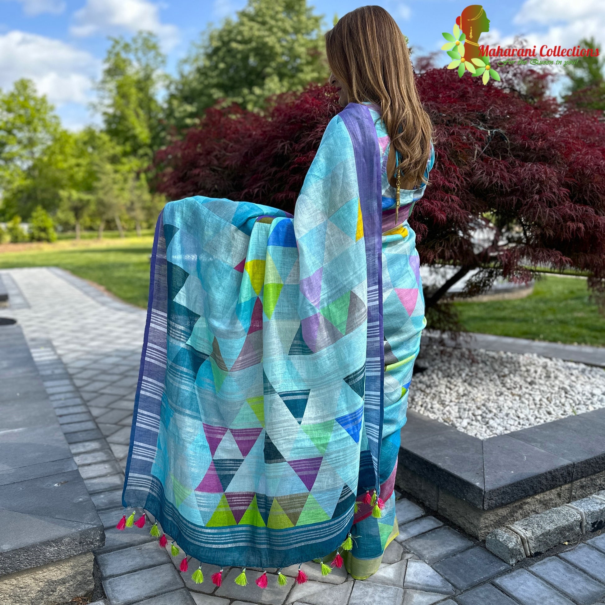 Maharani's Simple Elegance Matka Silk Saree - Blue/Green (with stitched blouse and petticoat)