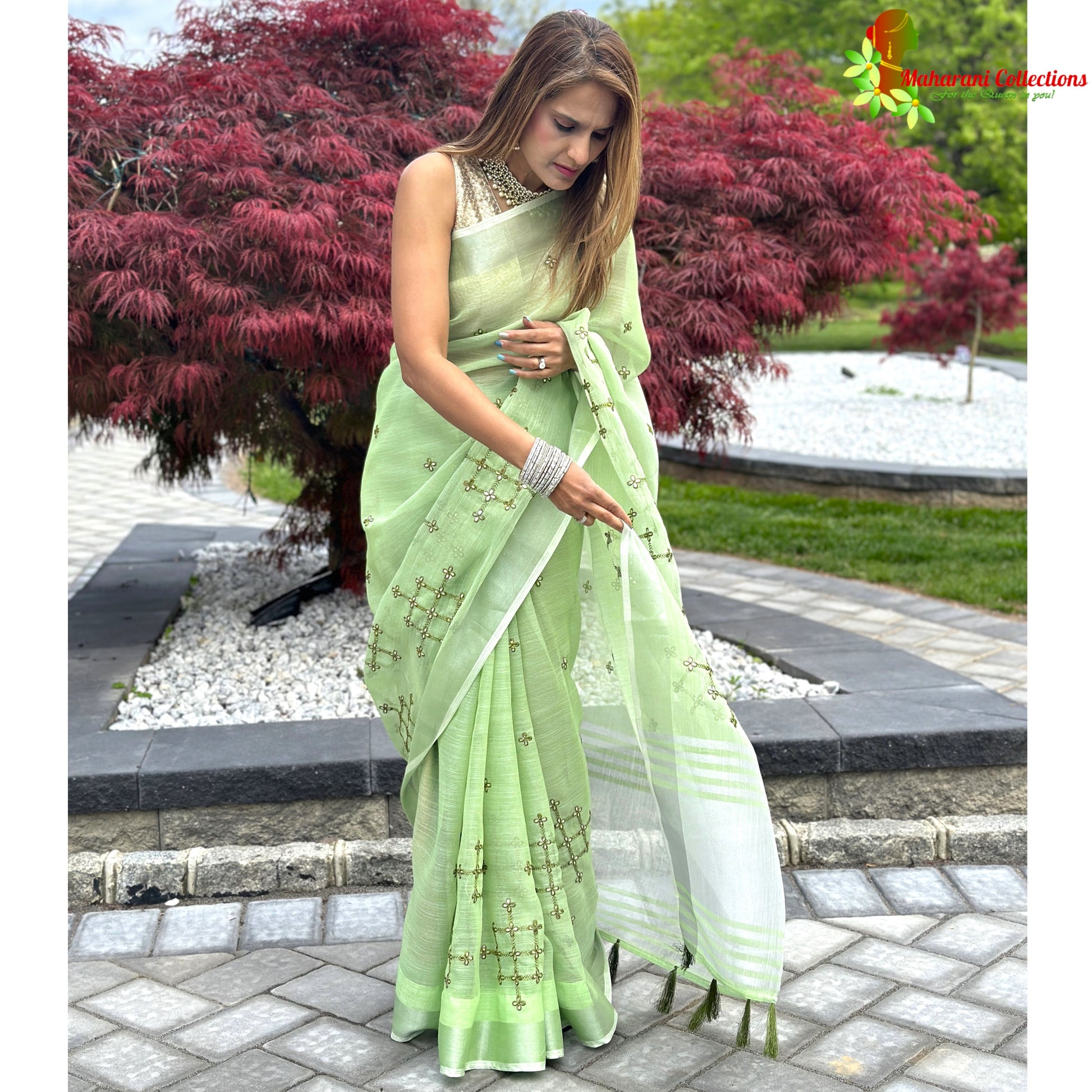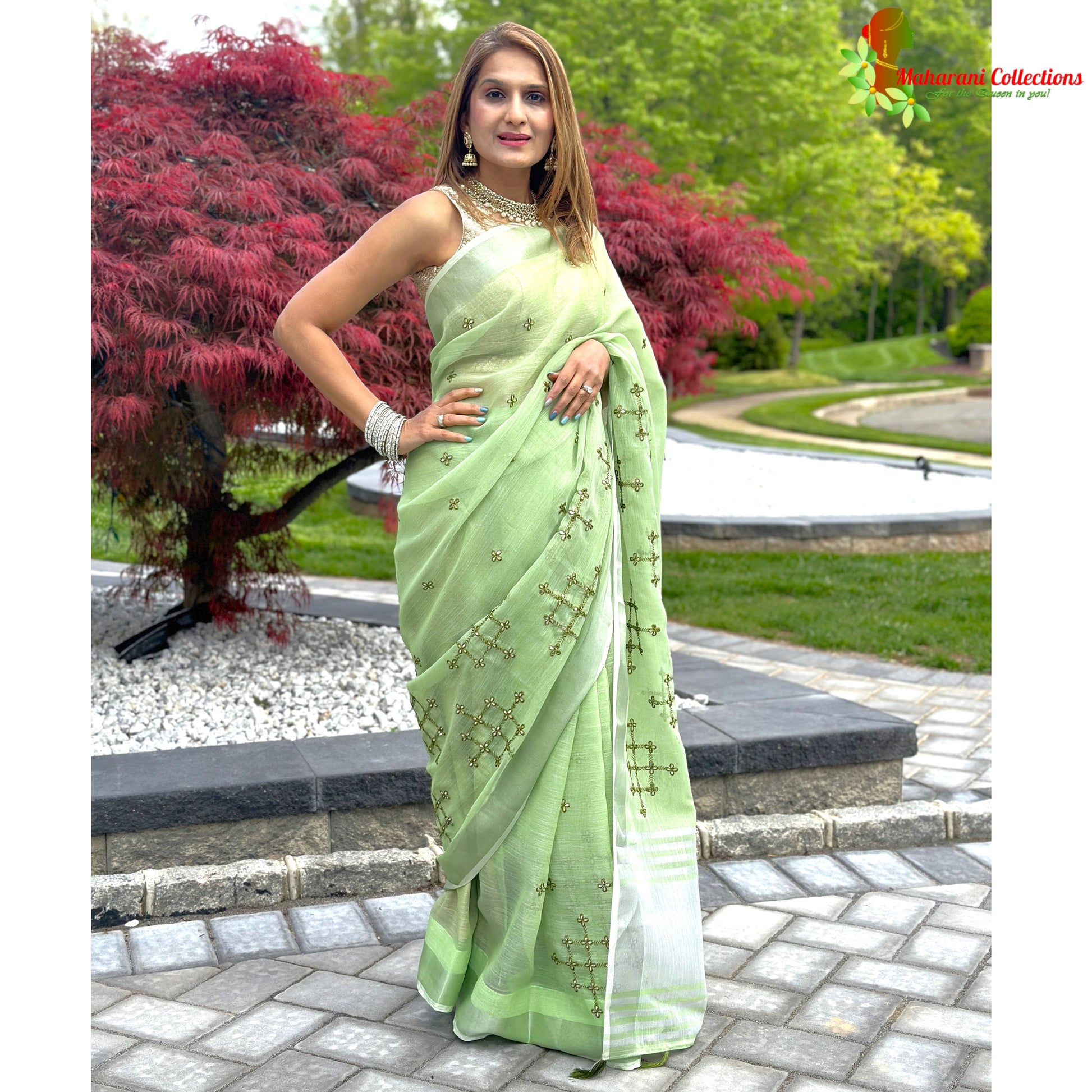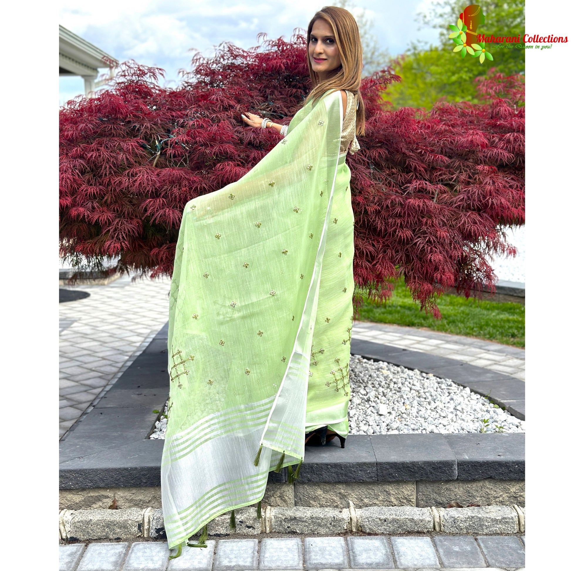 Make a timeless statement with the Maharani's Simple Elegance Matka Silk Saree. Crafted with handloom-woven pure linen and featuring Maharani's signature stitching, this beautiful saree will become a favorite in your wardrobe. Plus, it comes with a free ready-to-wear stitched blouse and a free ready-to-wear petticoat, making your look effortless yet luxurious!