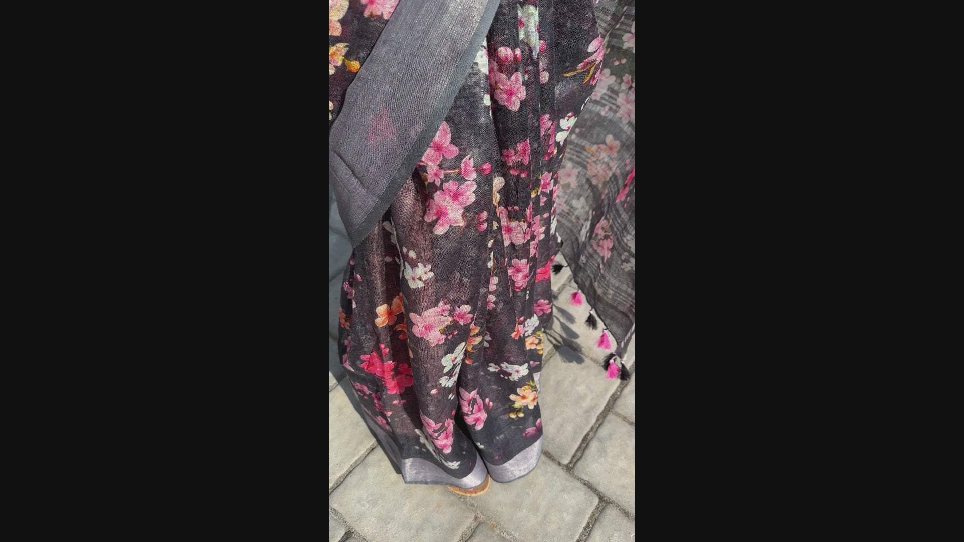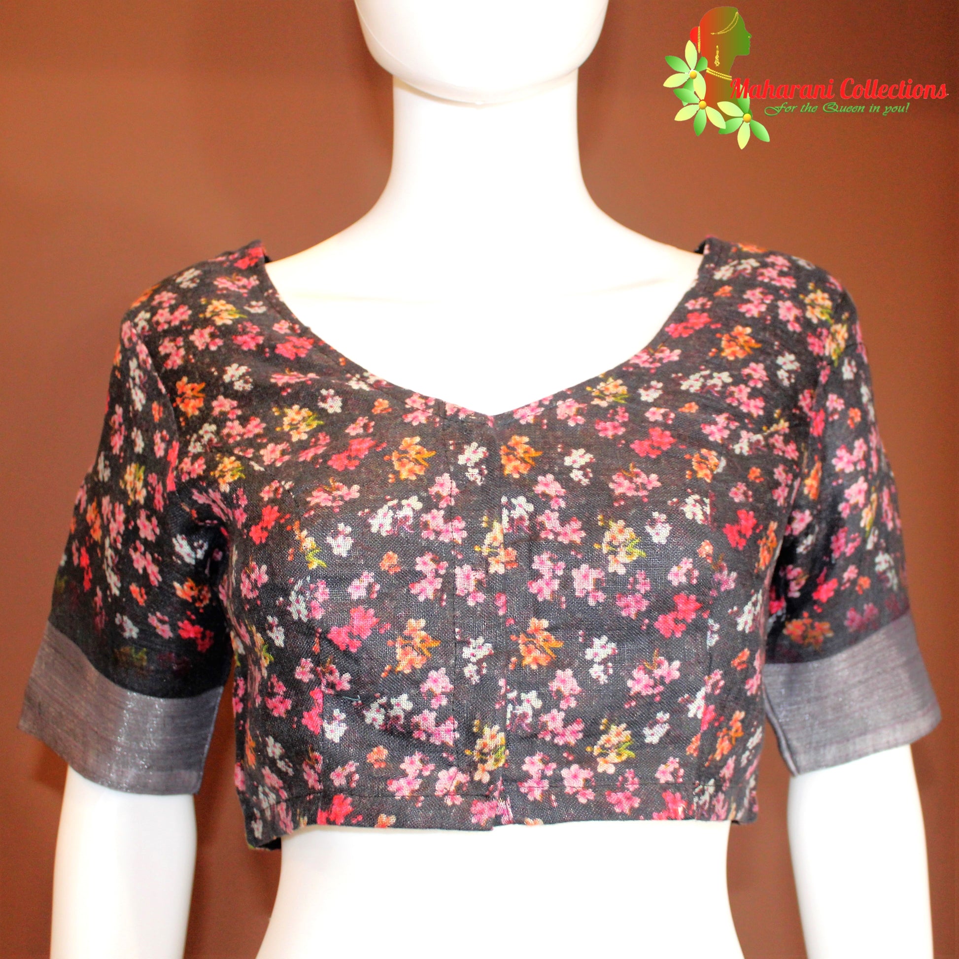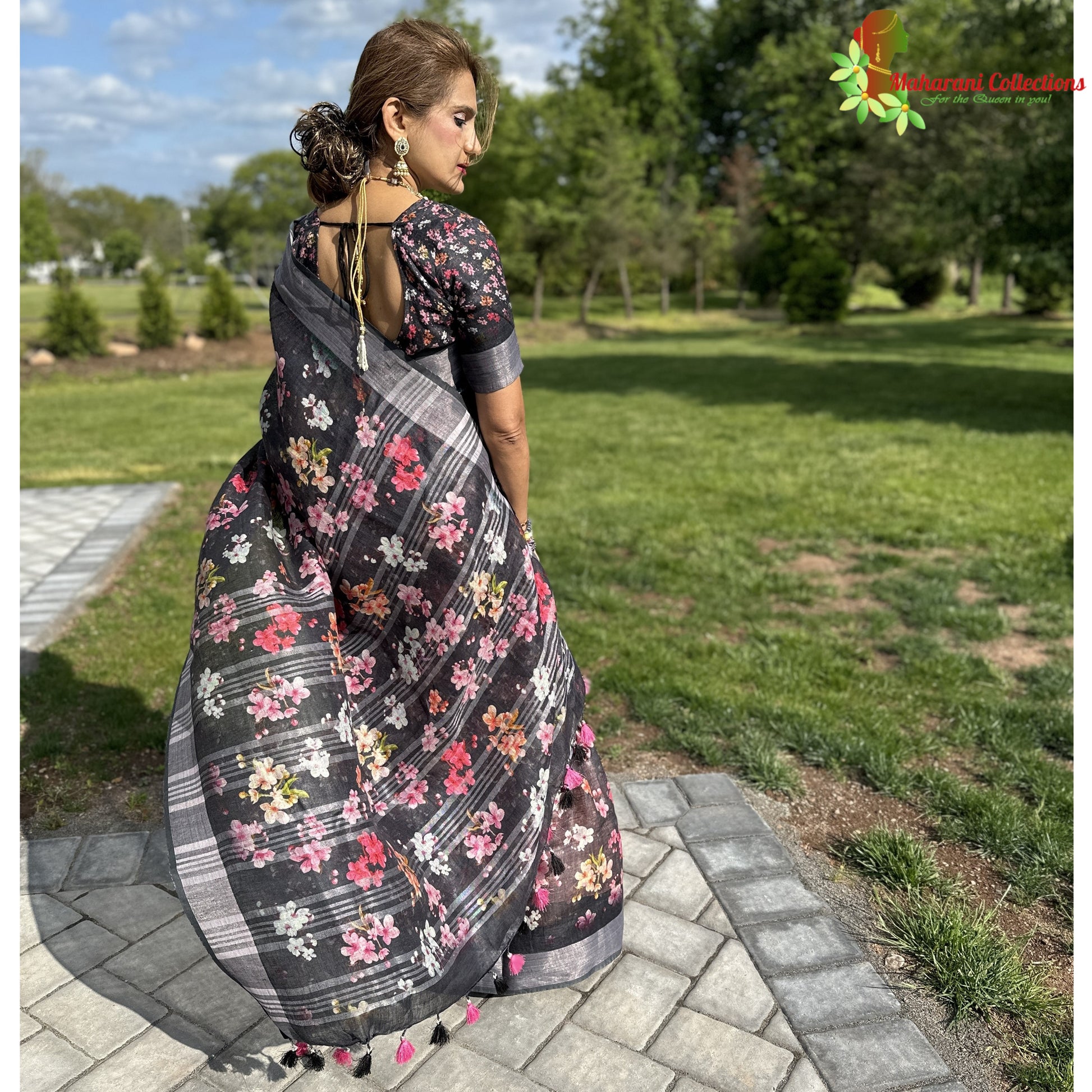 Maharani's Simple Elegance Matka Silk Saree - Floral Grey (with stitched blouse and petticoat)