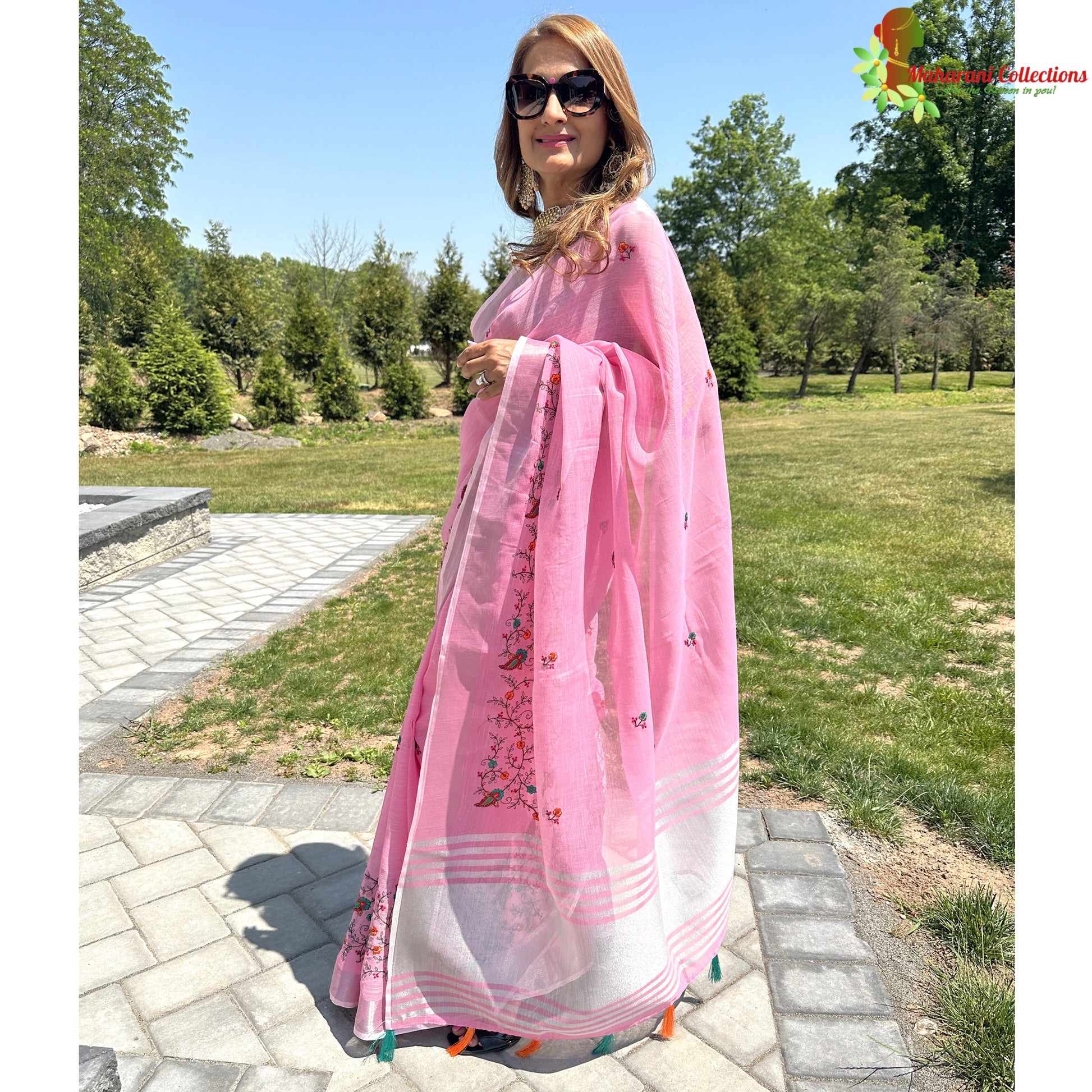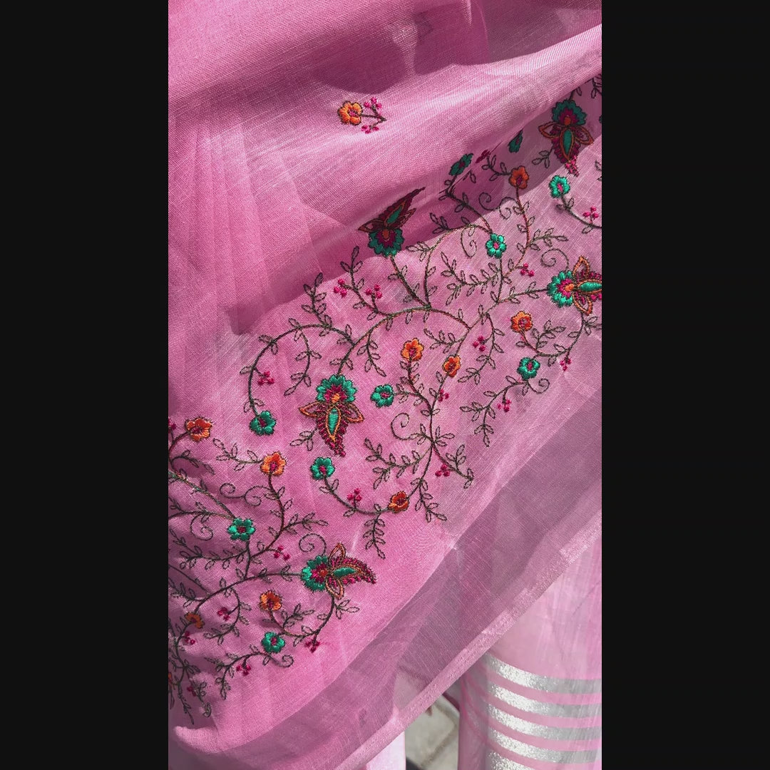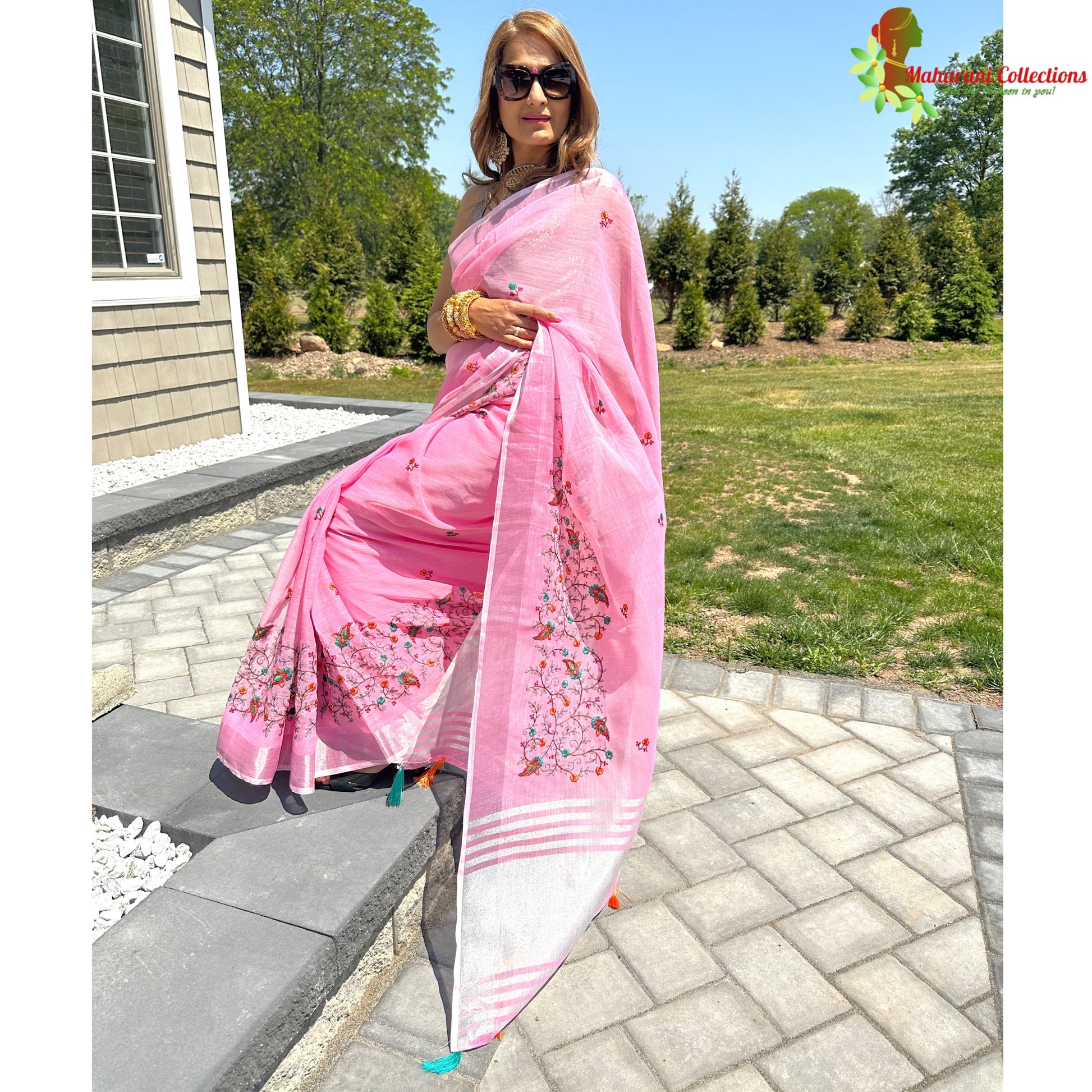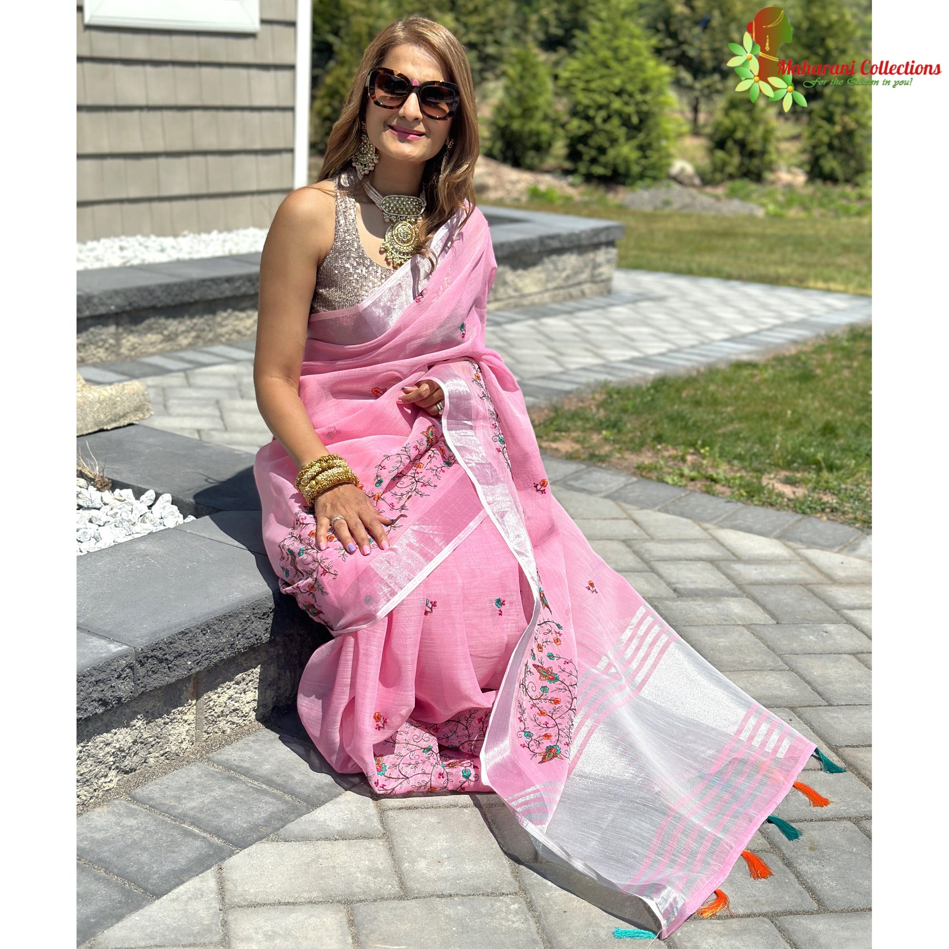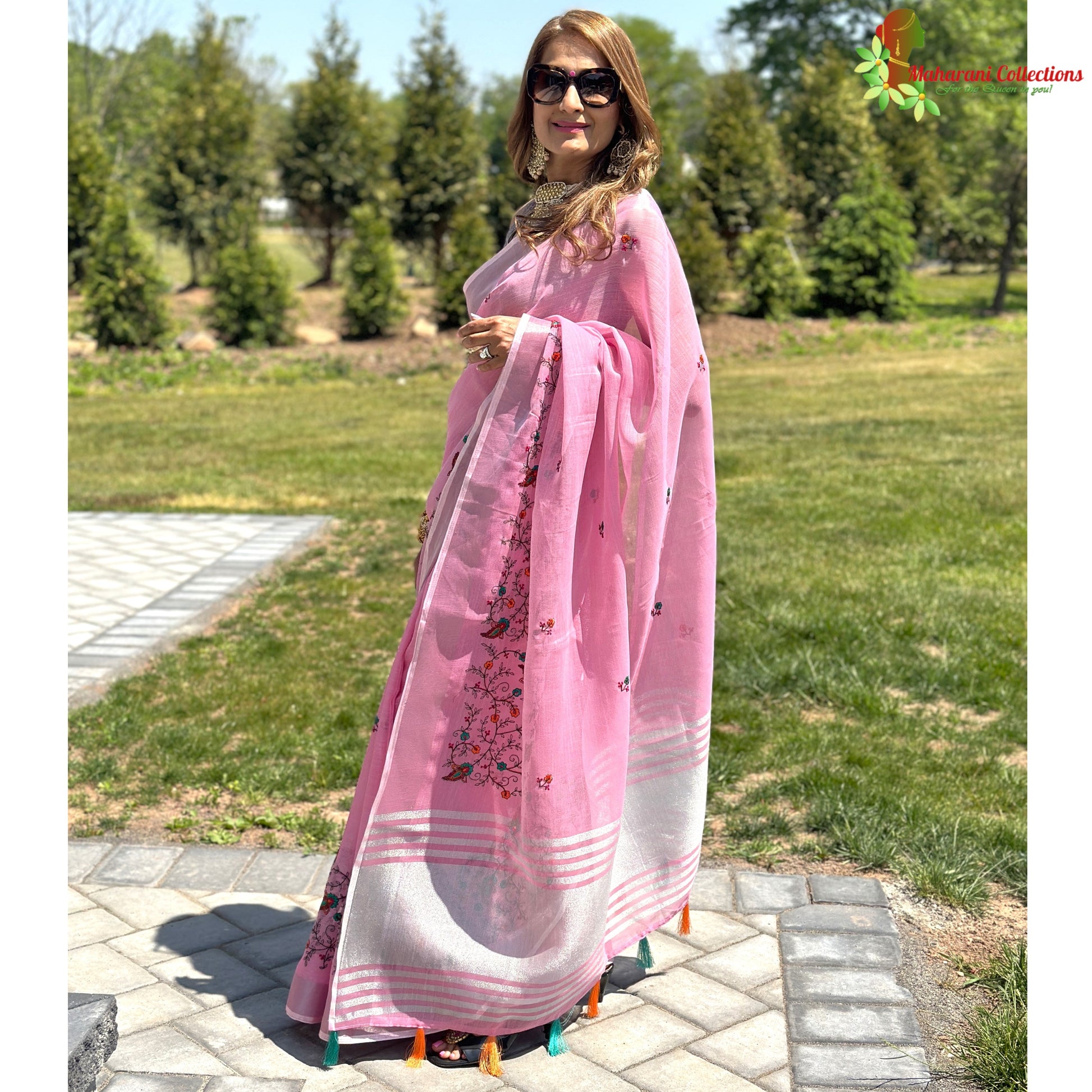 Experience the grandeur of a Maharani's Simple Elegance Matka Silk Saree! Woven with pure Mulberry Silk and stitched with original and authentic material, these luxurious sarees will make you dazzle! Featuring a beautiful, pink floral shades and open weave, these lightweight sarees exude elegance and shine and are perfect for any occasion. Look & feel like a queen with Maharani's Simple Elegance Matka Silk!